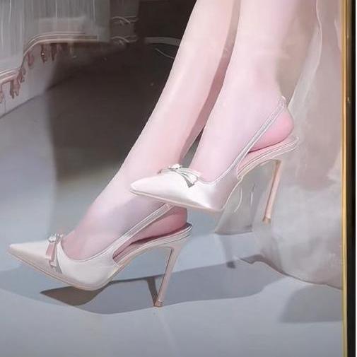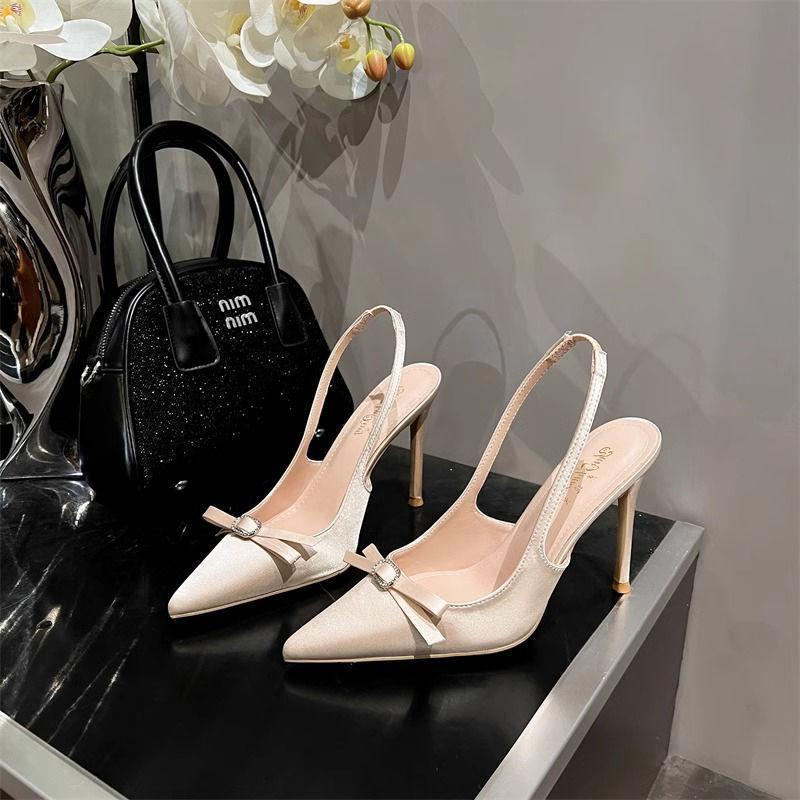 Zapatos de Mujer 2024 Color Sólido Elegantes Tacones Altos Sandalias de Aguja Punta Afilada para Mujer Amazon Baotou Transfronterizo Espalda Hueca Nuevo Estilo