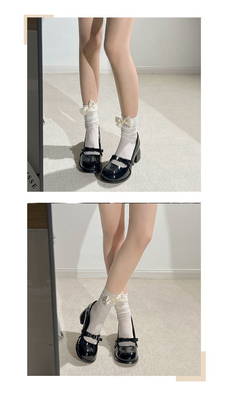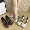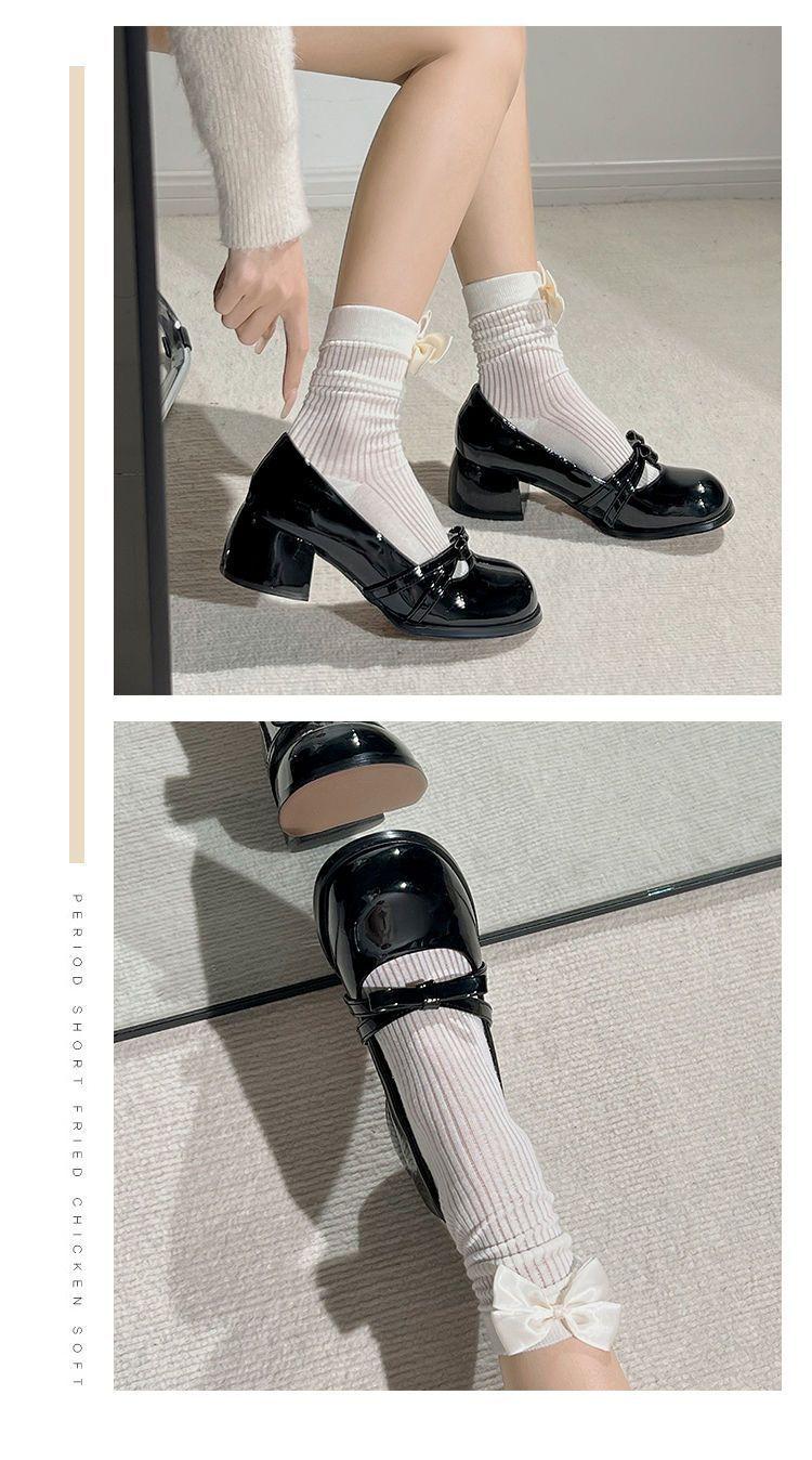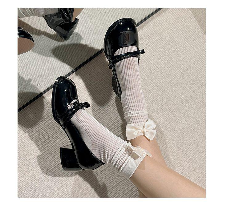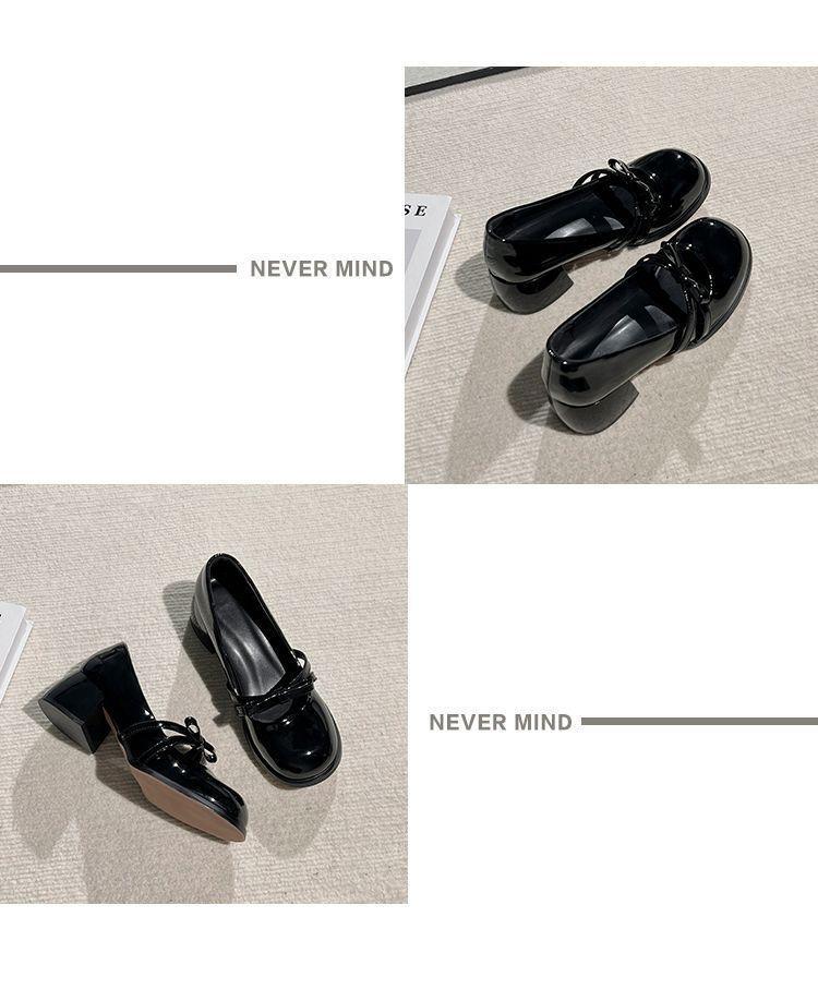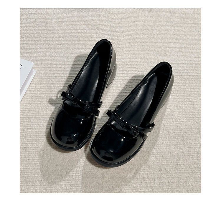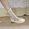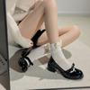 Zapatos Mary Jane para Mujer Primavera y Verano 2025 Nuevos Estilo Hada Correa con Hebilla de Una Línea Boca Baja Lazo Tacón Grueso Zapatos para Mujer