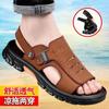 Sandalias de Cuero para Hombre 2023 Nuevo Verano Ropa Exterior Antideslizante para Hombre Conducción Doble Uso Sandalias y Pantuflas de Playa