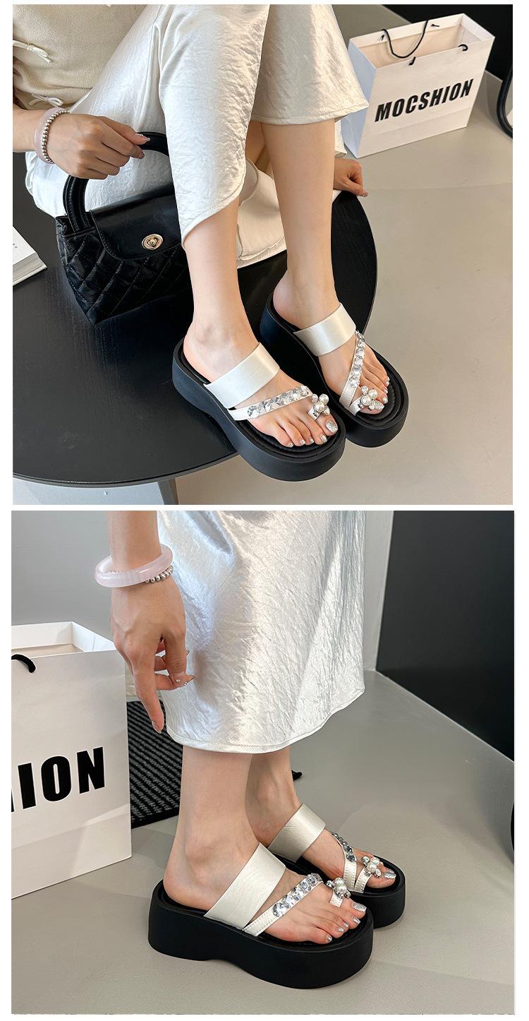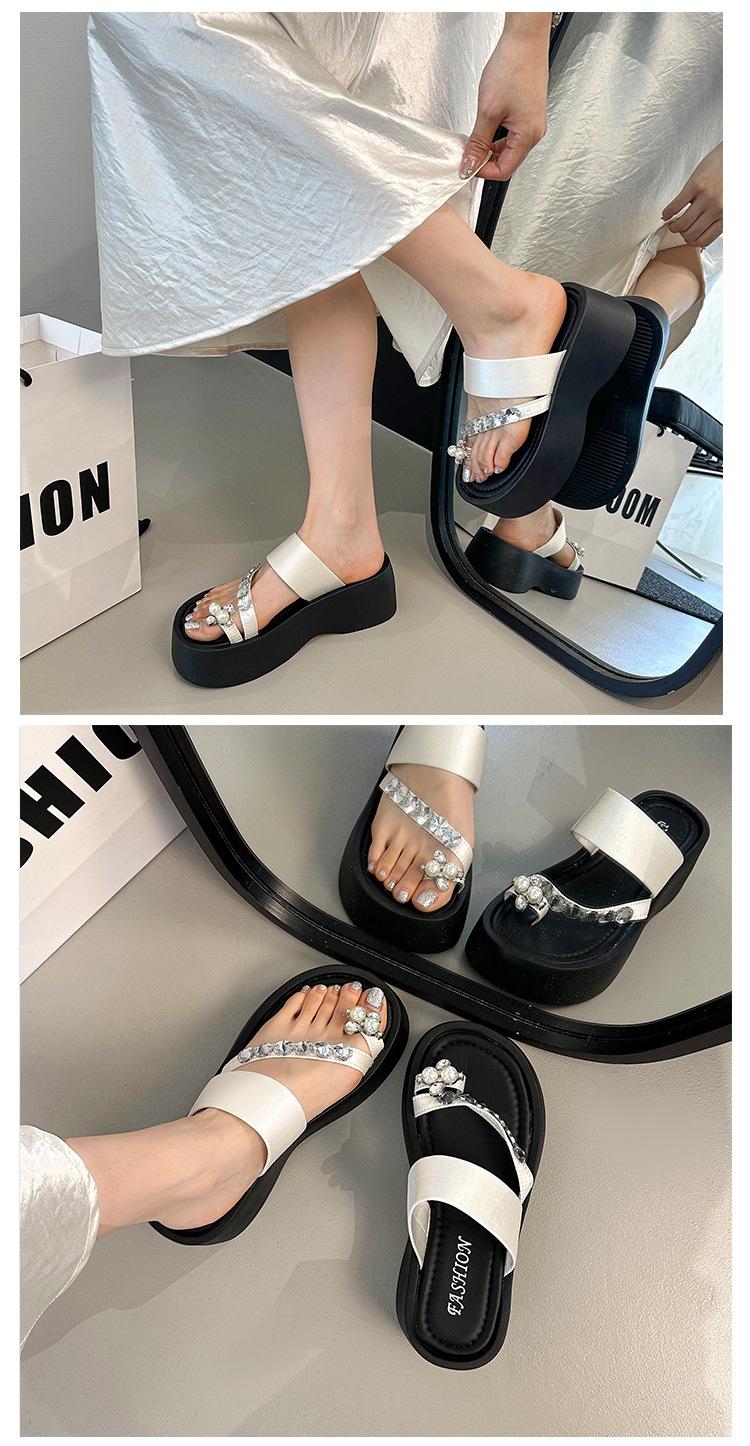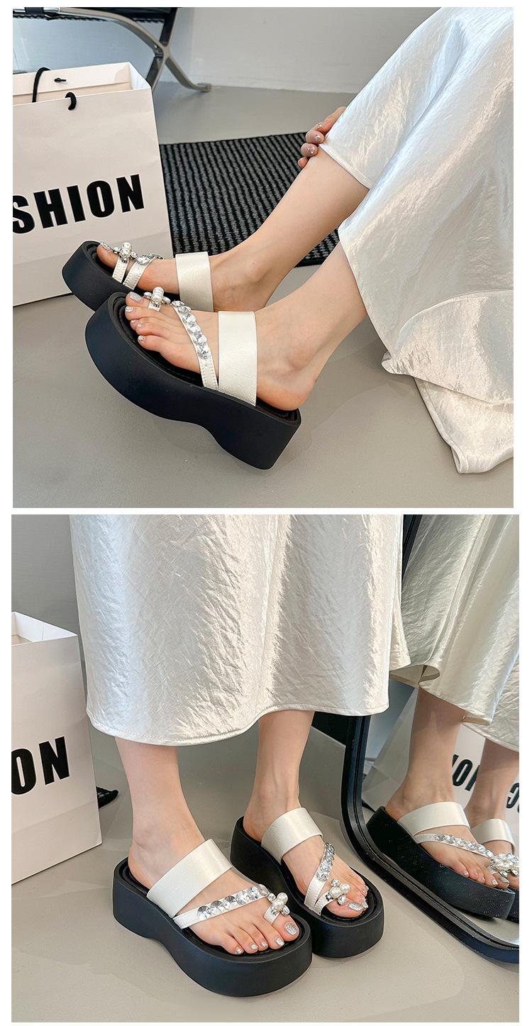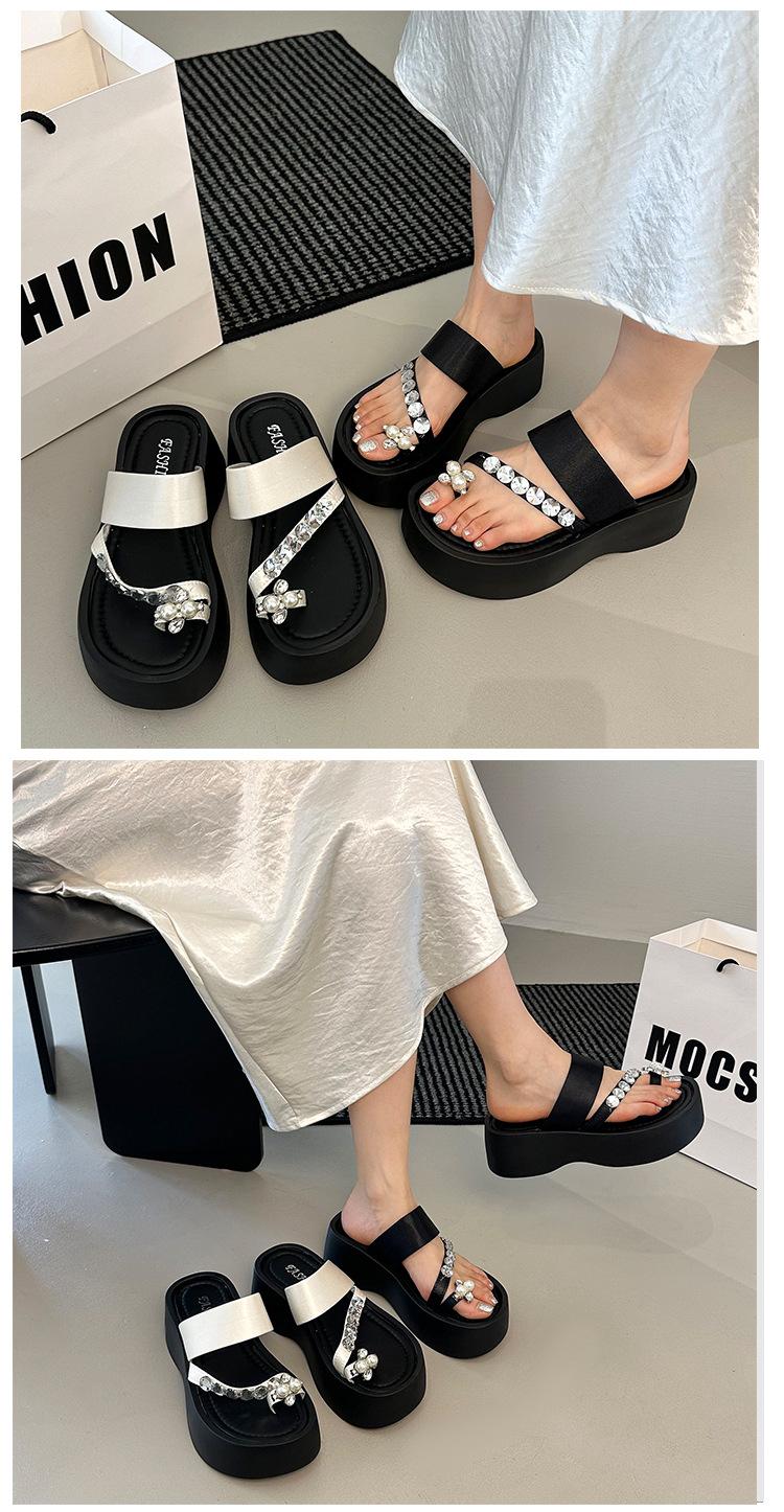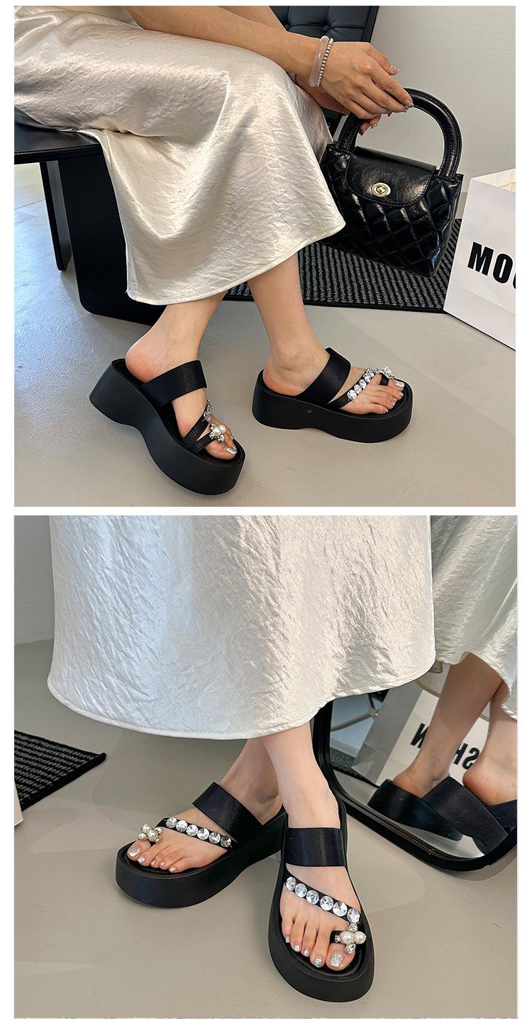 Pantuflas de Playa Estilo Hada con Pedrería para Mujer para Usar Afuera 2025 Verano Nuevo Chanclas de Suela Gruesa y Sandalias Hermosas