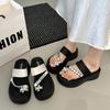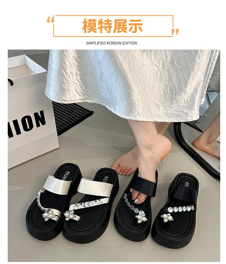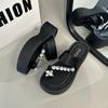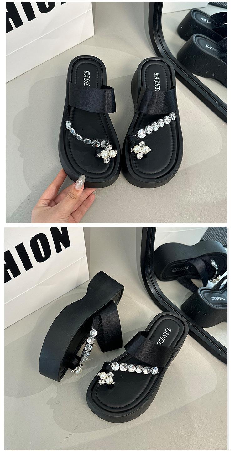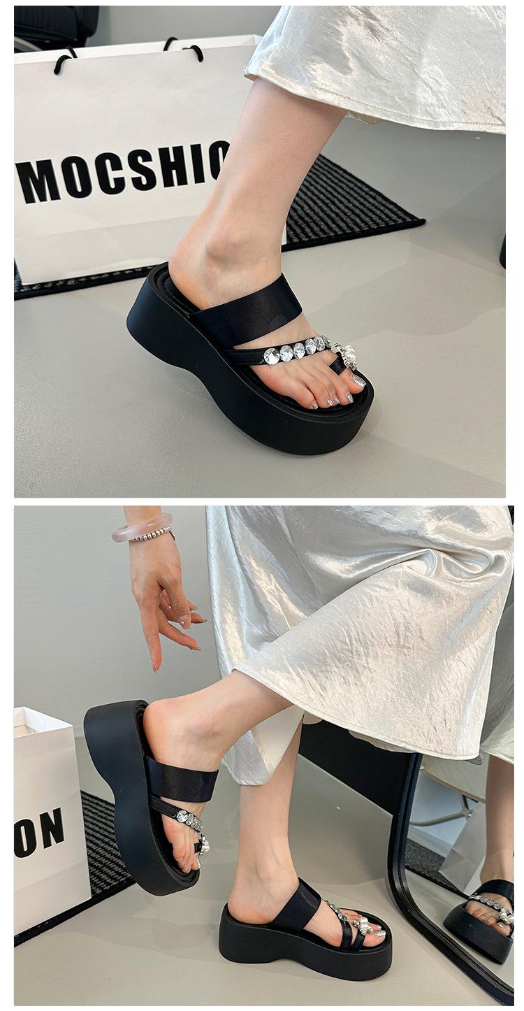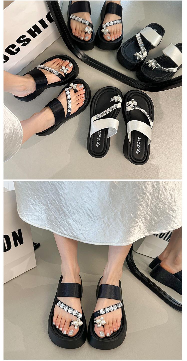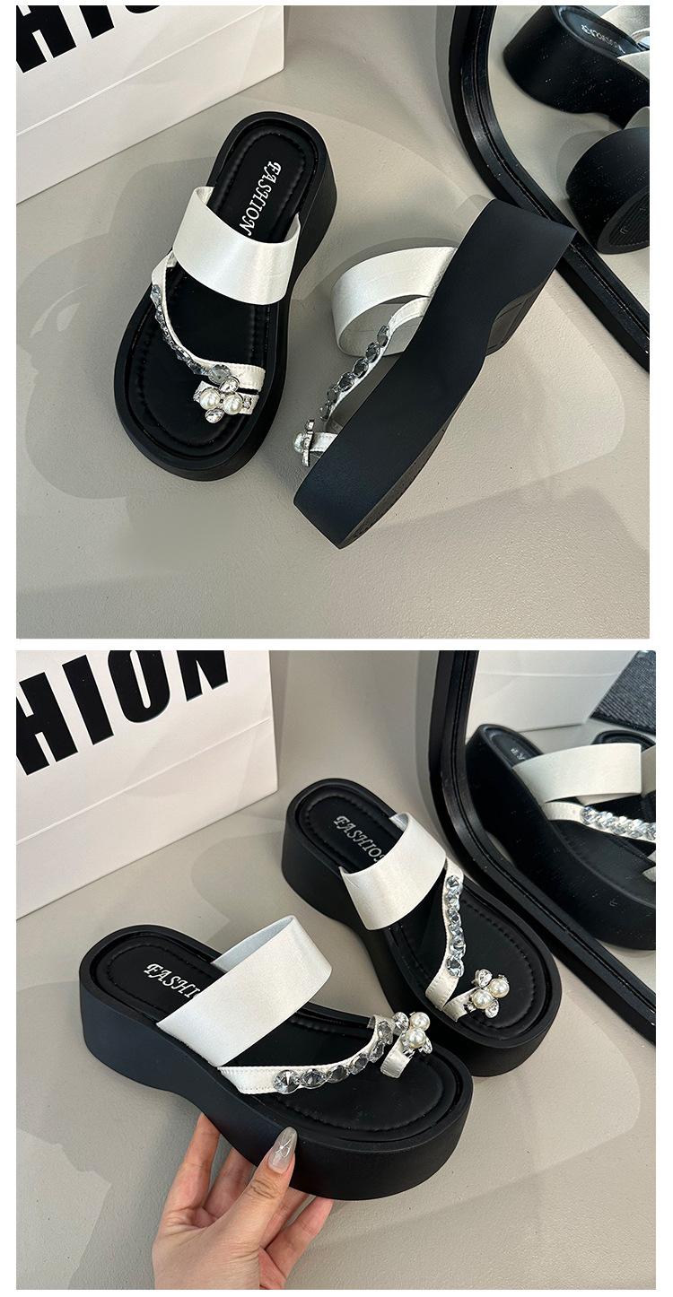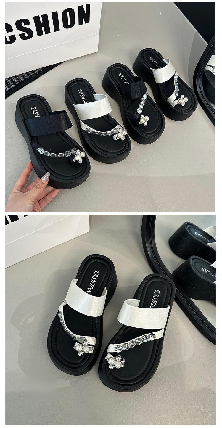 Pantuflas de Playa Estilo Hada con Pedrería para Mujer para Usar Afuera 2025 Verano Nuevo Chanclas de Suela Gruesa y Sandalias Hermosas