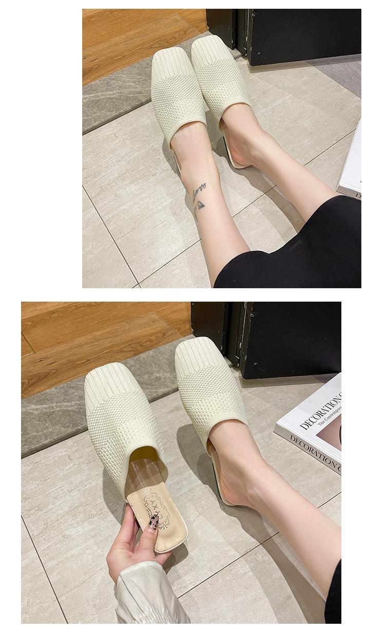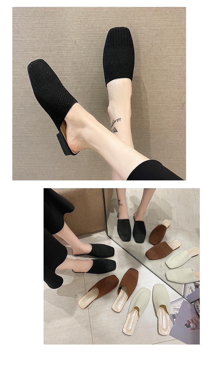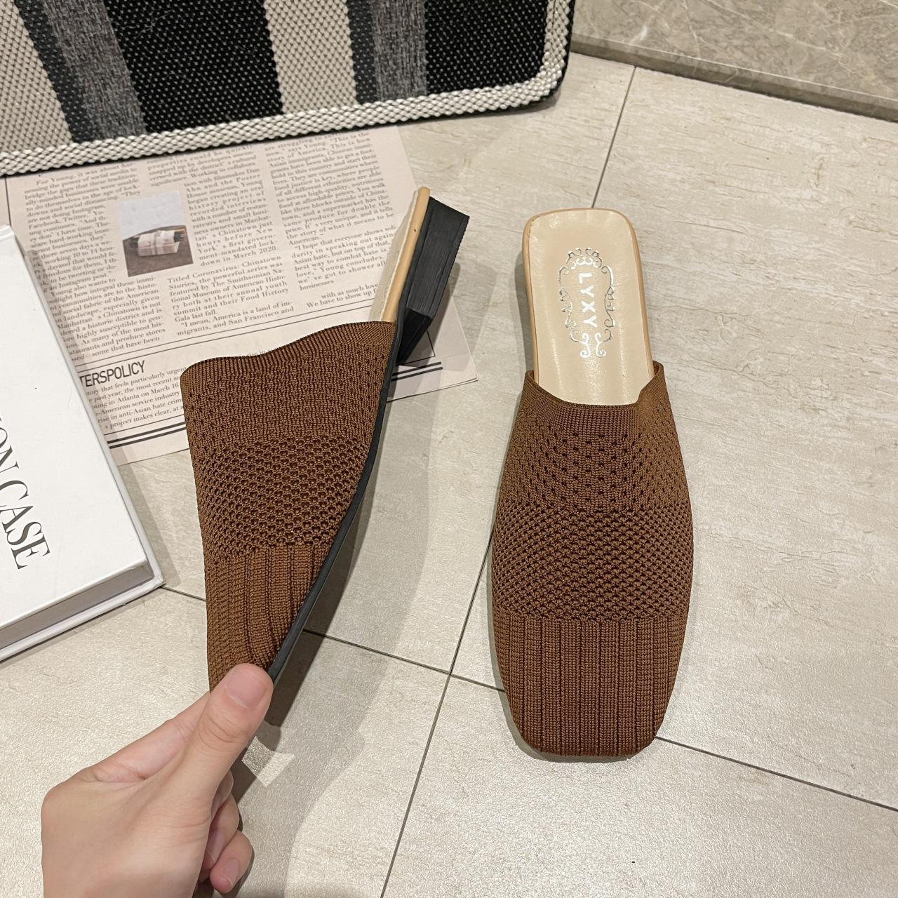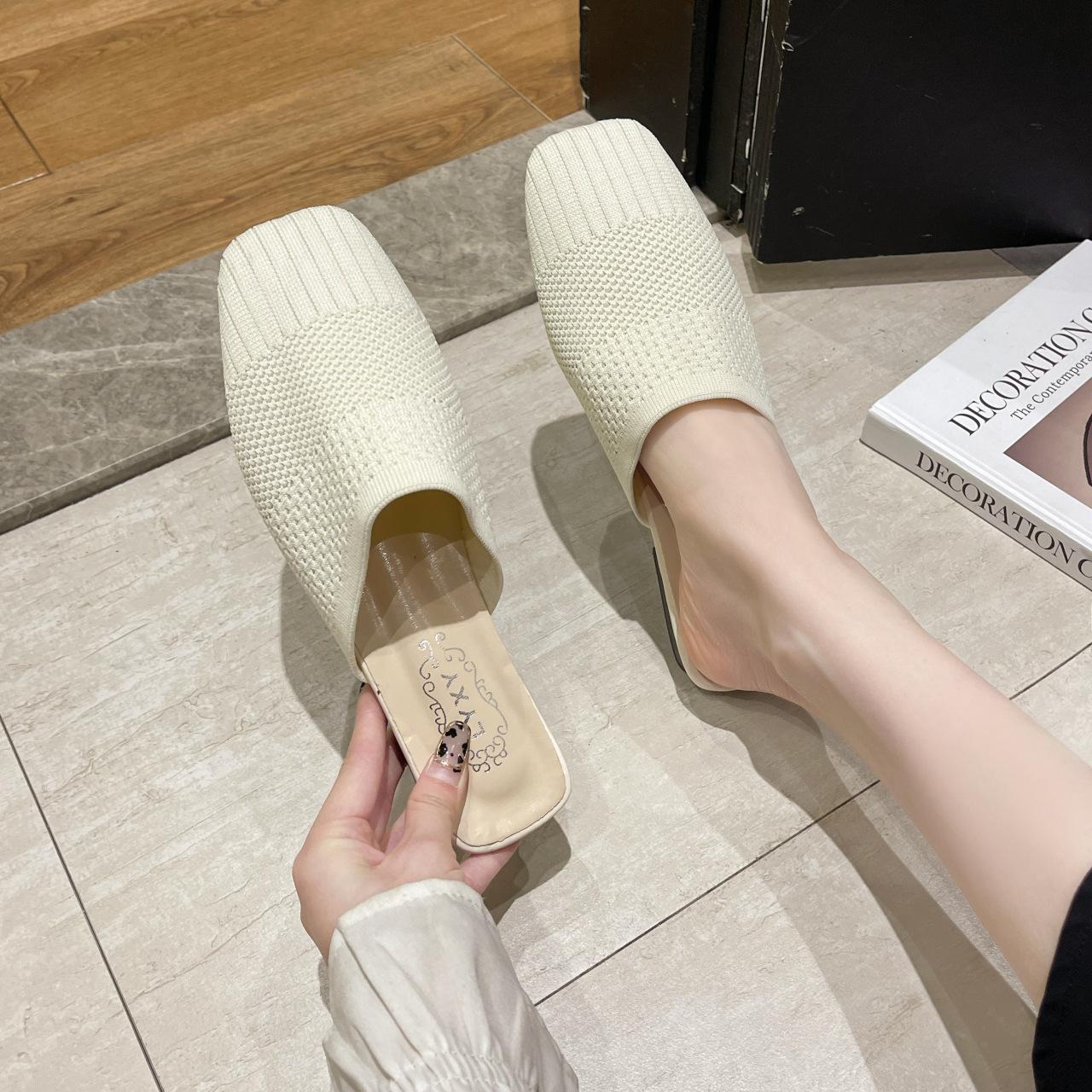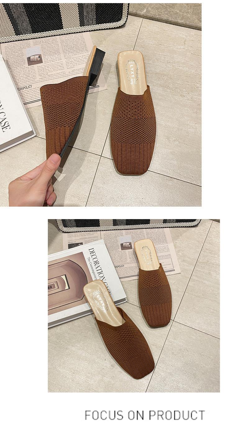 Sandalias Tejidas de Punta Cuadrada para Verano 2024 para Combinar con Todo Zapatos de Mujer Moda de Verano Tacón Bajo Estilo Coreano Pantuflas de Mujer Pantuflas Baotou de Mujer