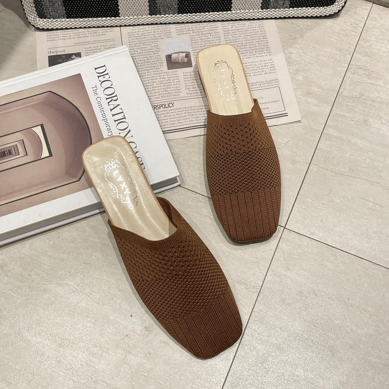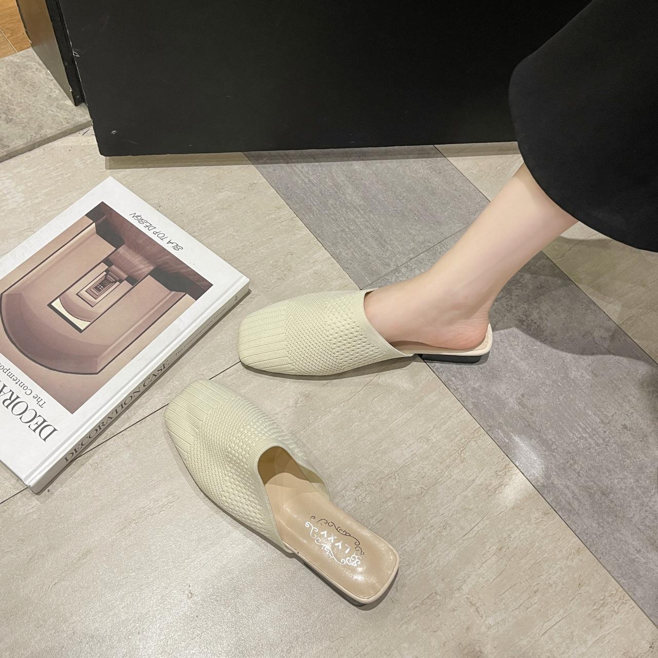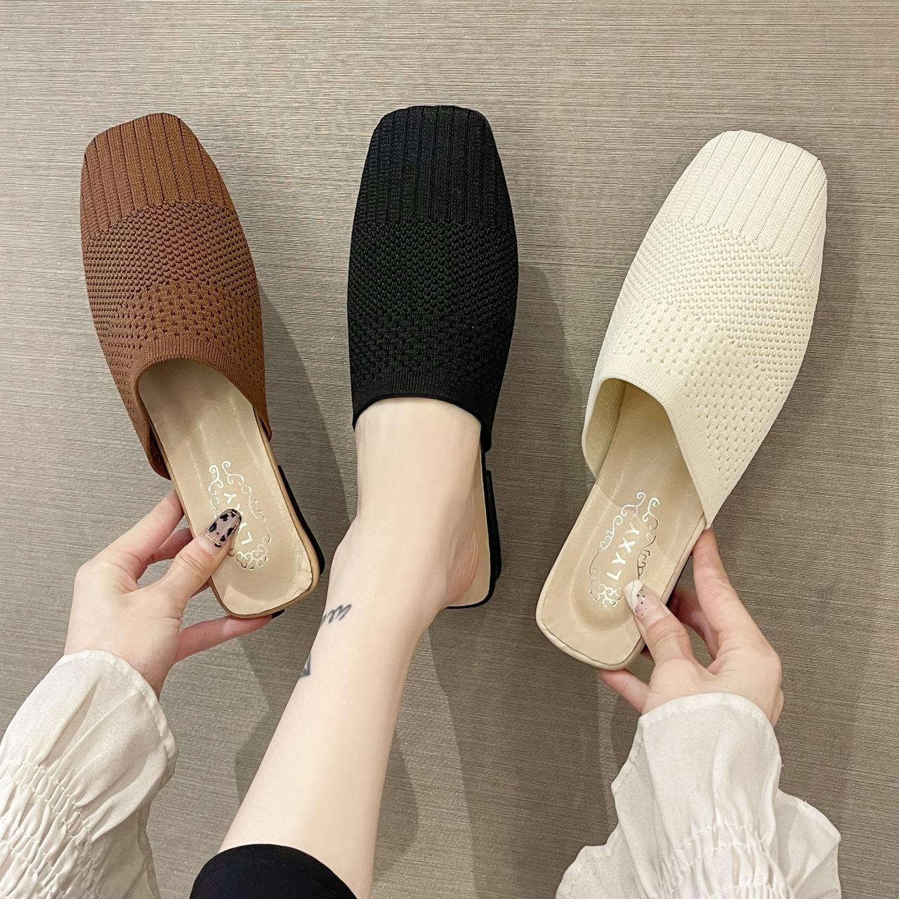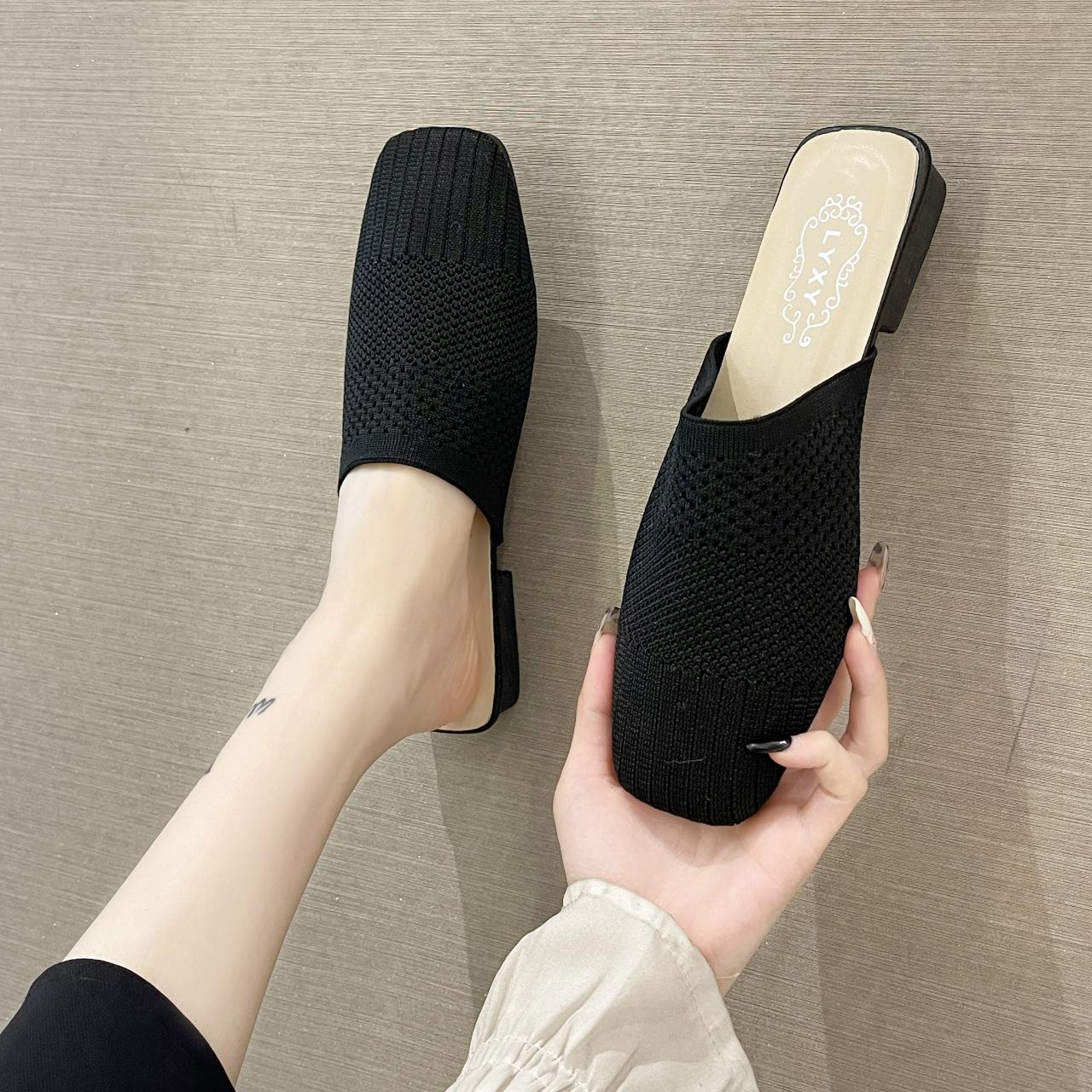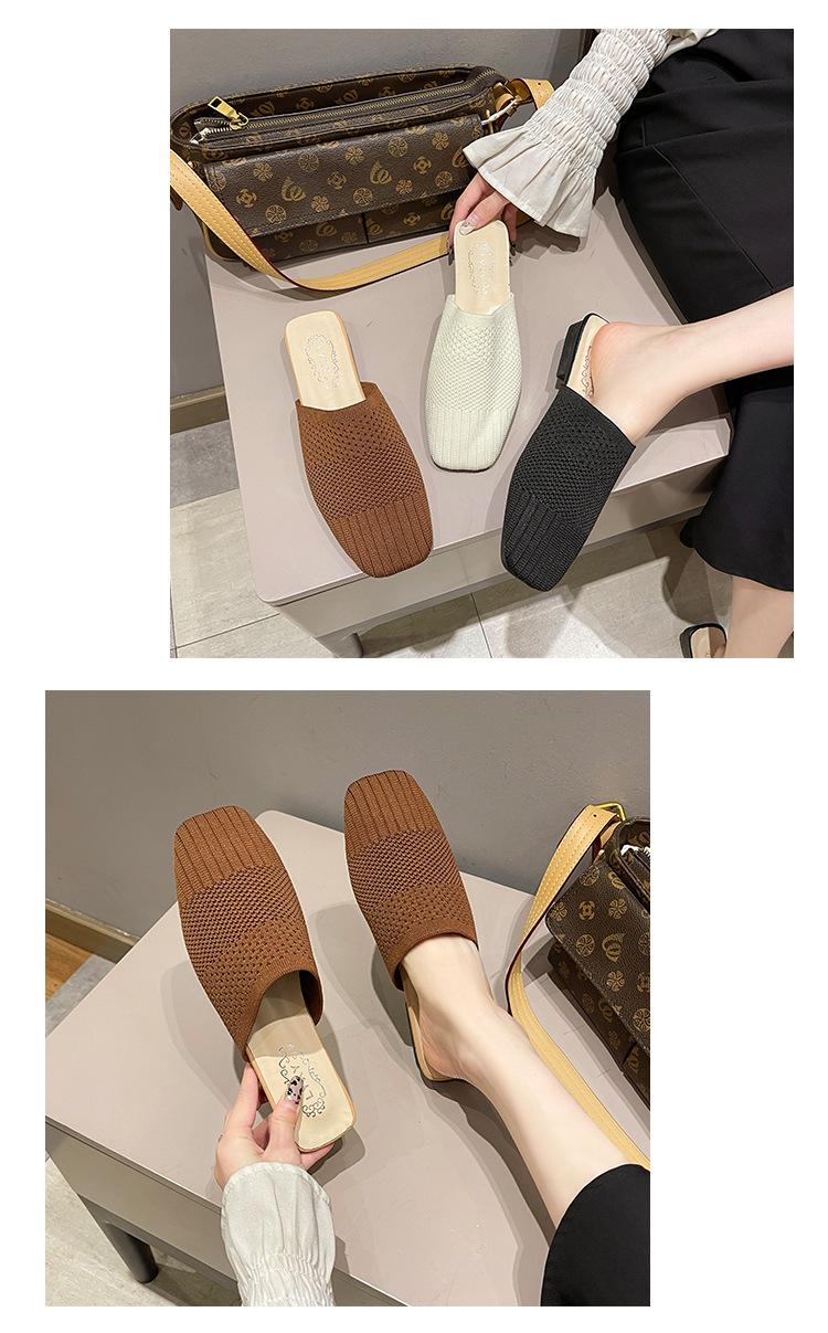 Sandalias Tejidas de Punta Cuadrada para Verano 2024 para Combinar con Todo Zapatos de Mujer Moda de Verano Tacón Bajo Estilo Coreano Pantuflas de Mujer Pantuflas Baotou de Mujer