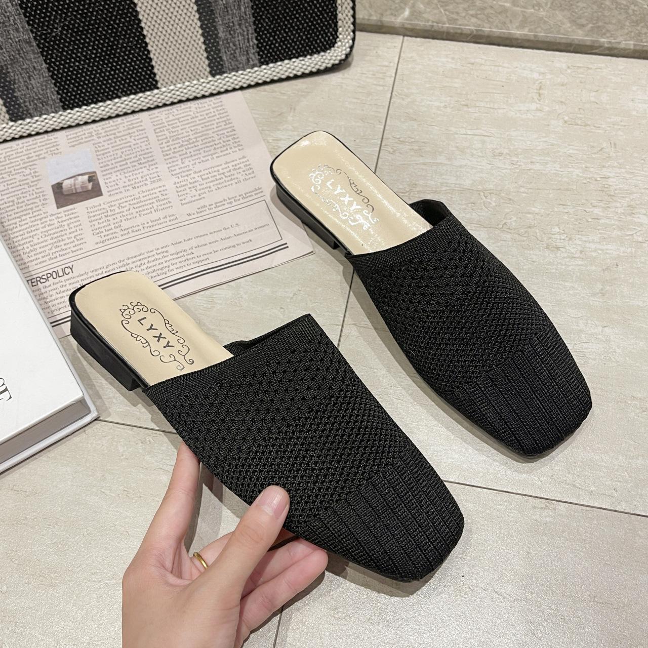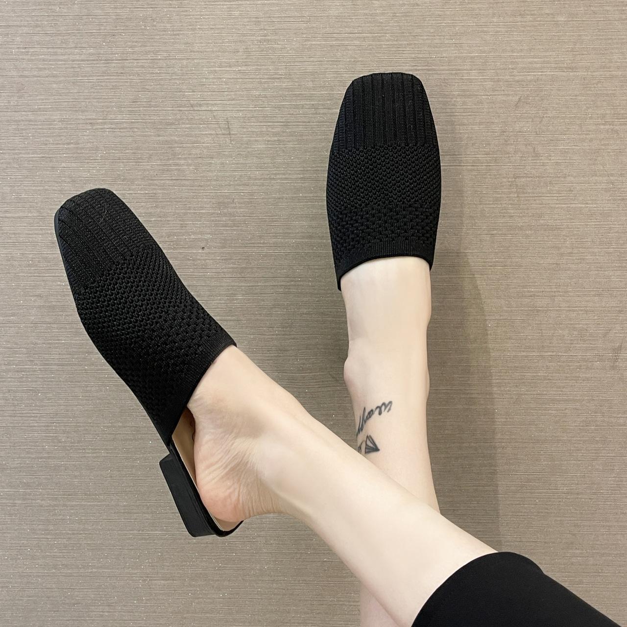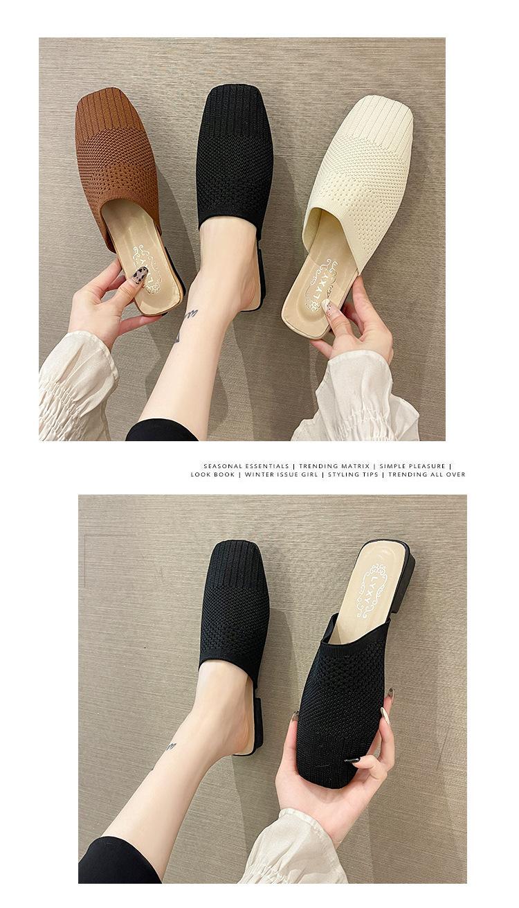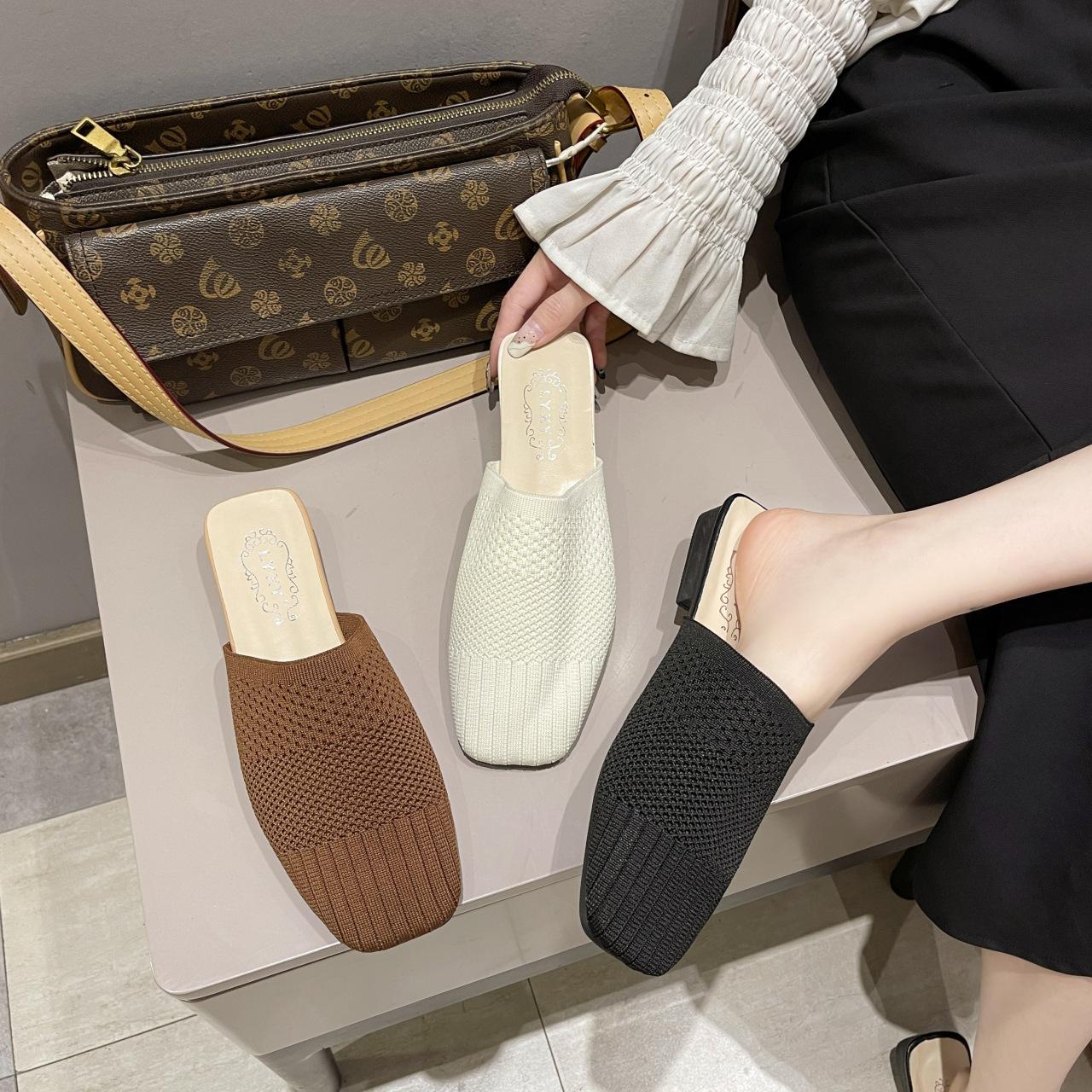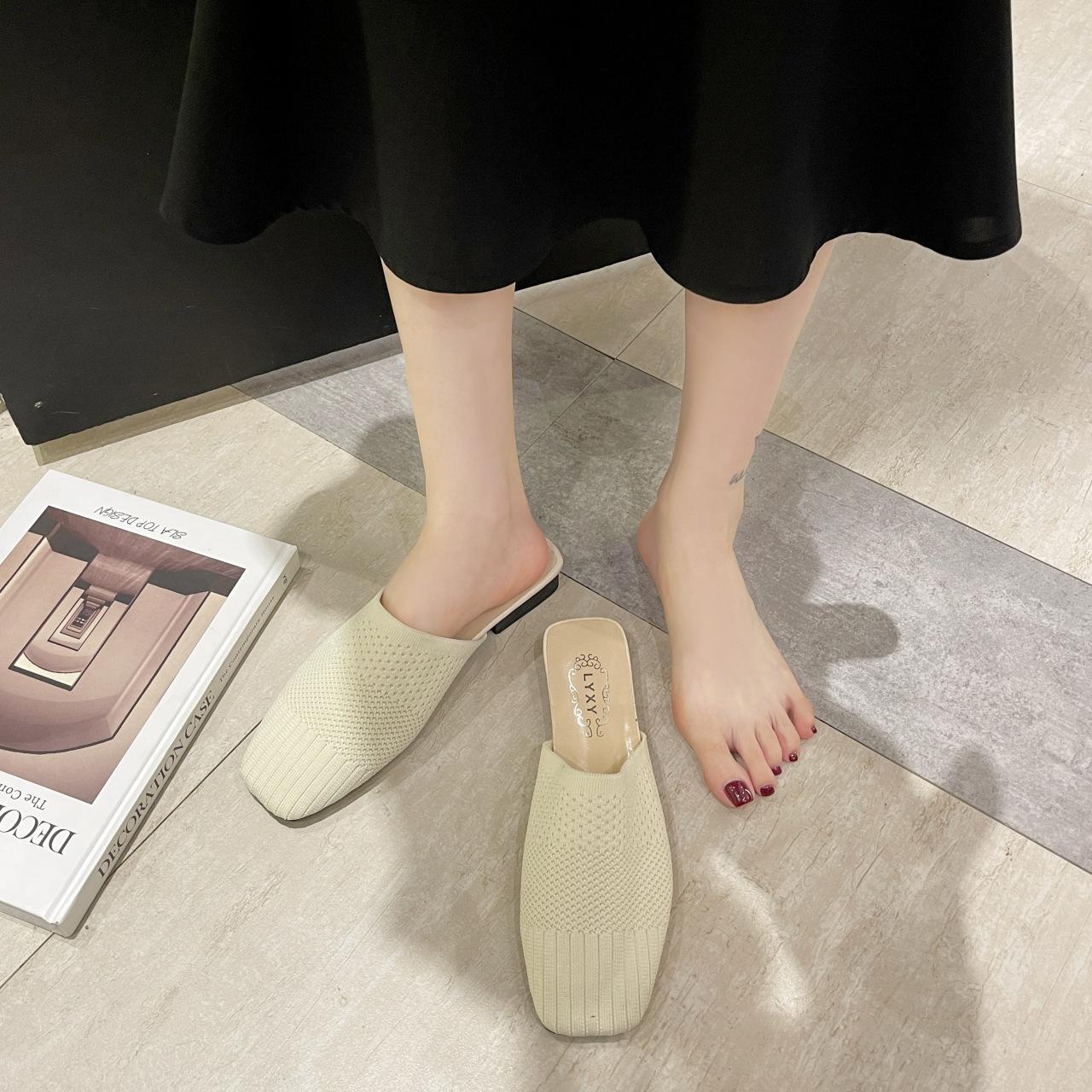Sandalias Tejidas de Punta Cuadrada para Verano 2024 para Combinar con Todo Zapatos de Mujer Moda de Verano Tacón Bajo Estilo Coreano Pantuflas de Mujer Pantuflas Baotou de Mujer