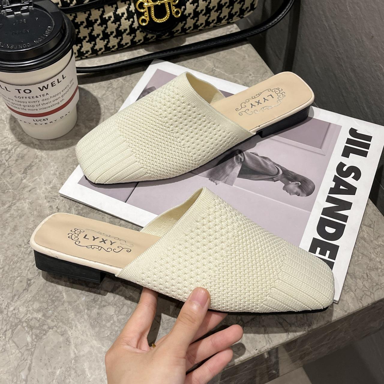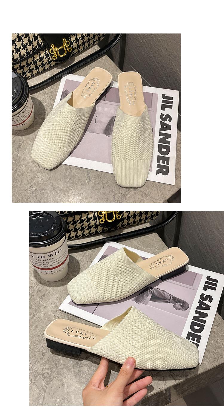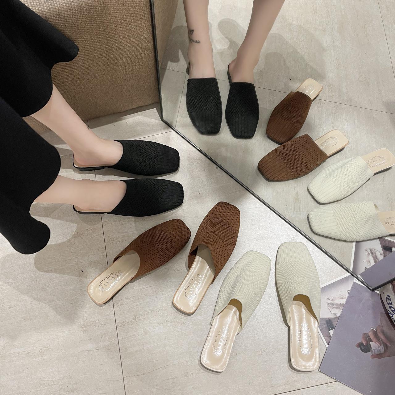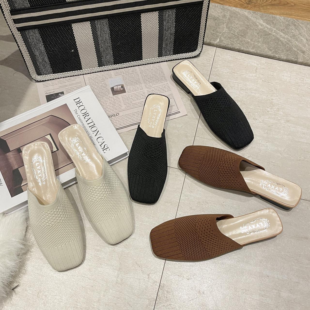 Sandalias Tejidas de Punta Cuadrada para Verano 2024 para Combinar con Todo Zapatos de Mujer Moda de Verano Tacón Bajo Estilo Coreano Pantuflas de Mujer Pantuflas Baotou de Mujer