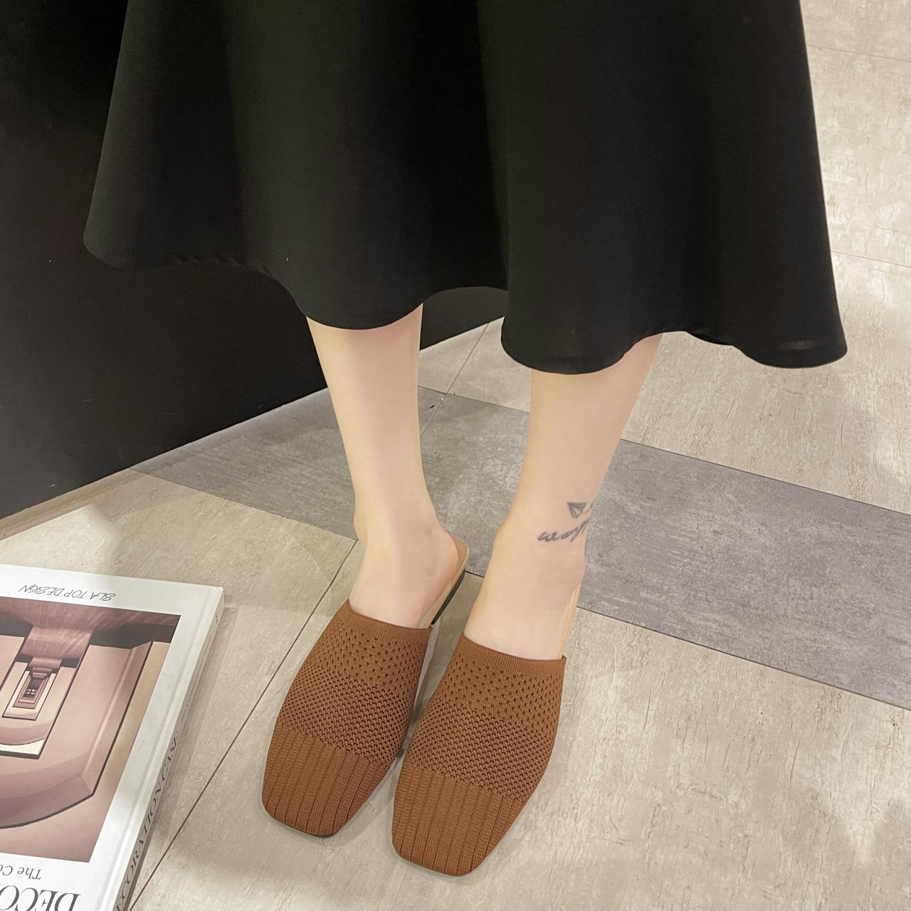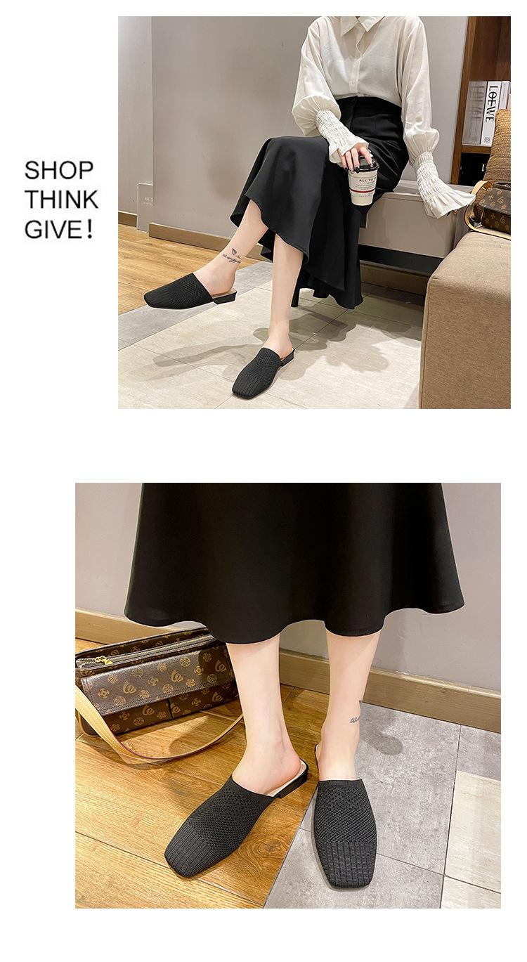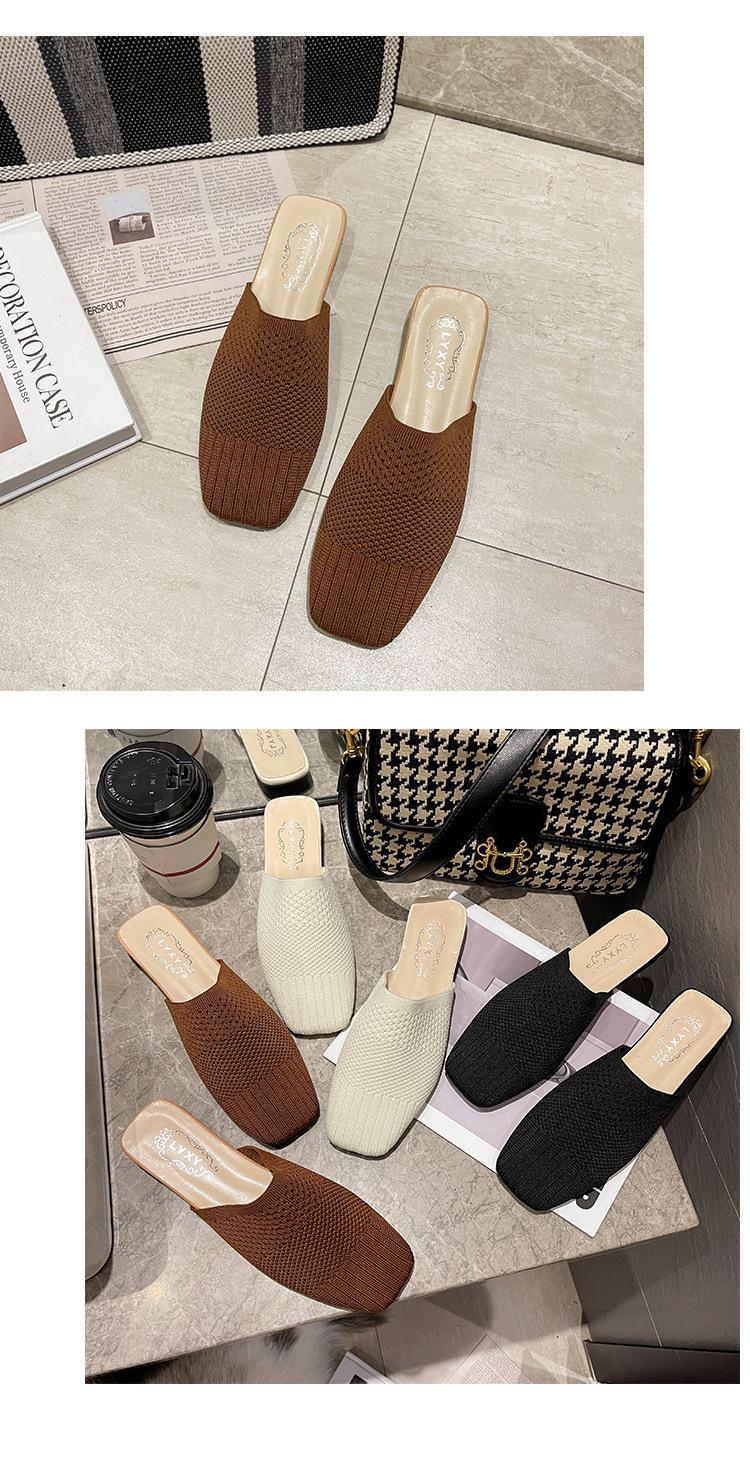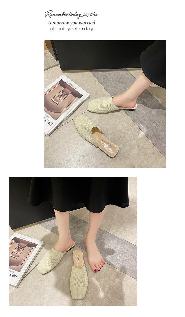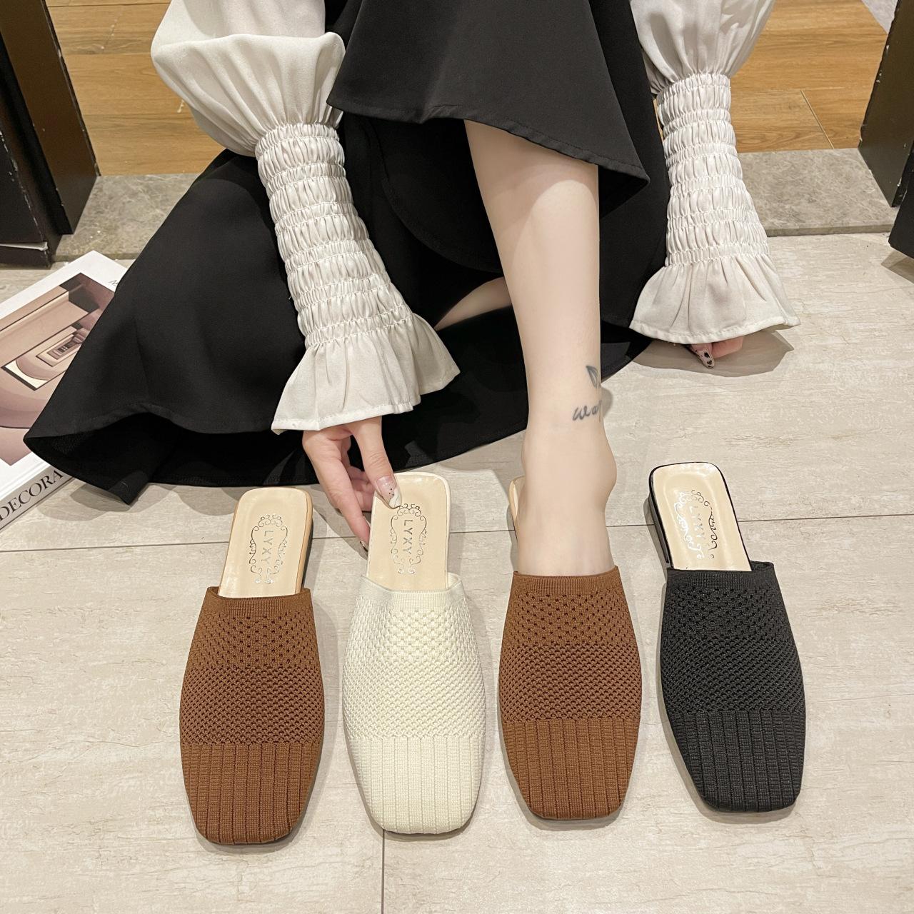 Sandalias Tejidas de Punta Cuadrada para Verano 2024 para Combinar con Todo Zapatos de Mujer Moda de Verano Tacón Bajo Estilo Coreano Pantuflas de Mujer Pantuflas Baotou de Mujer