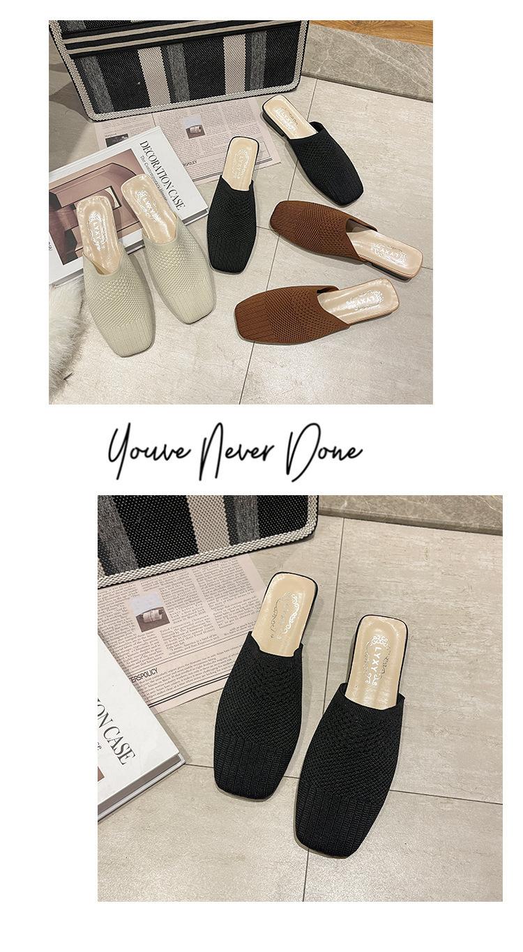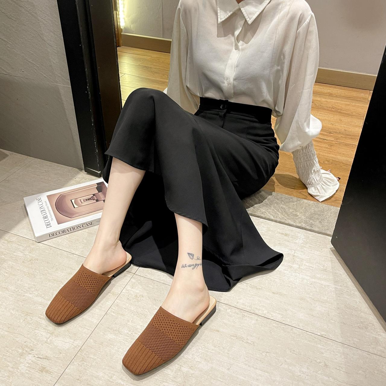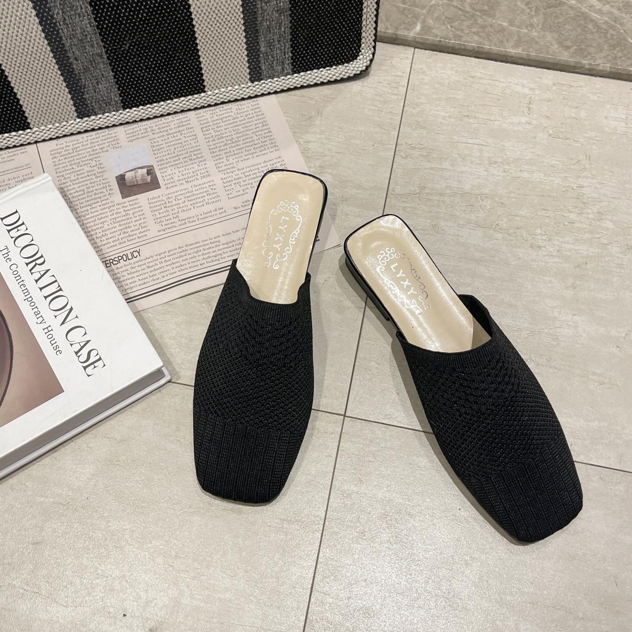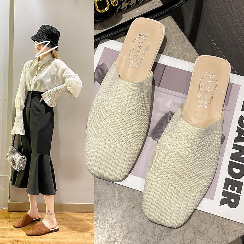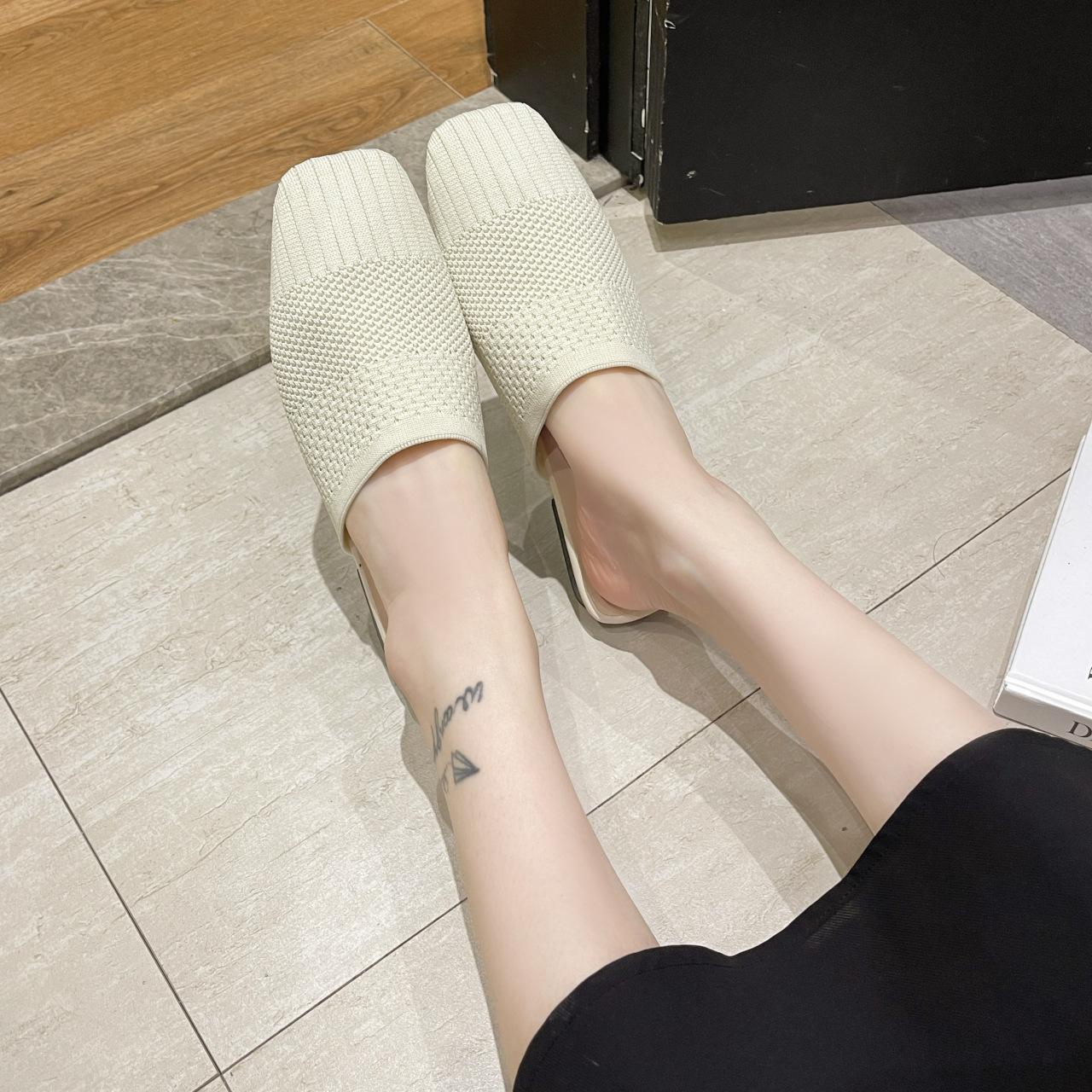 Sandalias Tejidas de Punta Cuadrada para Verano 2024 para Combinar con Todo Zapatos de Mujer Moda de Verano Tacón Bajo Estilo Coreano Pantuflas de Mujer Pantuflas Baotou de Mujer