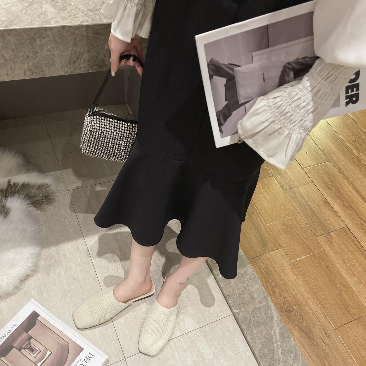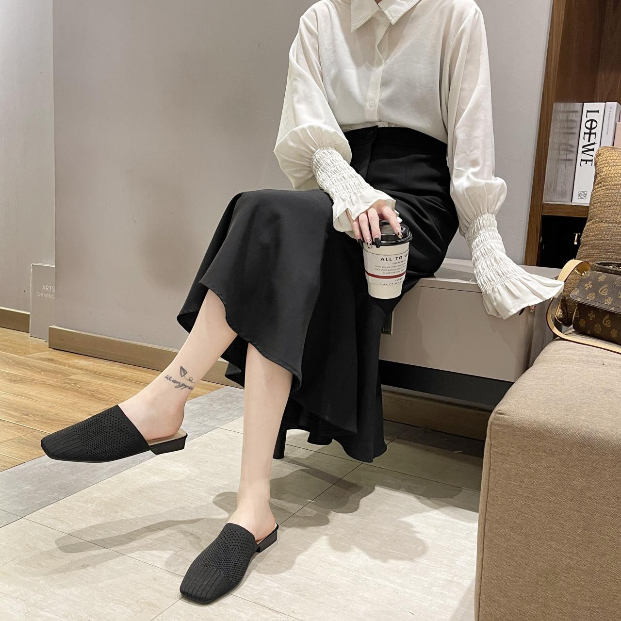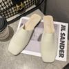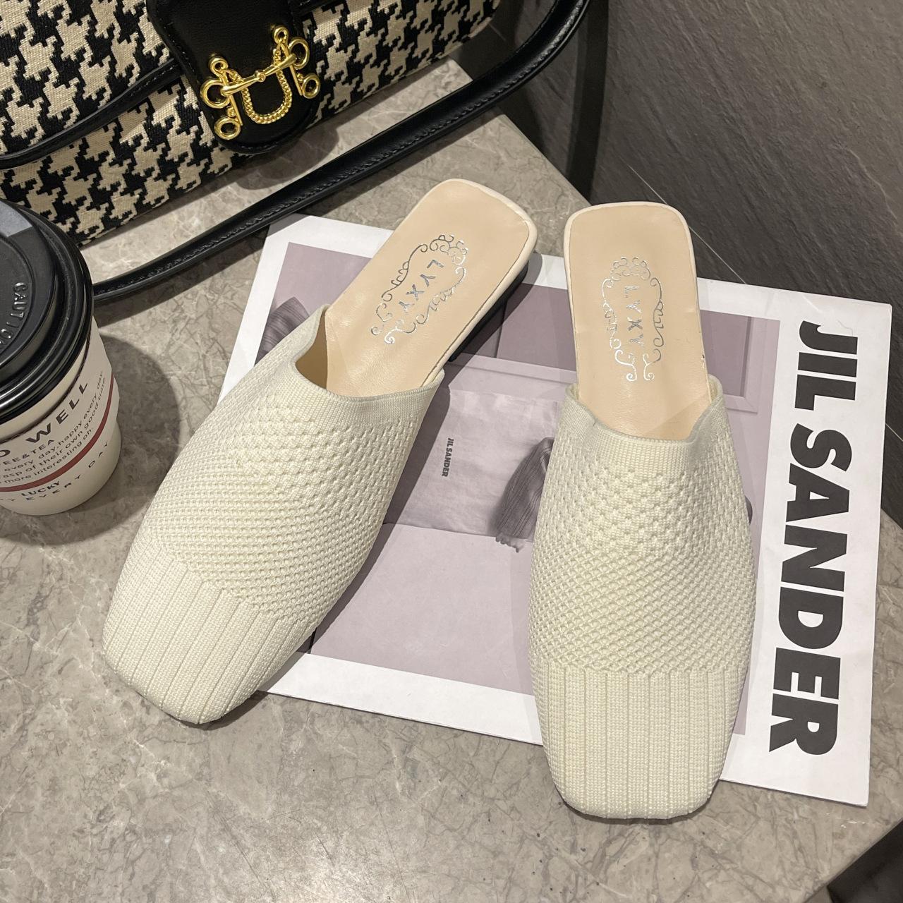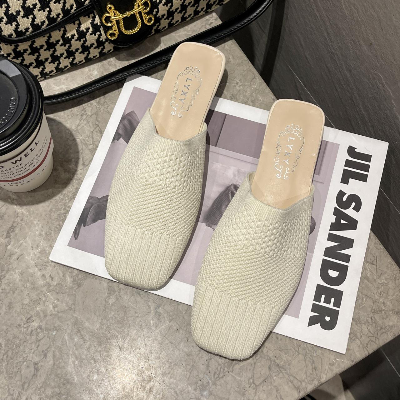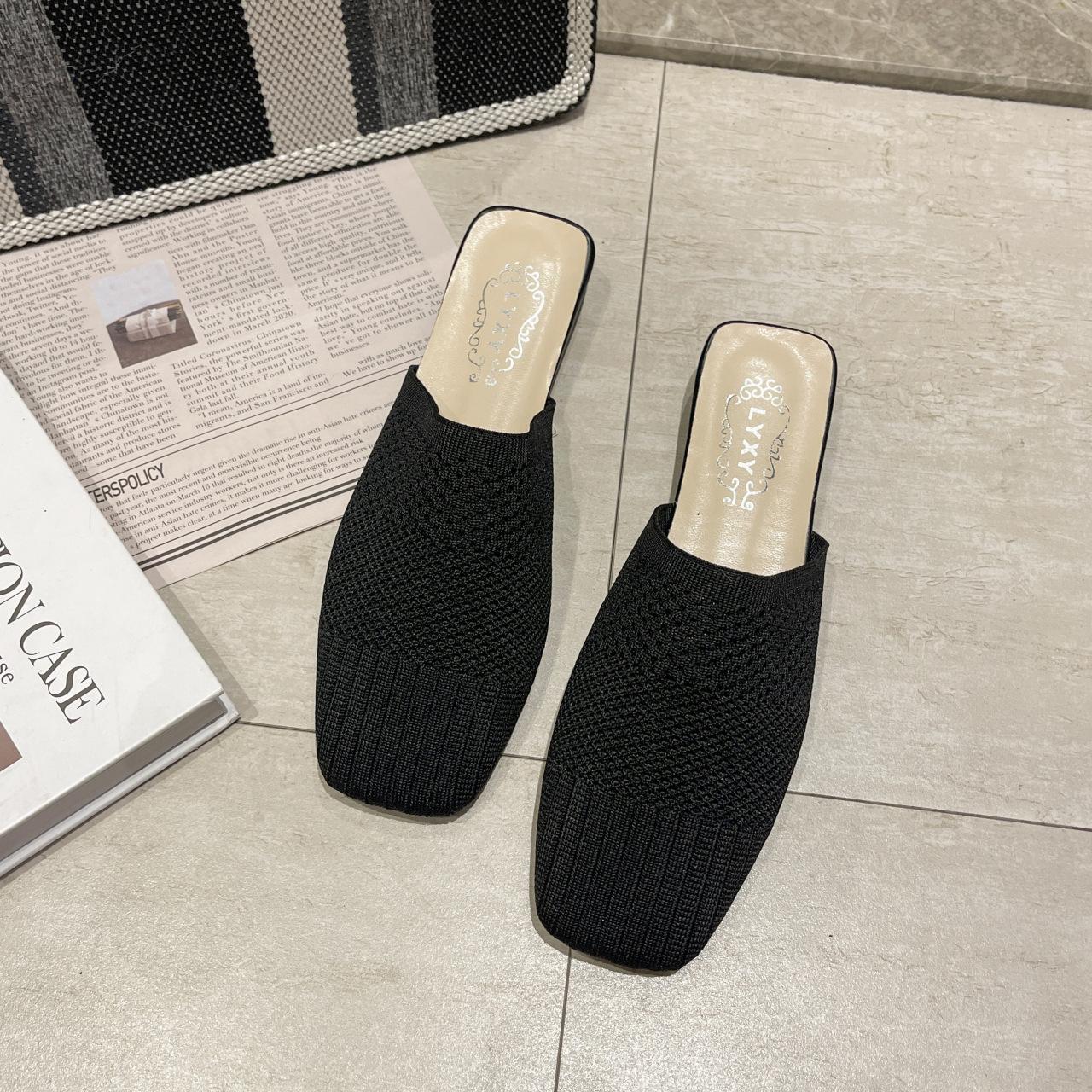 Sandalias Tejidas de Punta Cuadrada para Verano 2024 para Combinar con Todo Zapatos de Mujer Moda de Verano Tacón Bajo Estilo Coreano Pantuflas de Mujer Pantuflas Baotou de Mujer