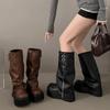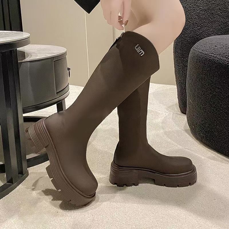 Diseño Único Botas de Montar de Corte en V de Suela Gruesa 2025 Nuevo Estilo para Mujeres Petite Botas Largas Altas y Delgadas