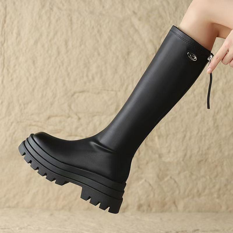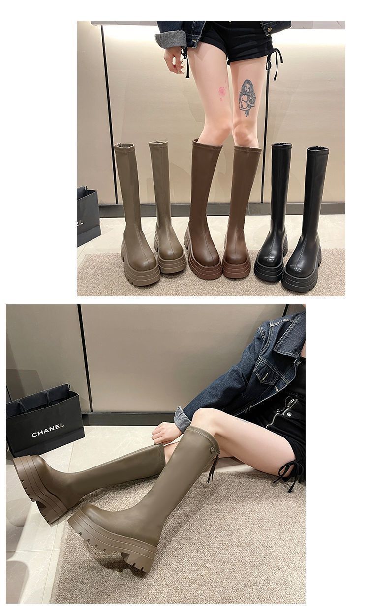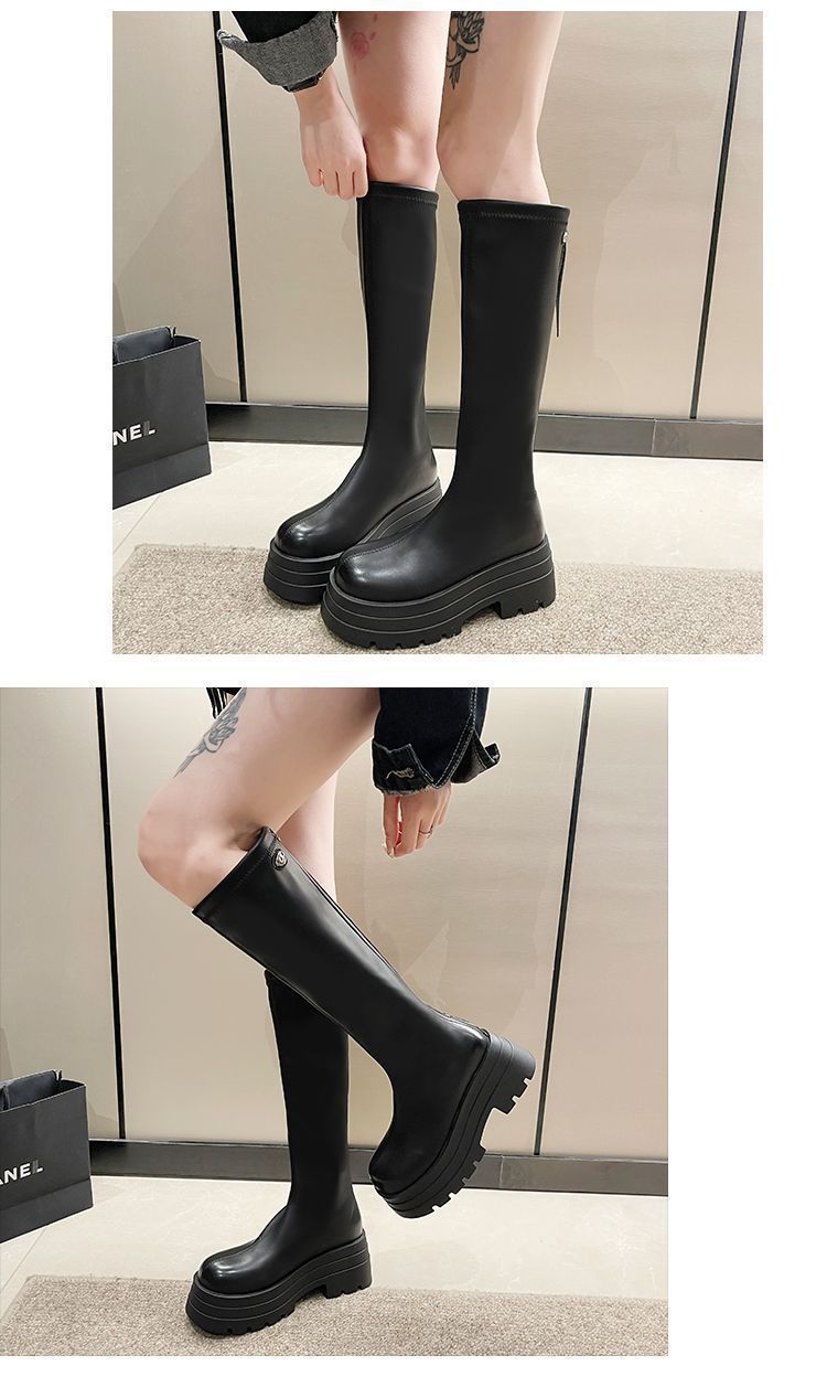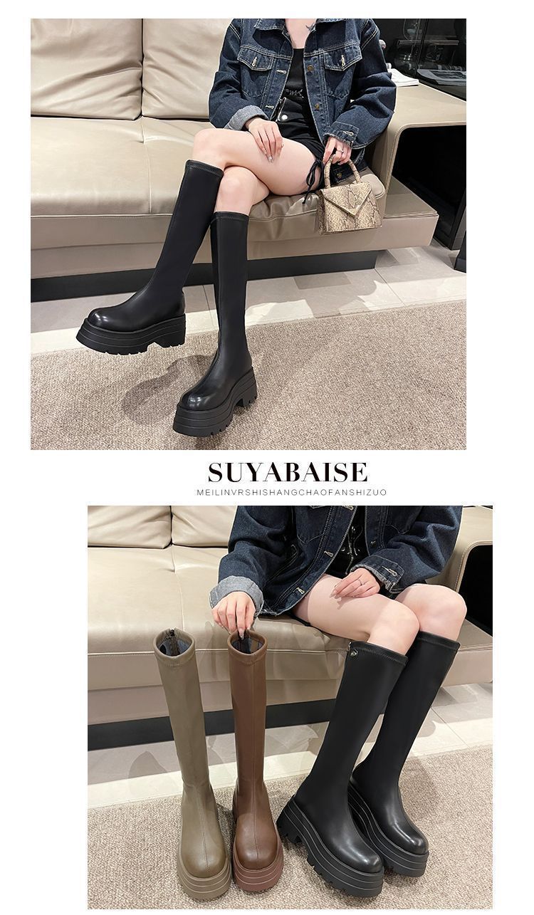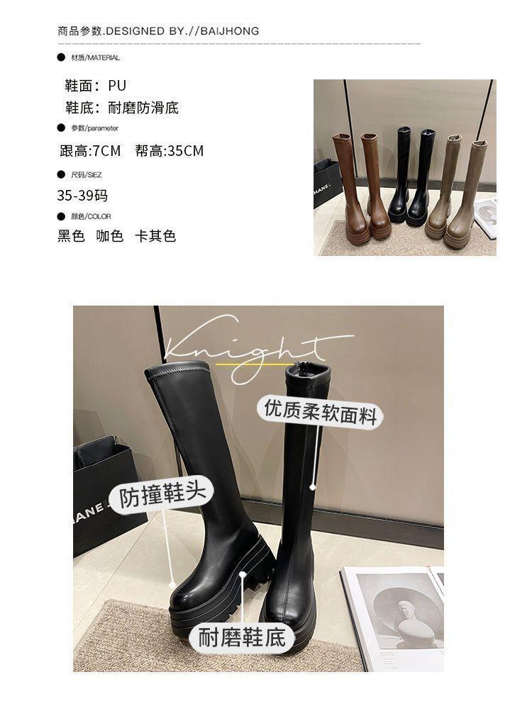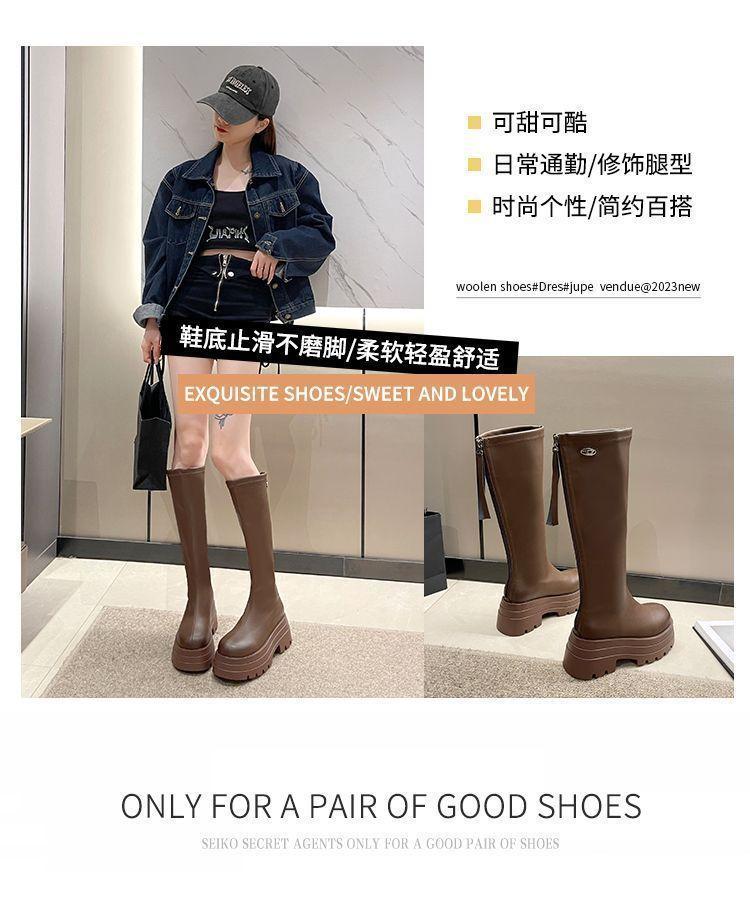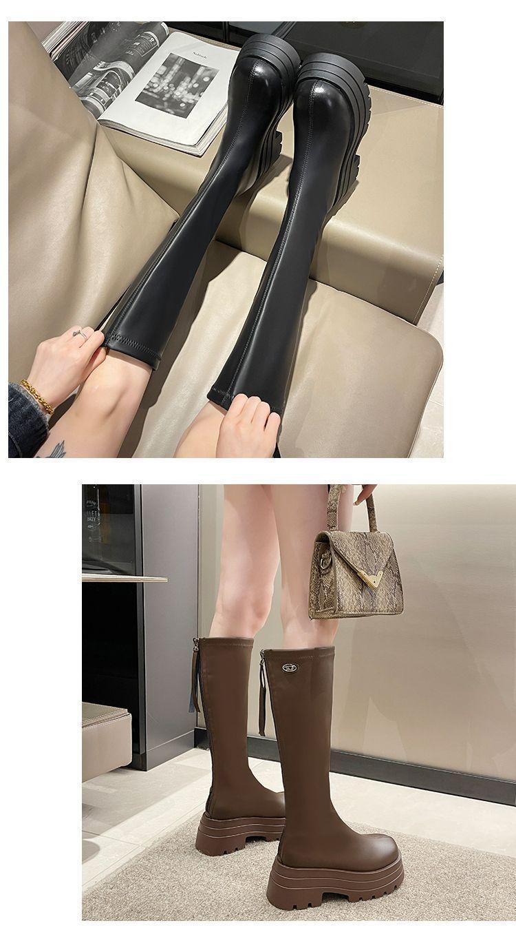 Botas por encima de la rodilla para niños Otoño e Invierno 2024 Nuevo Fondo Grueso Pequeñas Adelgazantes Cierre Trasero Botas Altas Botas de Caballero