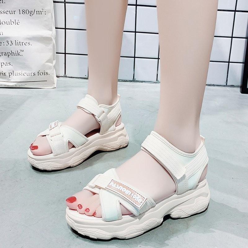 2023 Verano Nuevo Plano Estudiante Moda Coreana Plataforma Suela Gruesa Celebridad de Internet Casual Zapatos de Playa Sandalias Deportivas para Mujer