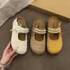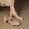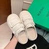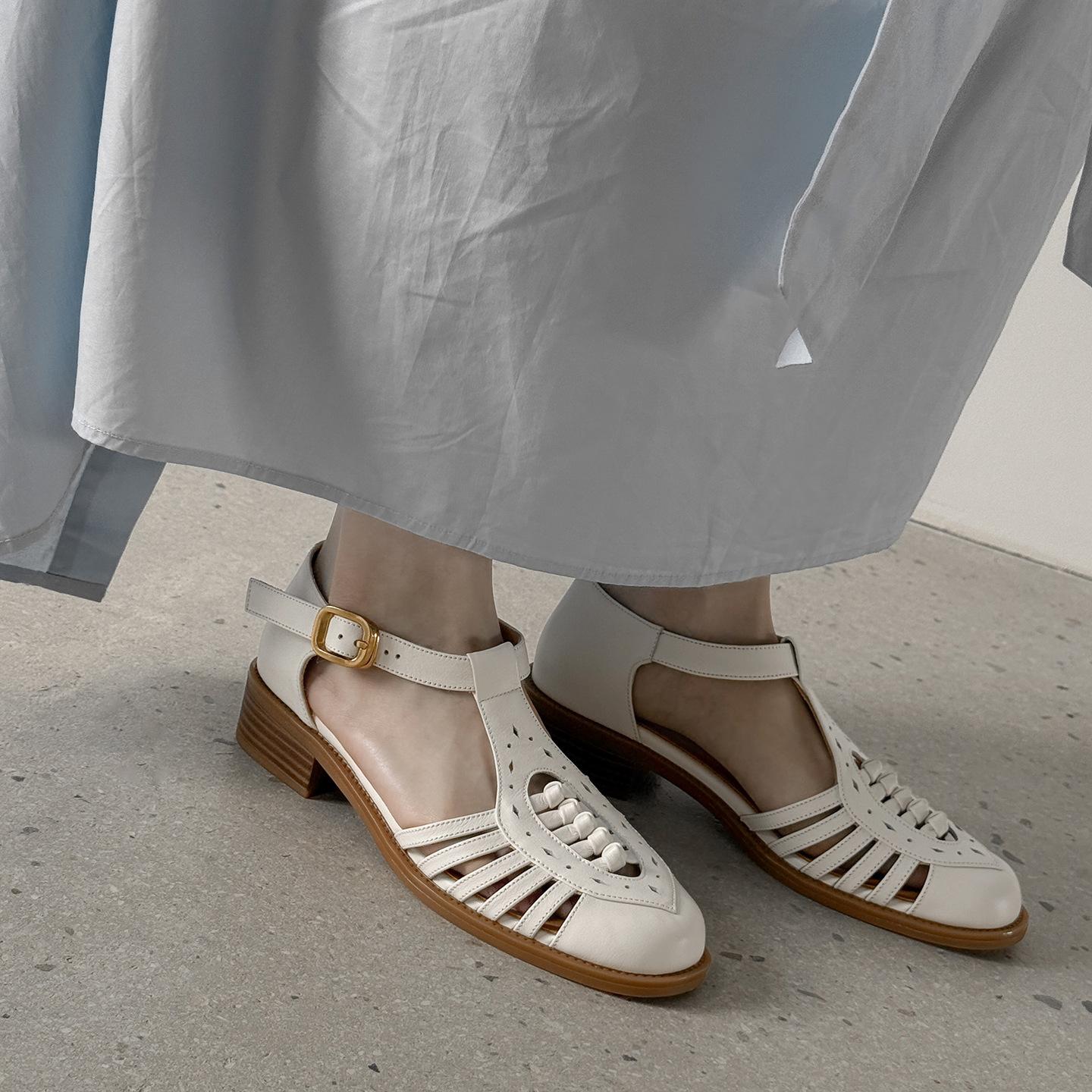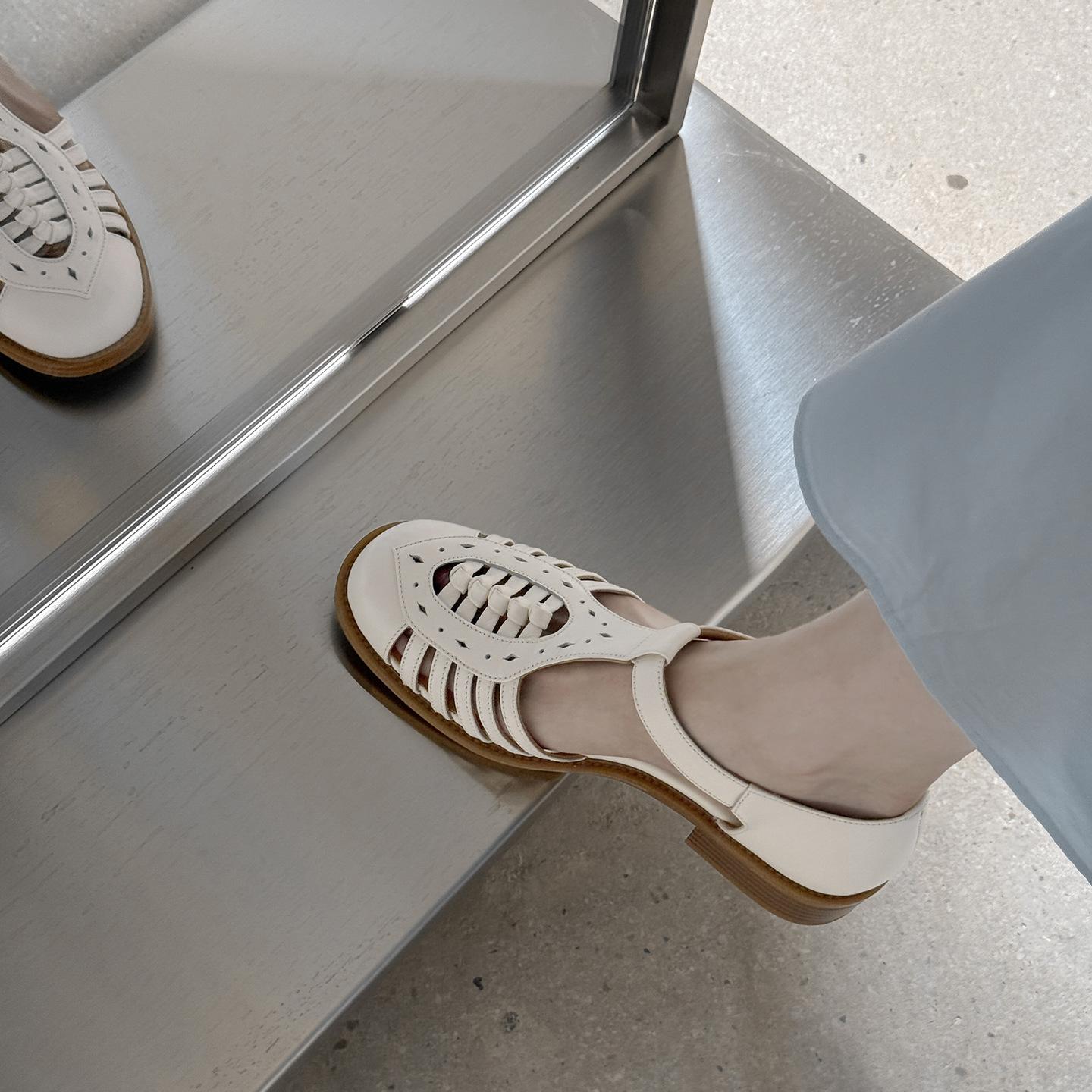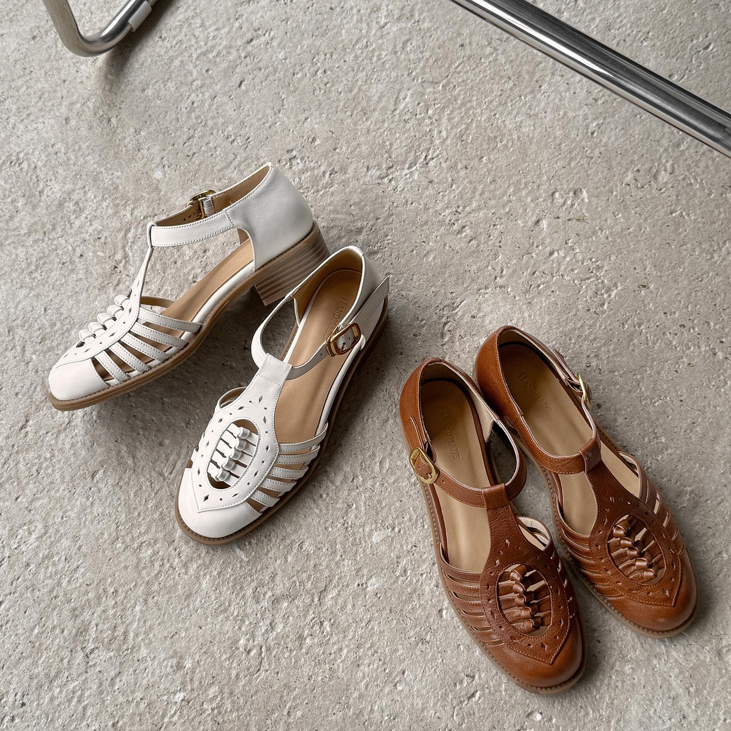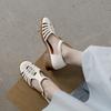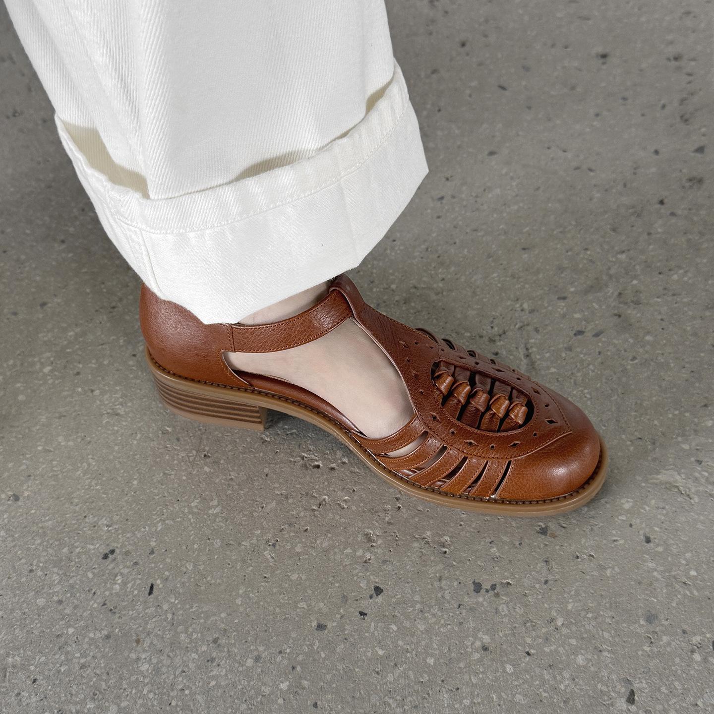 Sandalias de Puntera de Cuero Vacuno de Primera Capa 2025 para Mujer, Zapatos de Mamá de Verano Nuevos de Tacón Medio con Recortes de Suela Gruesa, Versátiles