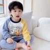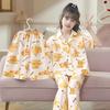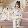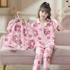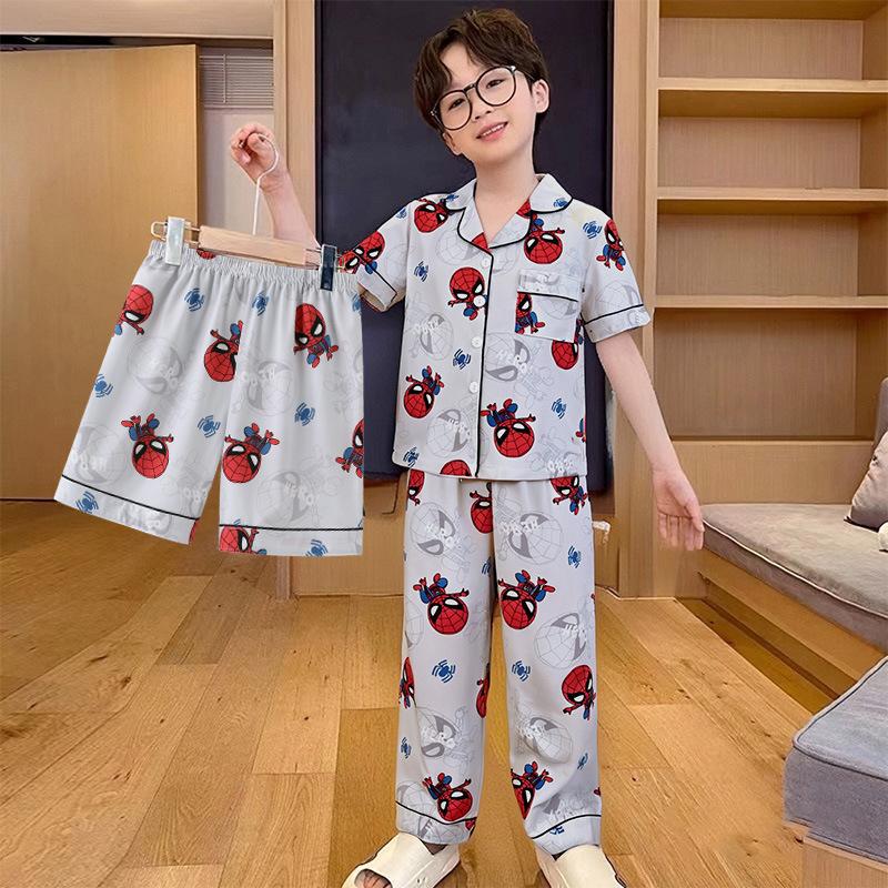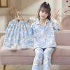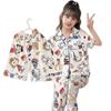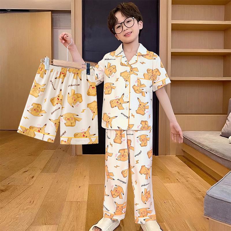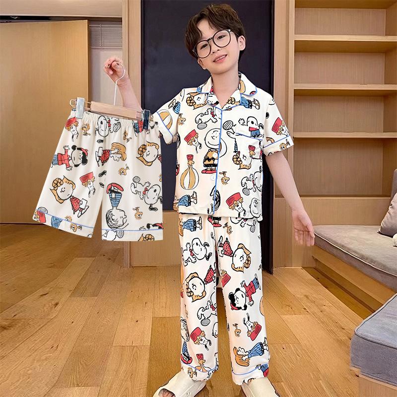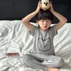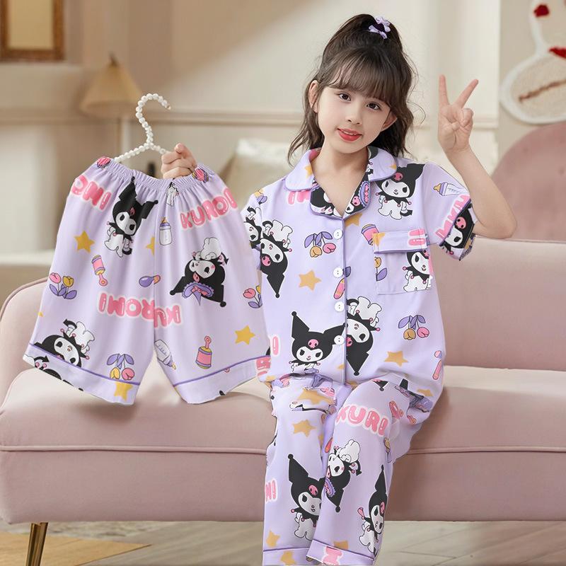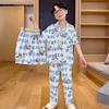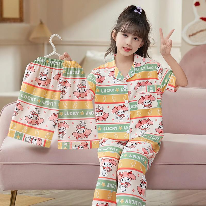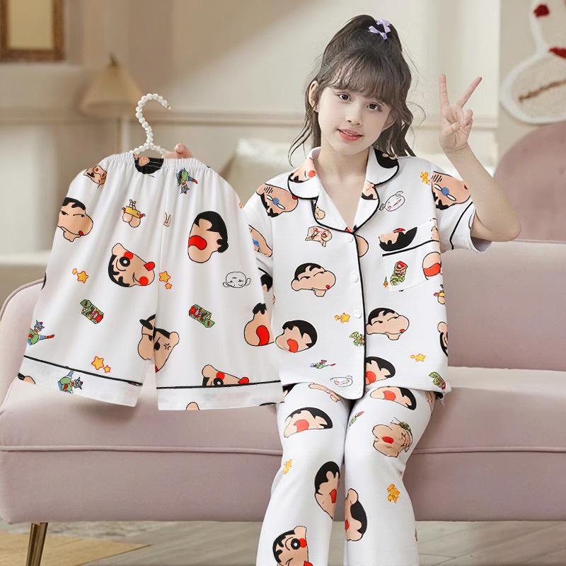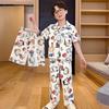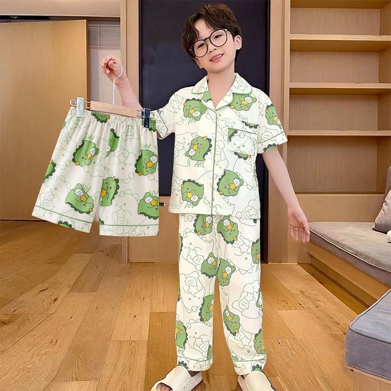 Pantalones cortos de verano para niños de manga corta Seda de leche Imitación algodón Solapa Dibujos animados Niños y niñas Cárdigan Pijama traje Ropa para el hogar