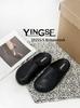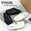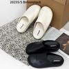 Meeigeec.Q Zapatos de Moda Mueller de Piel Vacuna con Puntera Redonda para Mujer Primavera 2025 Nuevos Zapatos de Cuero Perezosos Boken para Mujer