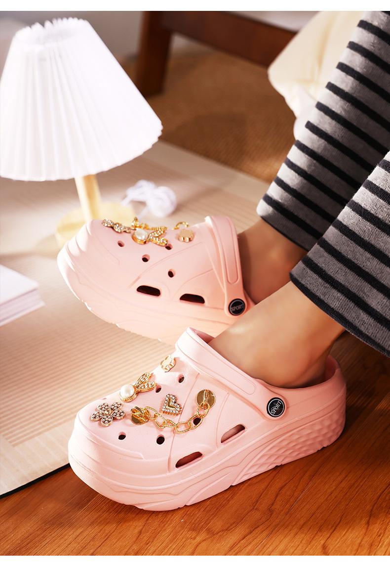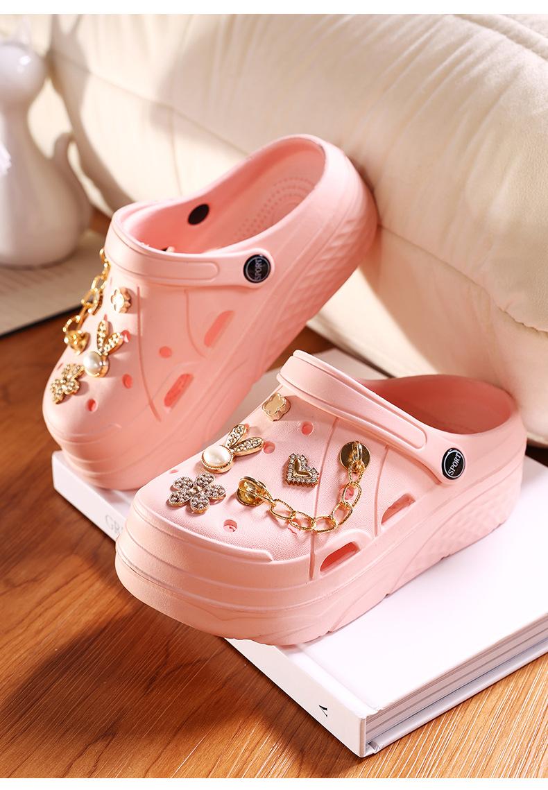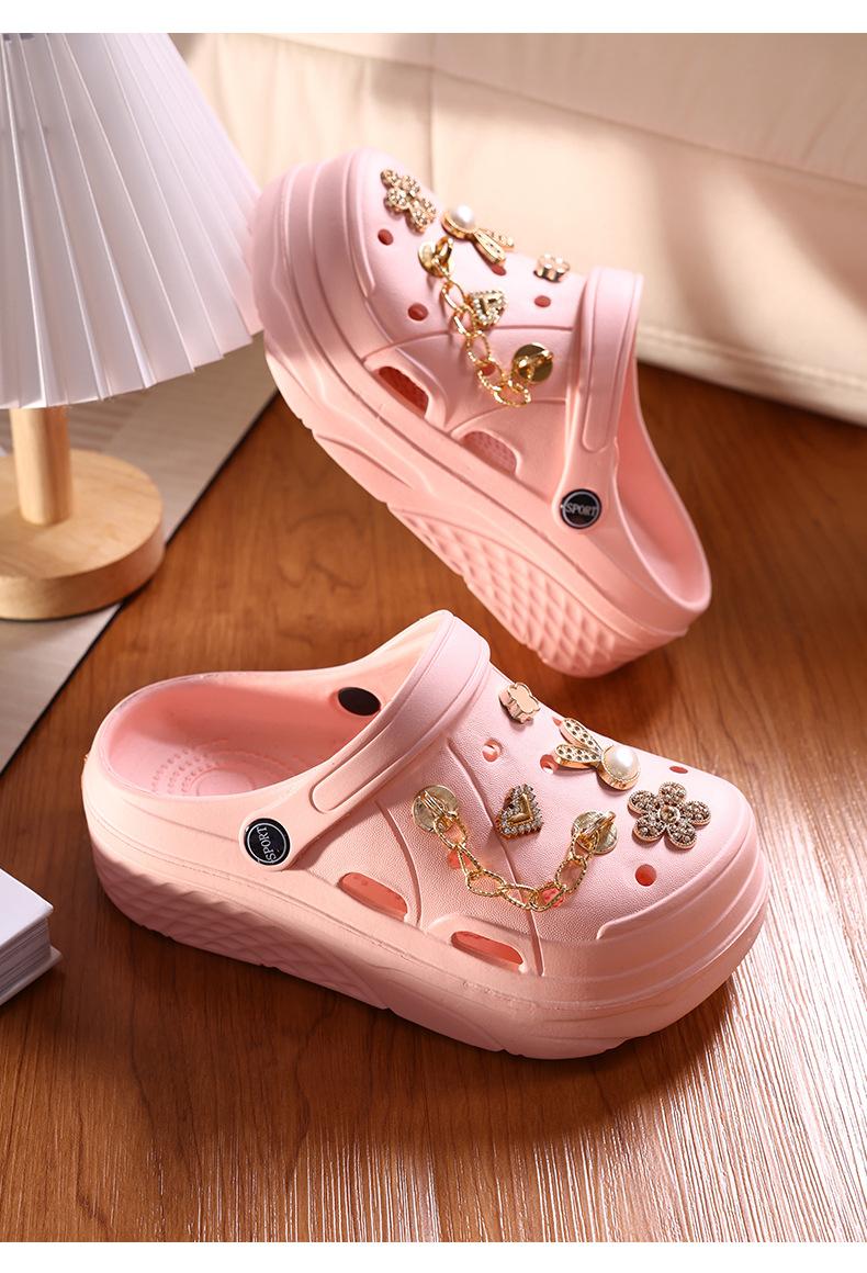 Zapatos de Plástico de Dibujos Animados Lindos, Zapatos con Agujeros de Flores, Ropa Exterior de Verano para Mujer, Pantuflas Antideslizantes de Punta Descubierta, Sandalias Casuales de Moda