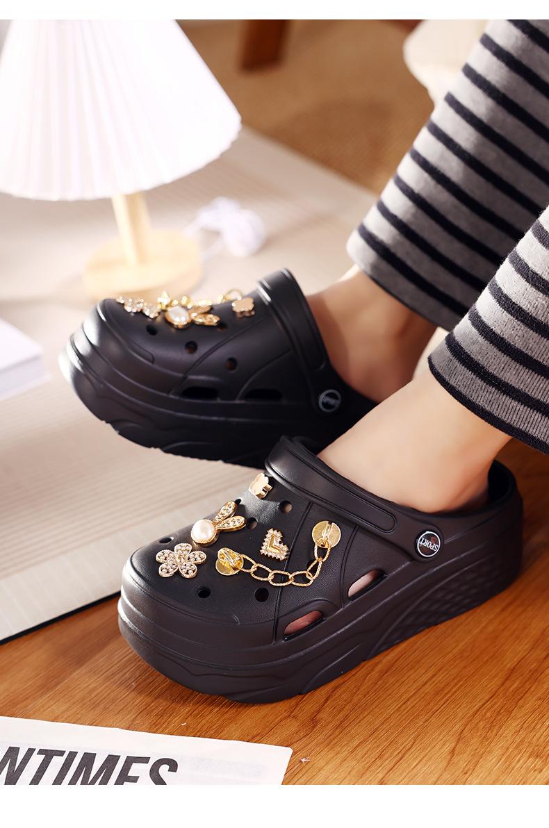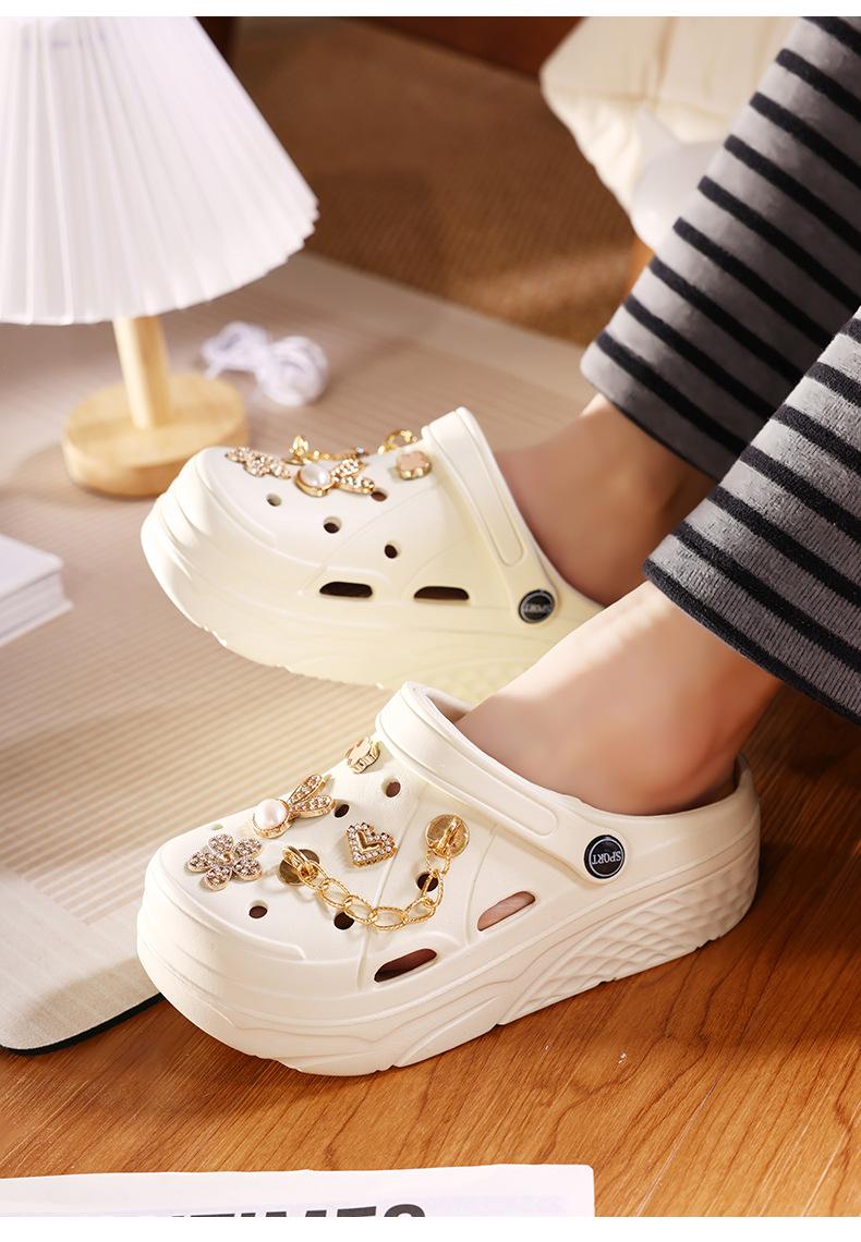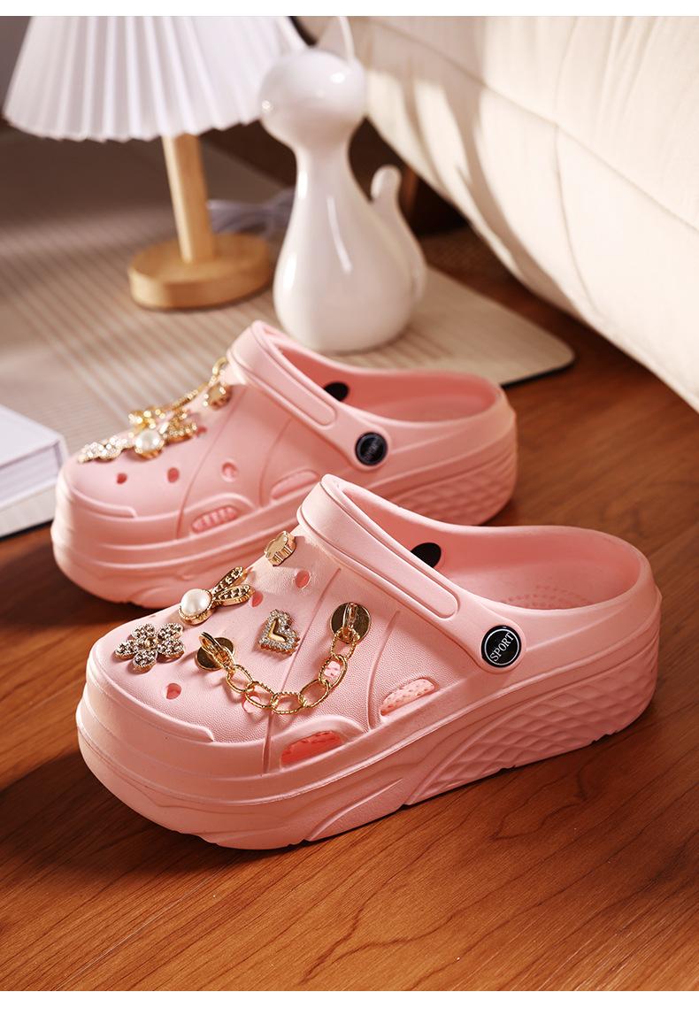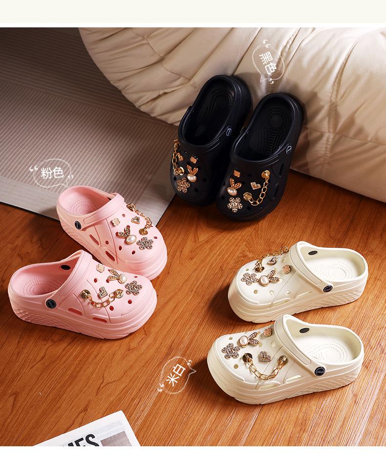 Zapatos de Plástico de Dibujos Animados Lindos, Zapatos con Agujeros de Flores, Ropa Exterior de Verano para Mujer, Pantuflas Antideslizantes de Punta Descubierta, Sandalias Casuales de Moda