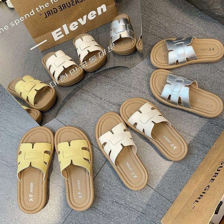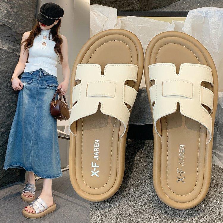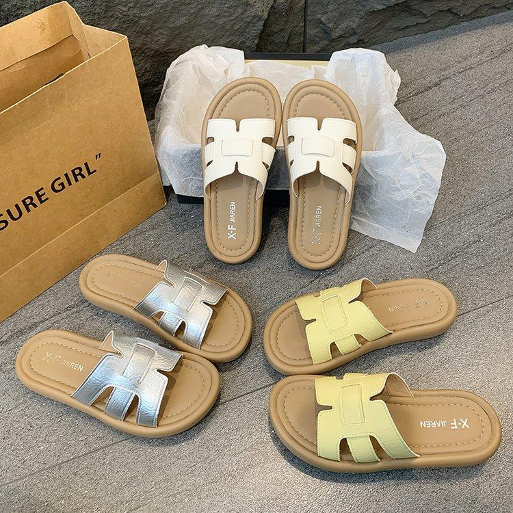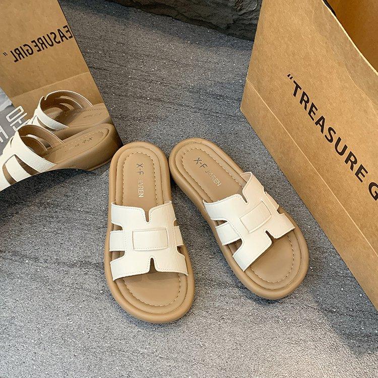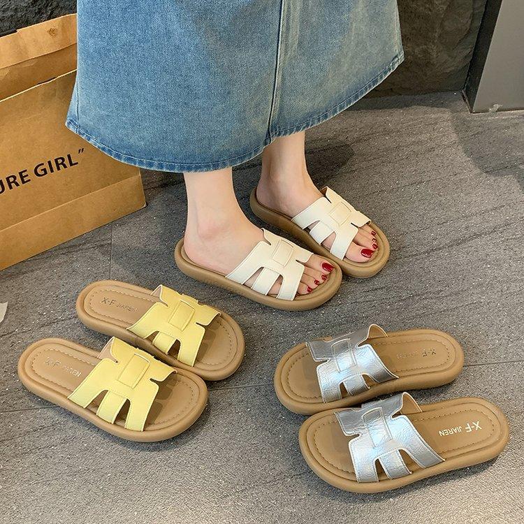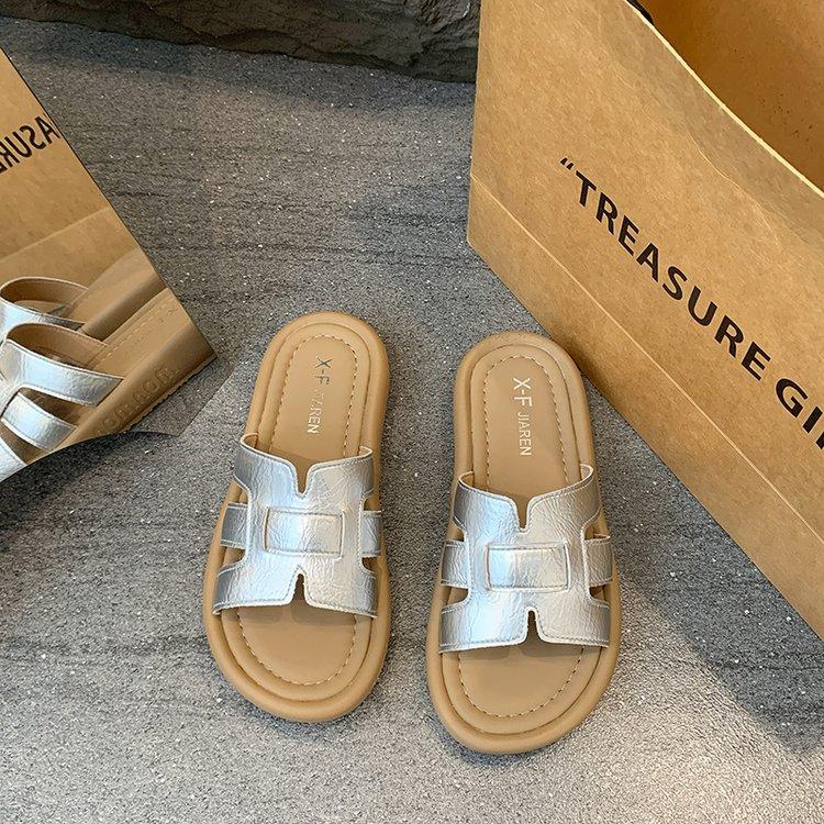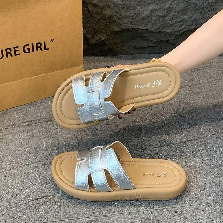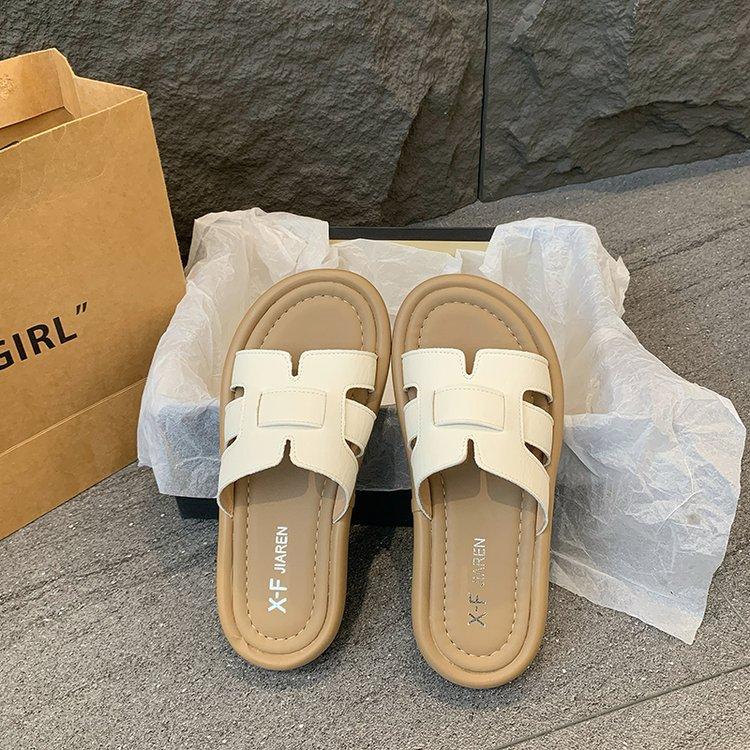 Sandalias planas para mujer 2025 Verano Nuevo Uso exterior Punta redonda Moda simple Zapatillas de playa con zapatillas de falda