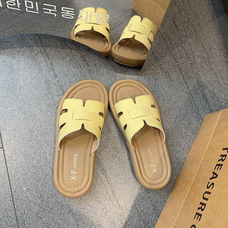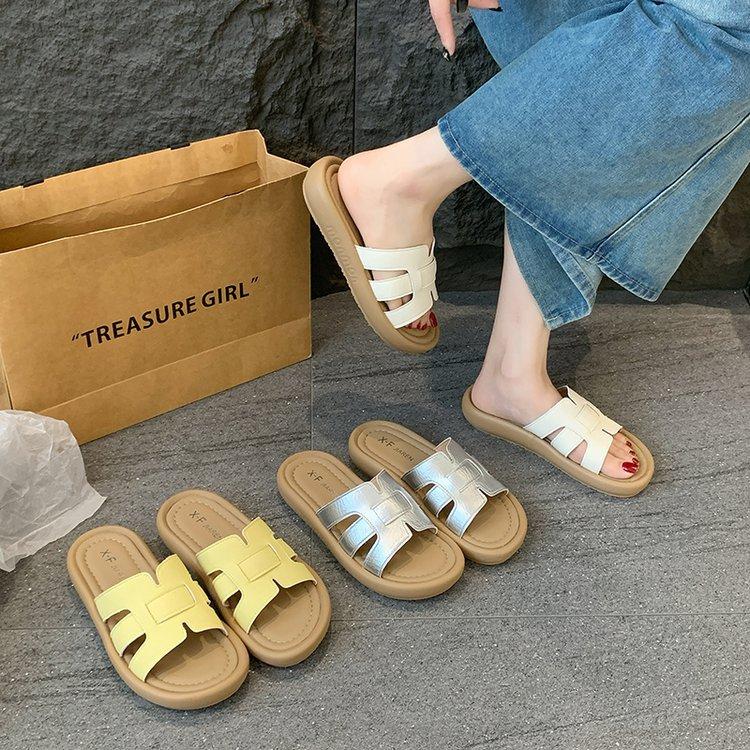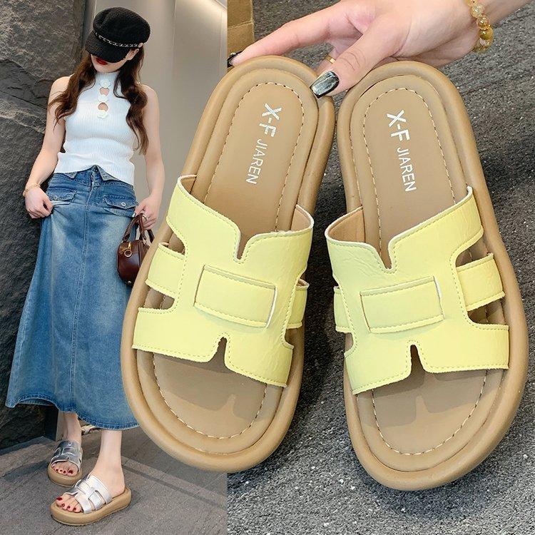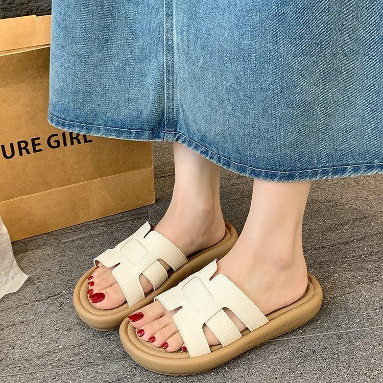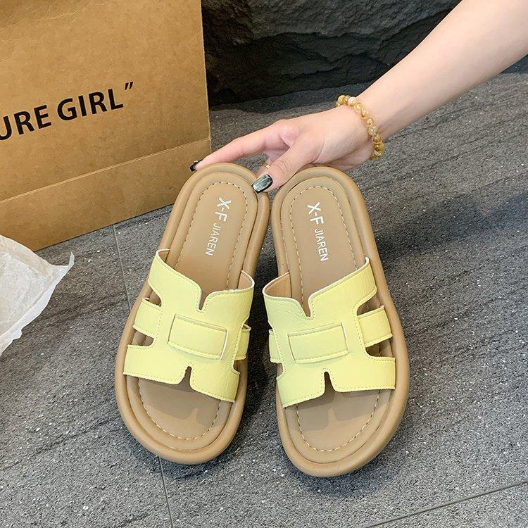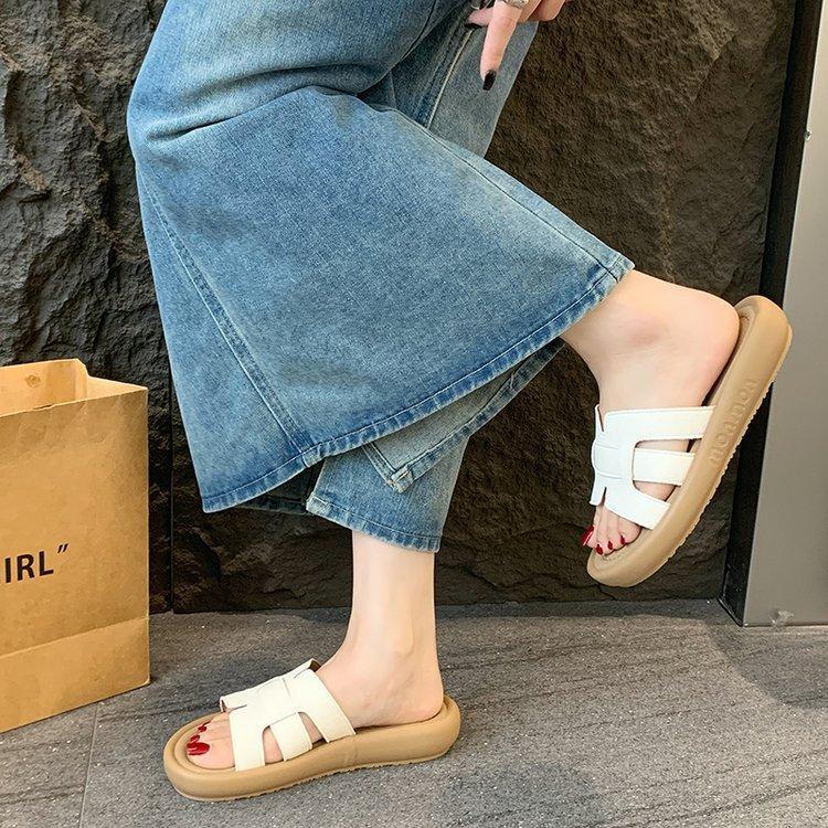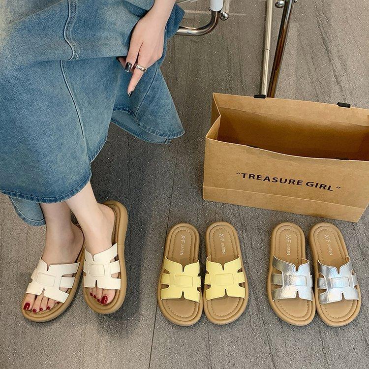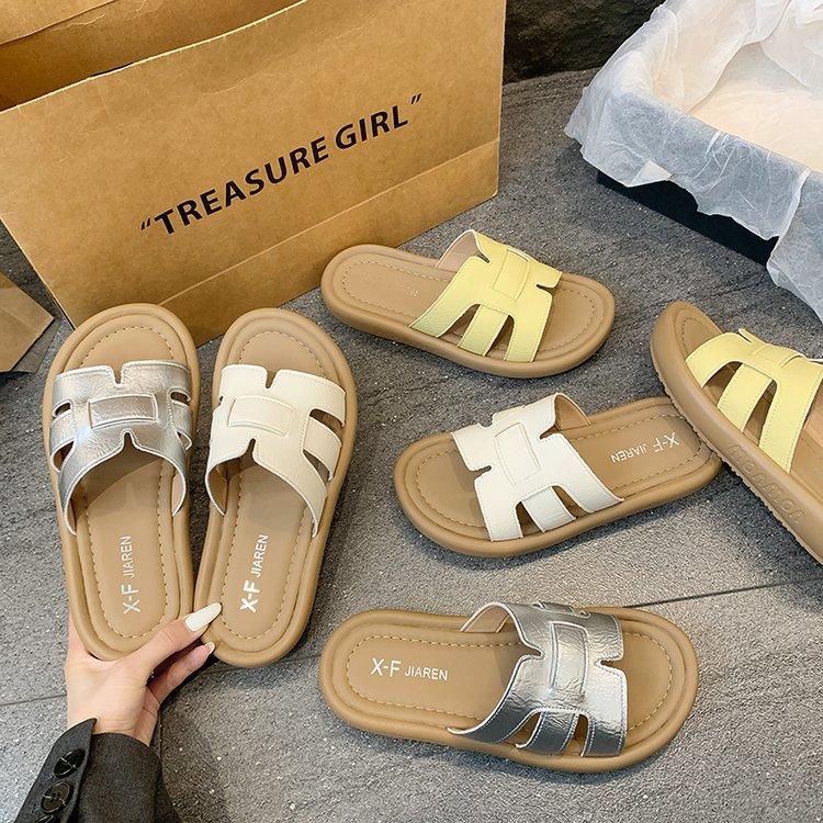 Sandalias planas para mujer 2025 Verano Nuevo Uso exterior Punta redonda Moda simple Zapatillas de playa con zapatillas de falda