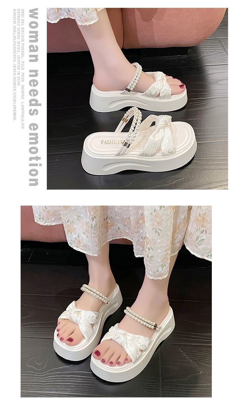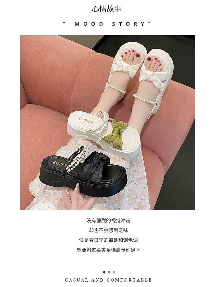 Hermosas Pantuflas de Suela Gruesa para Verano para Mujer 2025 Nuevo Estilo con Falda Sandalias Francesas Elevadoras Sandalias Casuales