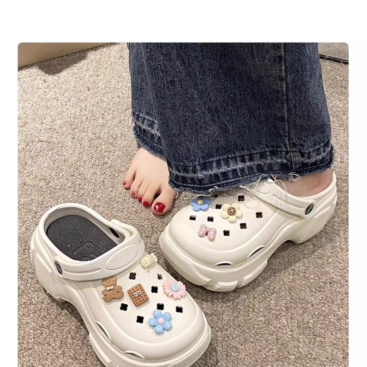 Zapatos de agujeros EVA de suela gruesa Zapatos de altura alta Ropa exterior para mujer 2025 Nuevo Zapato antideslizante Sandalias de playa sin cordones para verano