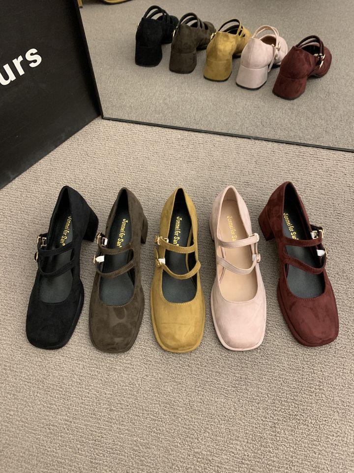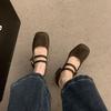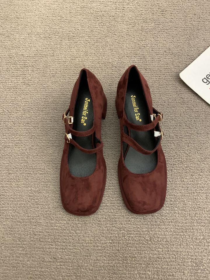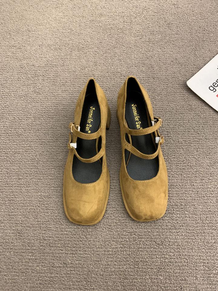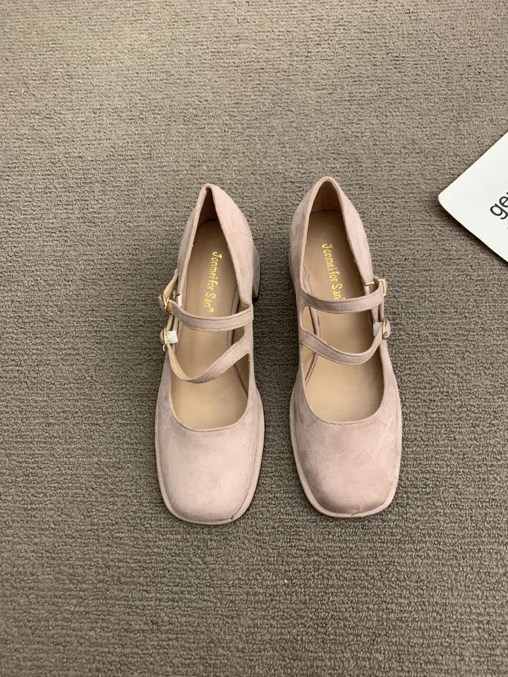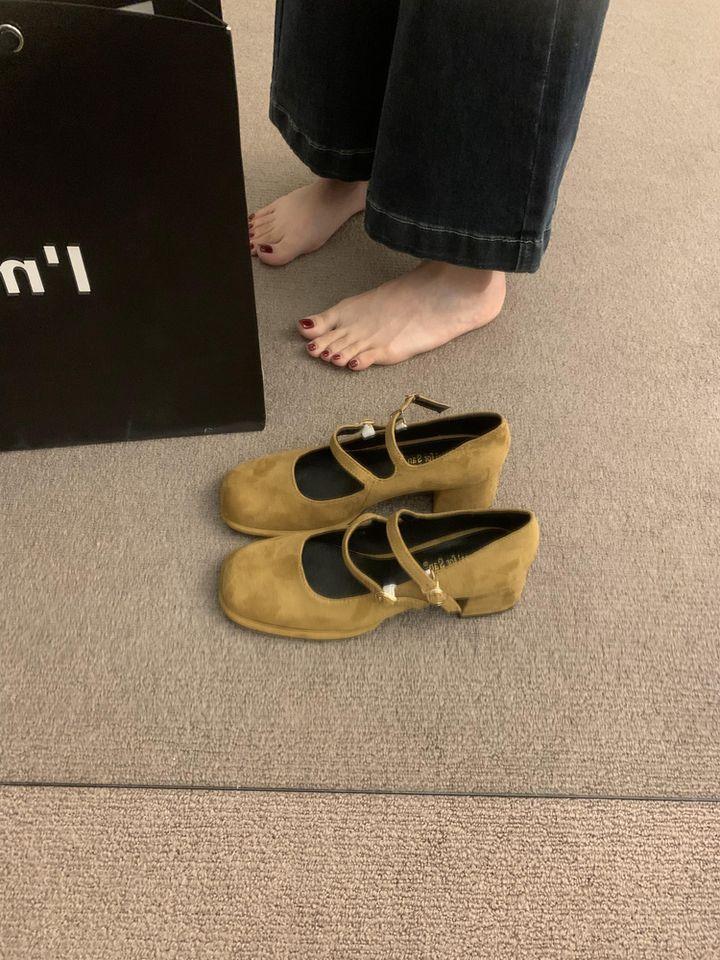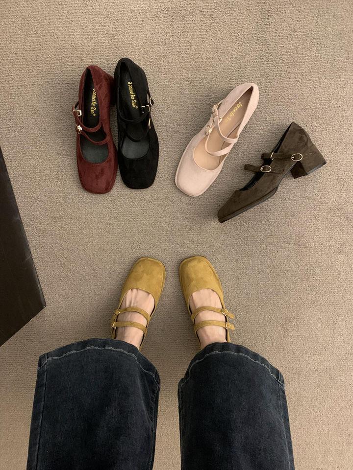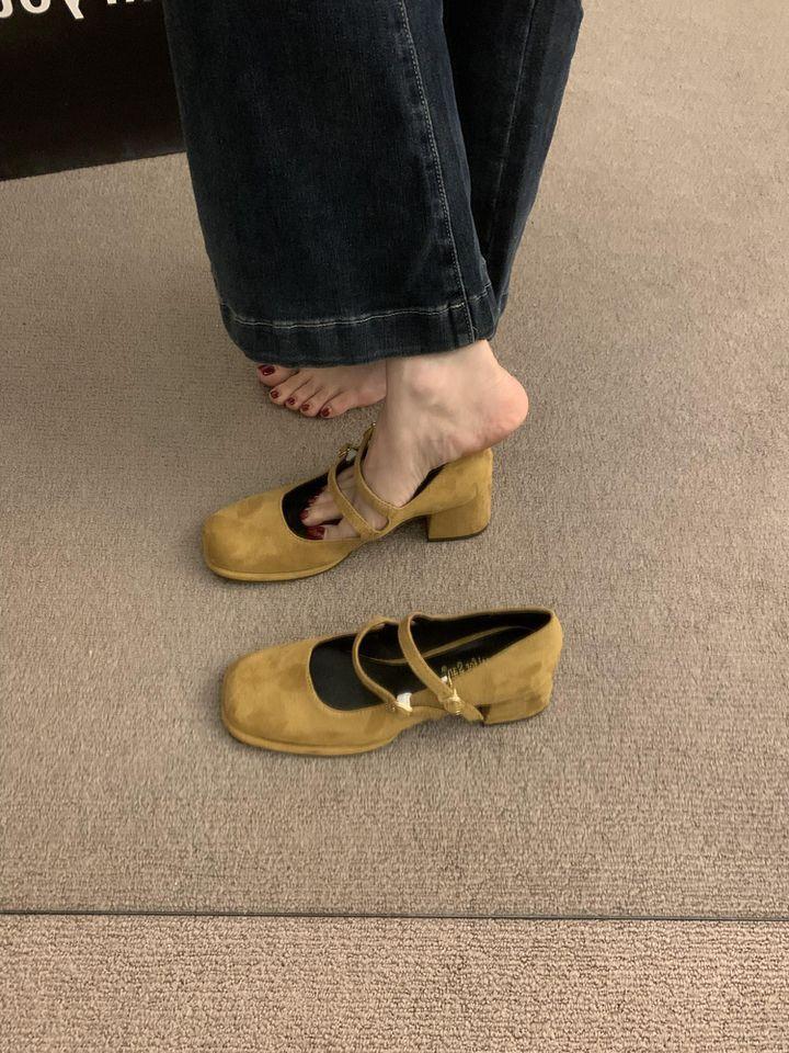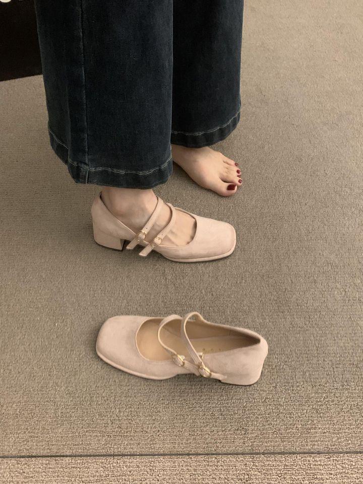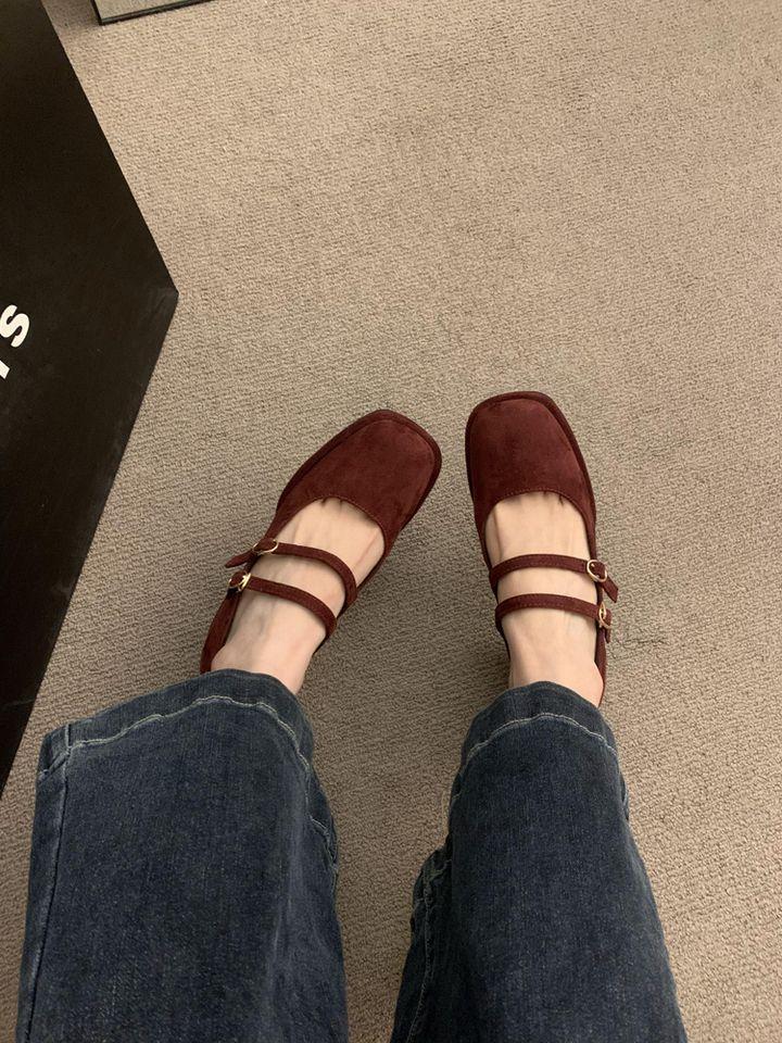 Zapatos Mary Jane Franceses Zapatos de Mujer 2025 Primavera y Otoño Nuevo Estilo Boca Baja Punta Cuadrada Retro Negro Gamuza Flats Zapatos Escotados