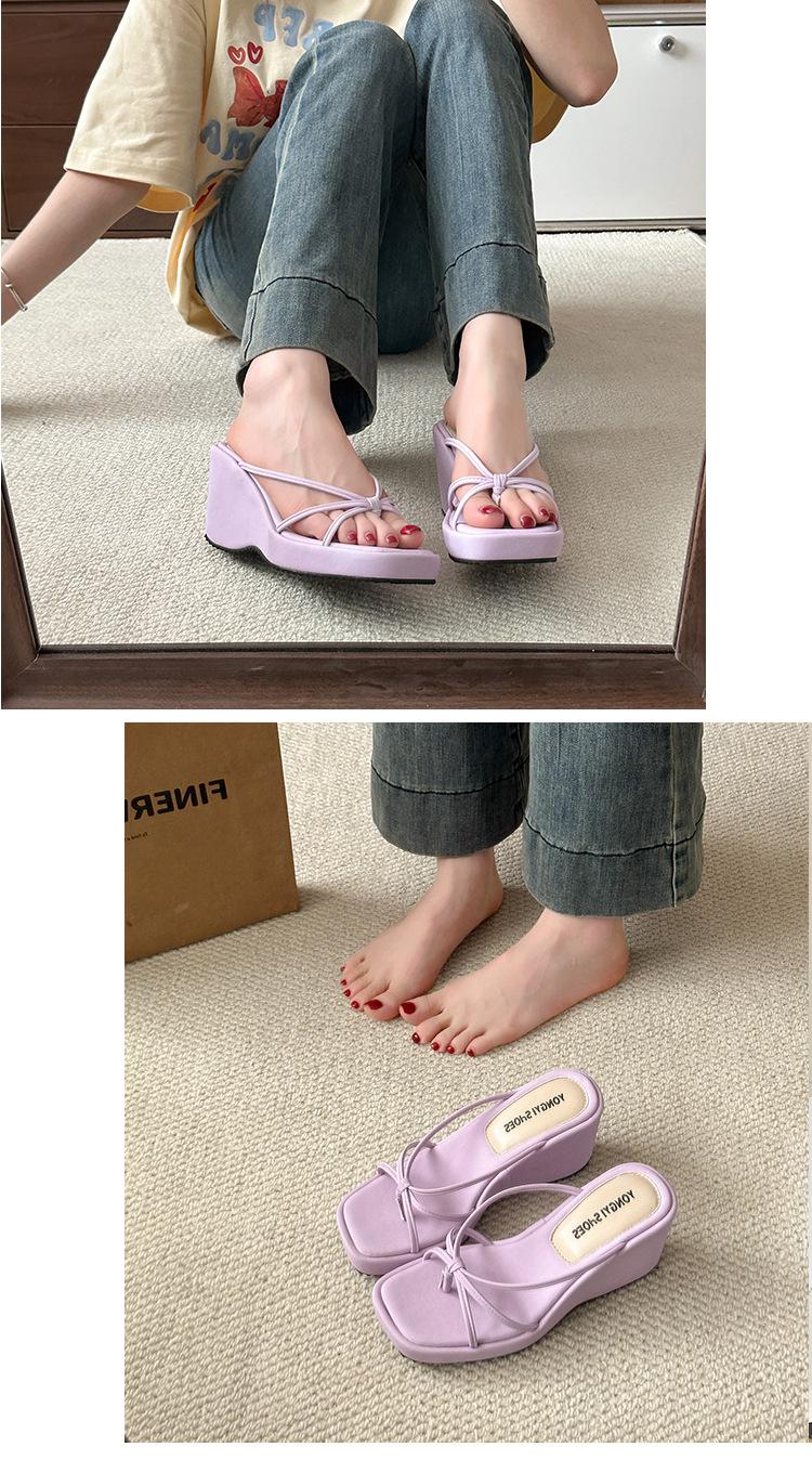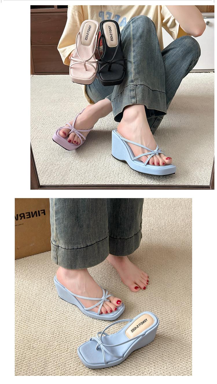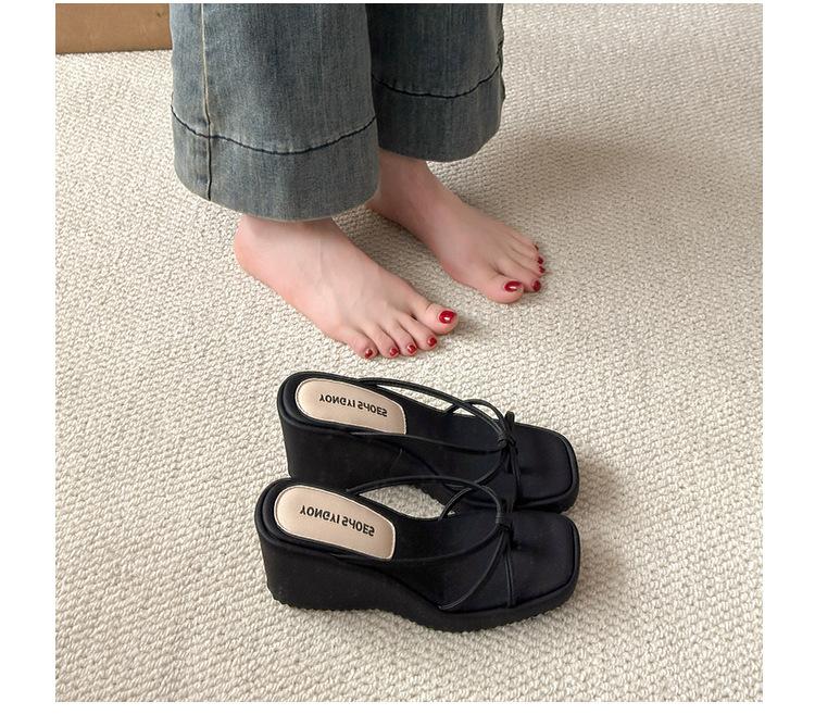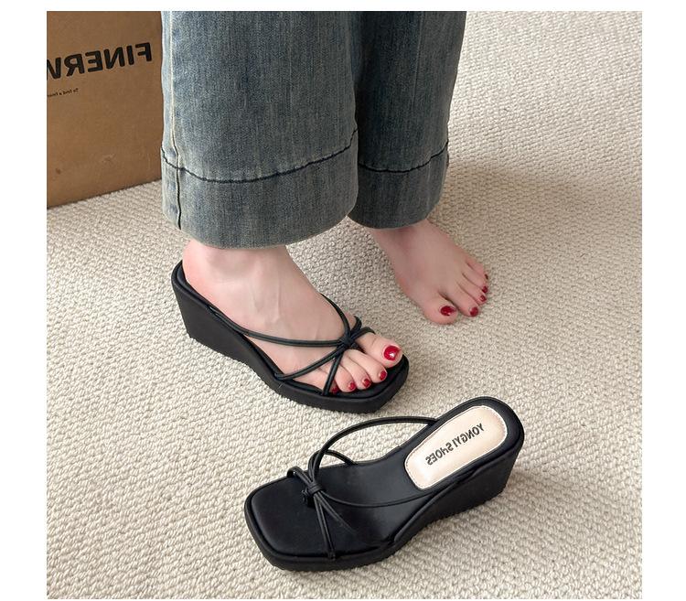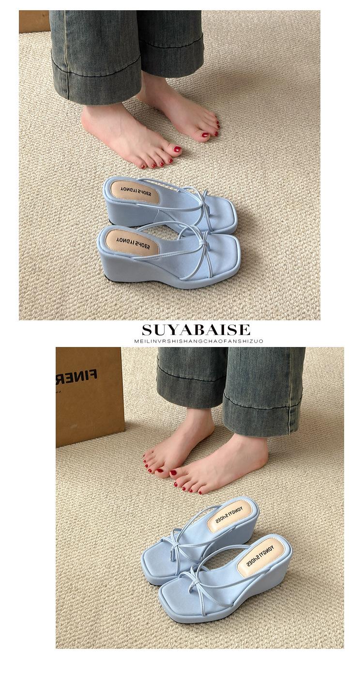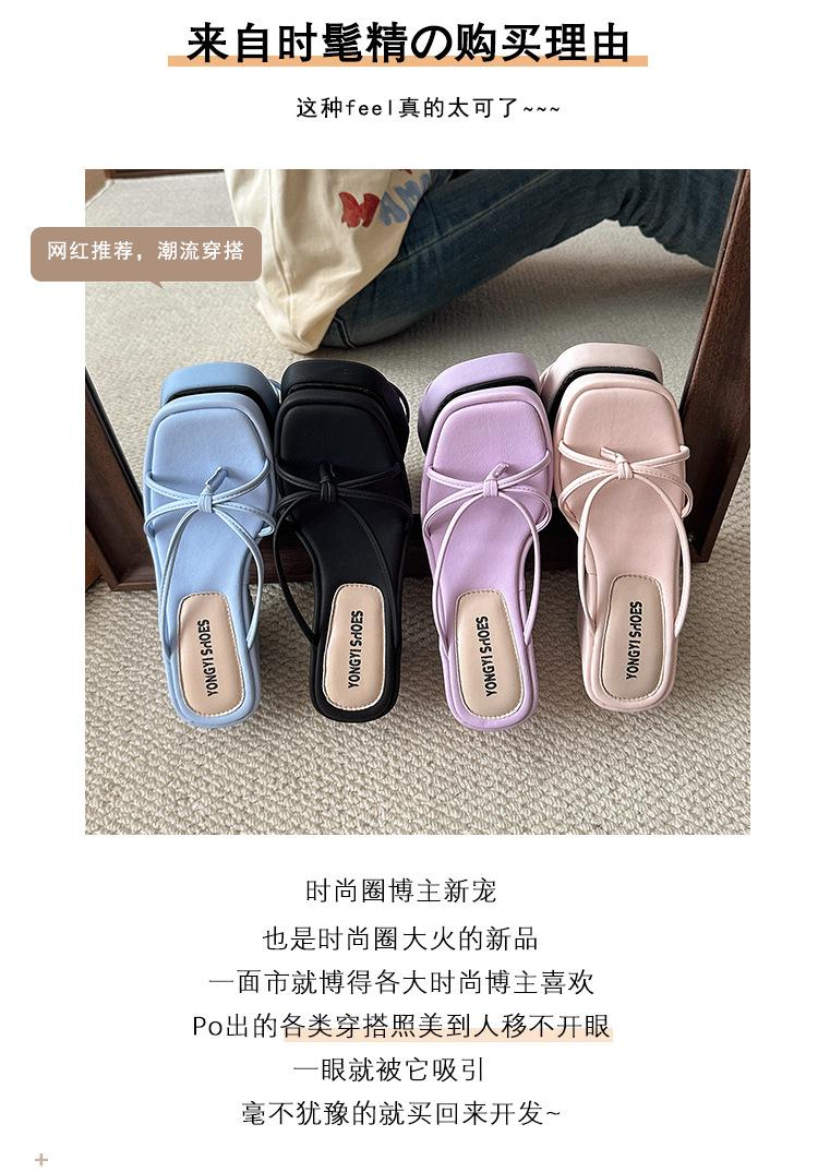 Pantuflas Casuales de Cuña Verano Diseño de Suela Plana Lazo Sandalias de Suela Gruesa Zapatos de Mujer Verano Ropa de Exterior Moda Combinable
