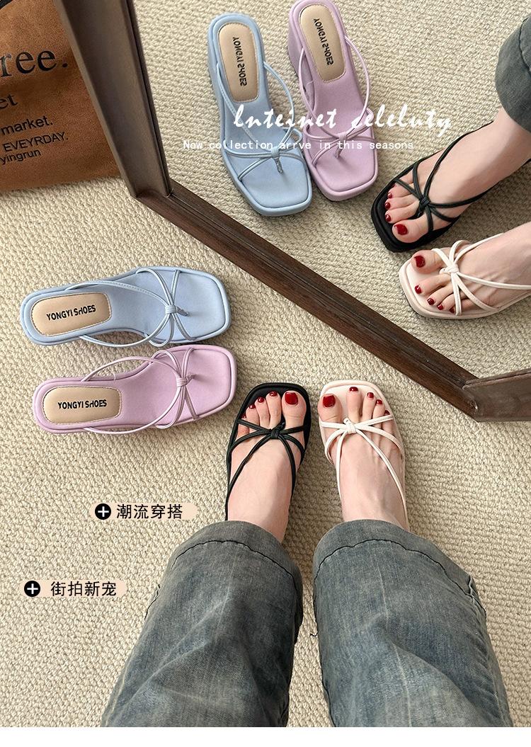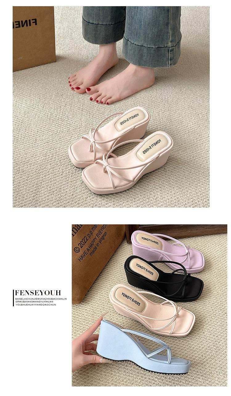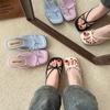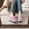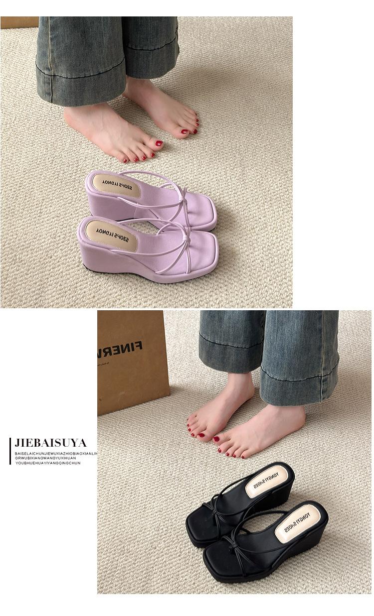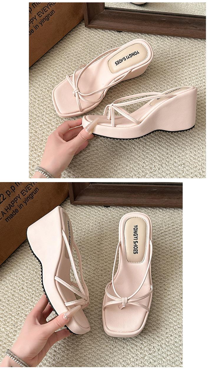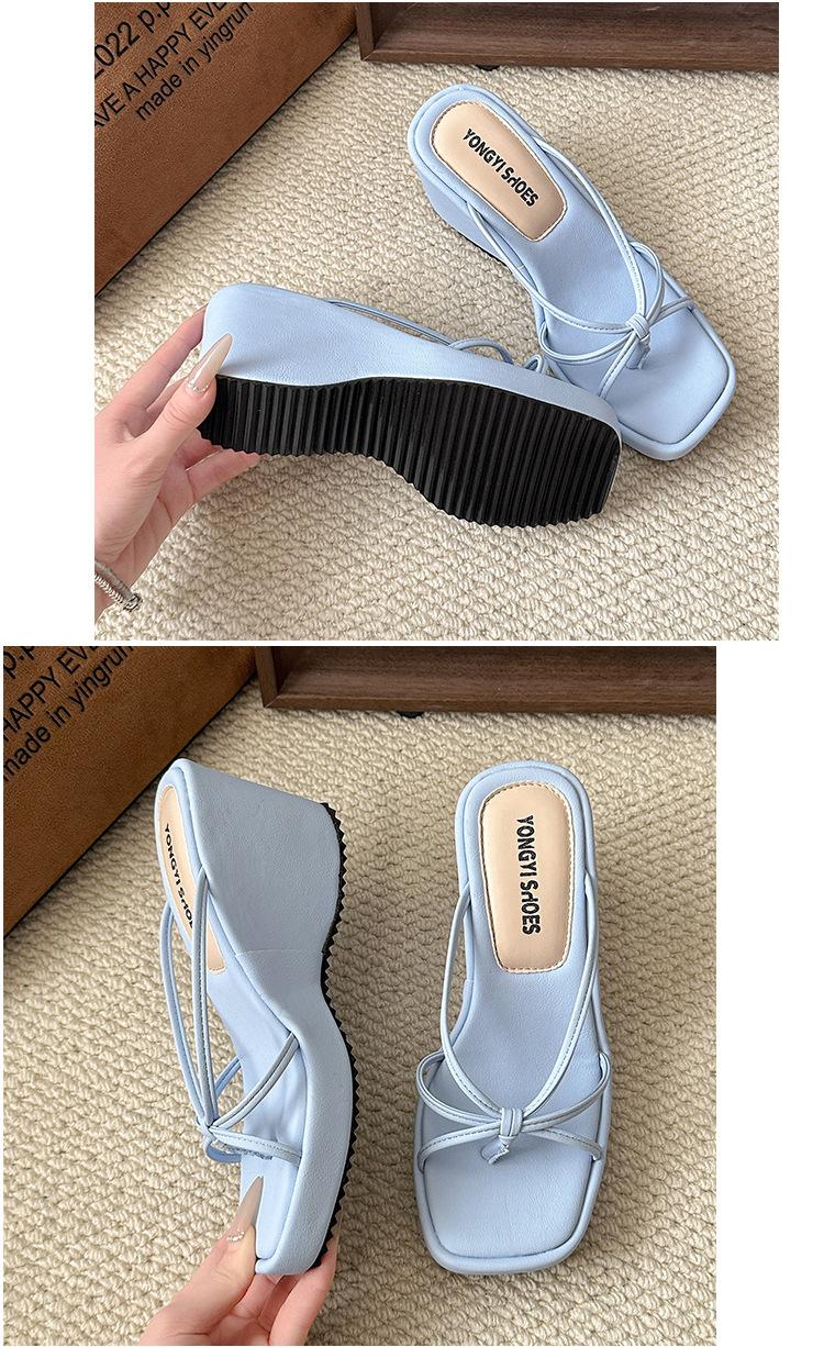 Pantuflas Casuales de Cuña Verano Diseño de Suela Plana Lazo Sandalias de Suela Gruesa Zapatos de Mujer Verano Ropa de Exterior Moda Combinable