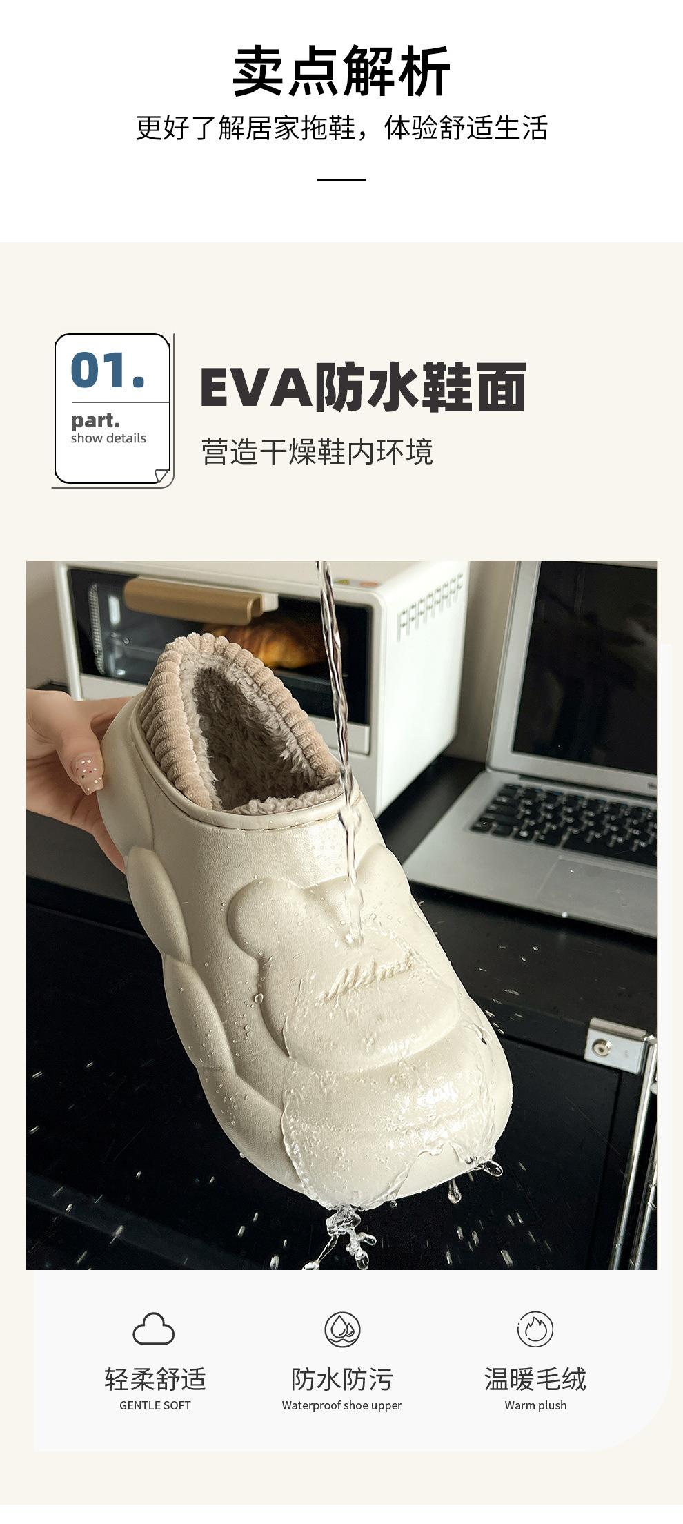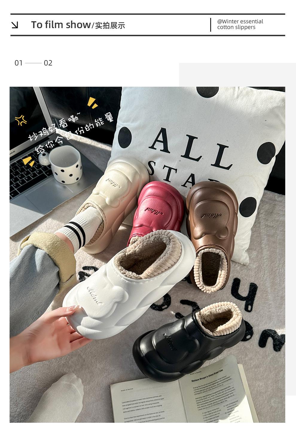 Pantuflas de algodón impermeables para mujer invierno nuevas con forro polar cálidas antideslizantes para interior hogar zapatos de algodón de suela gruesa para hombre al por mayor