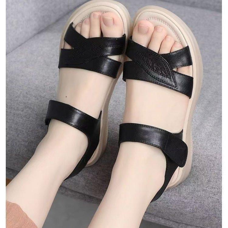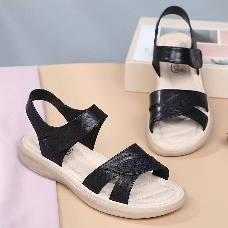 Zapatos de Mamá Verano Nuevas Sandalias Zapatos de Mujer Suela Suave Cómodos Zapatos Casuales de Moda para Mujeres de Mediana Edad Sandalias Velcro para Mujeres de Mediana Edad y Ancianas