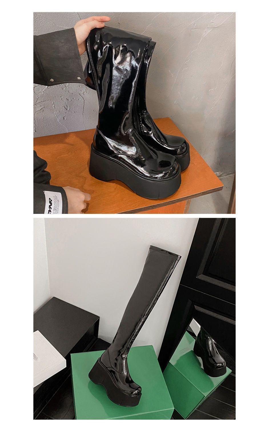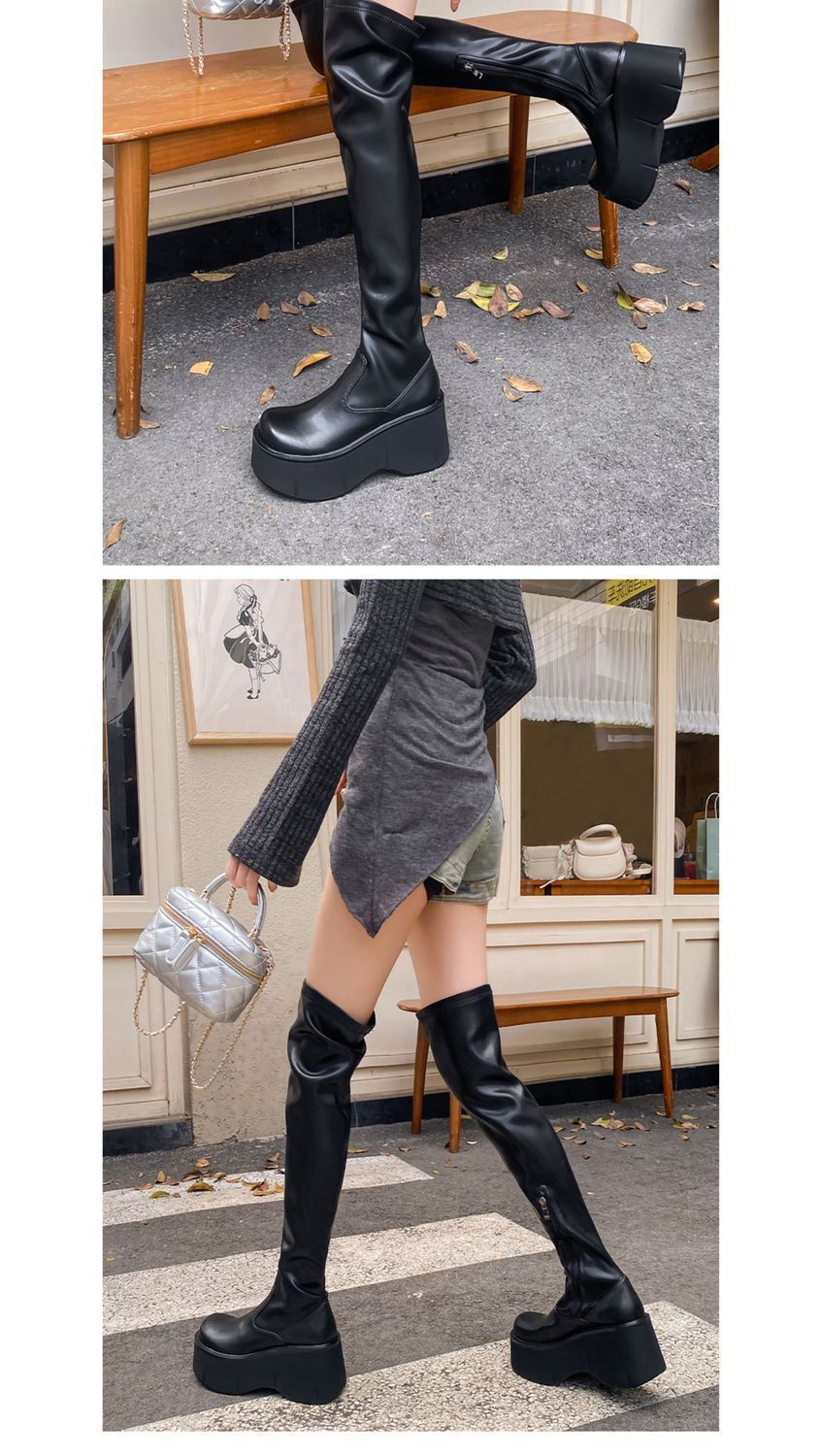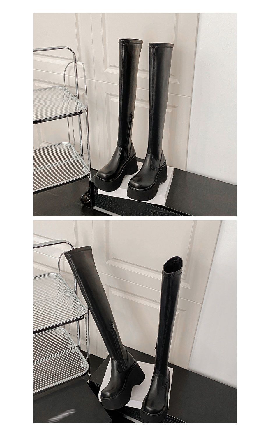 Botas Pequeñas de Tacón Super Alto Cuña Botas Elásticas 2025 Plataforma Suela Gruesa por Encima de la Rodilla Botas de Aspecto Adelgazante para Mujeres 9.5cm
