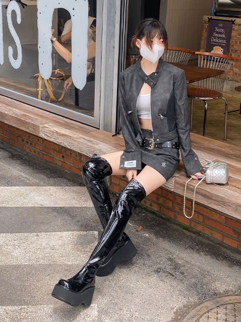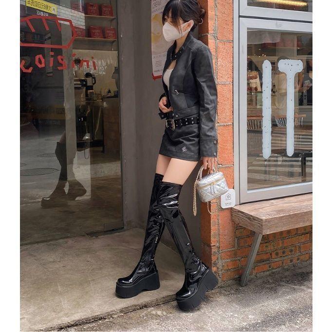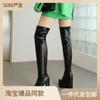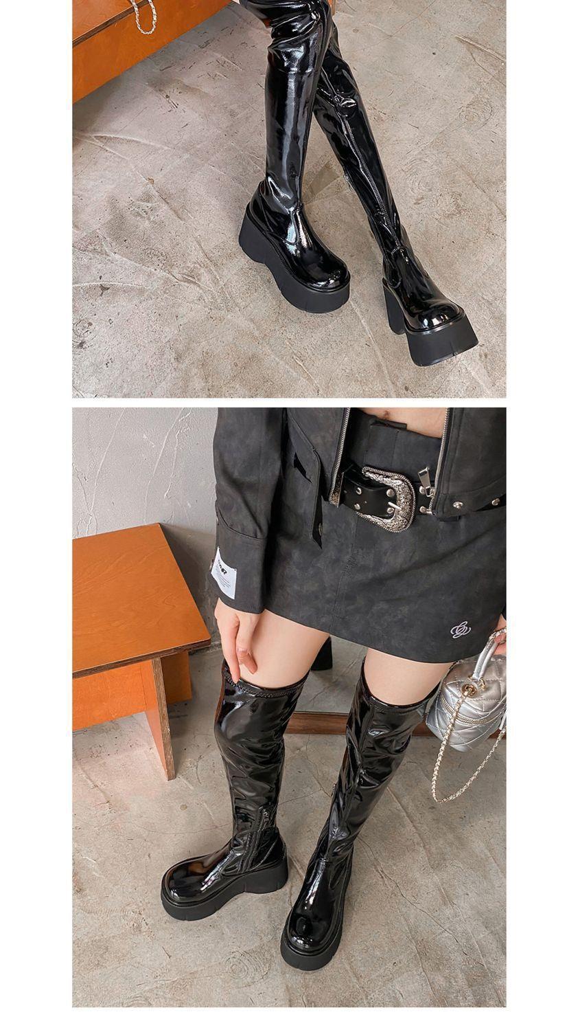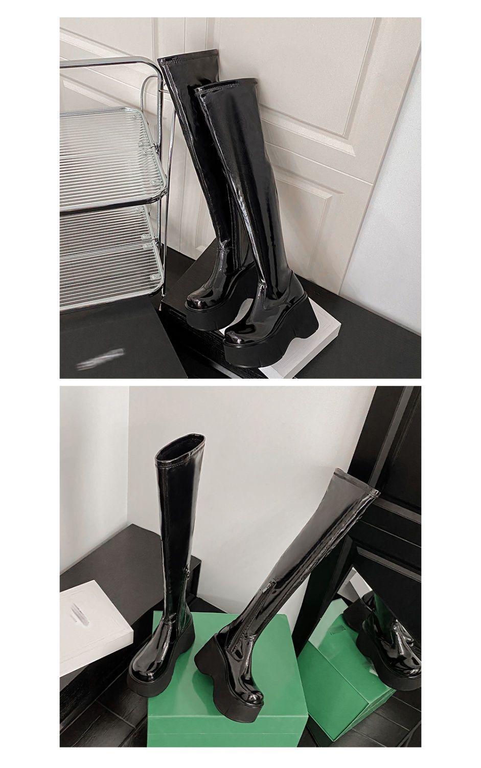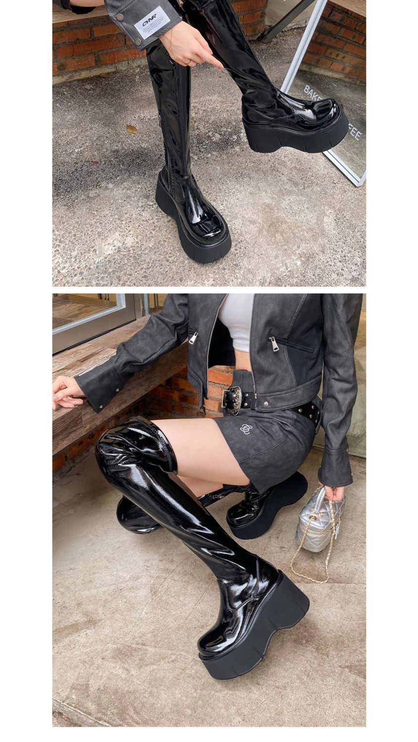 Botas Pequeñas de Tacón Super Alto Cuña Botas Elásticas 2025 Plataforma Suela Gruesa por Encima de la Rodilla Botas de Aspecto Adelgazante para Mujeres 9.5cm