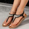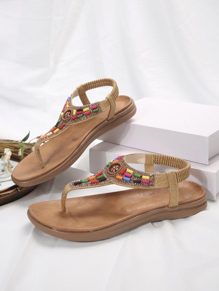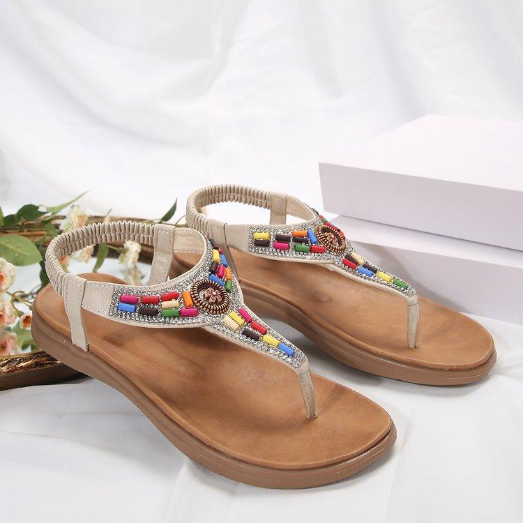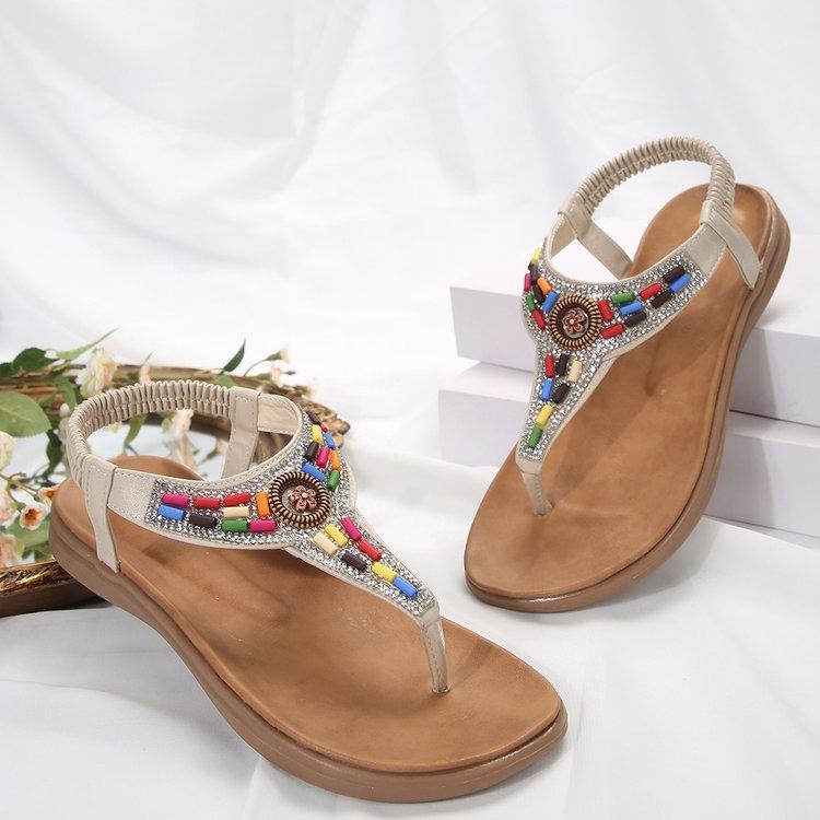 Sandalias de Mujer Nuevas Retro Casual Romanas Planas Antideslizantes Moda Cuentas Estilo Étnico Talla Grande Chanclas Zapatos de Playa