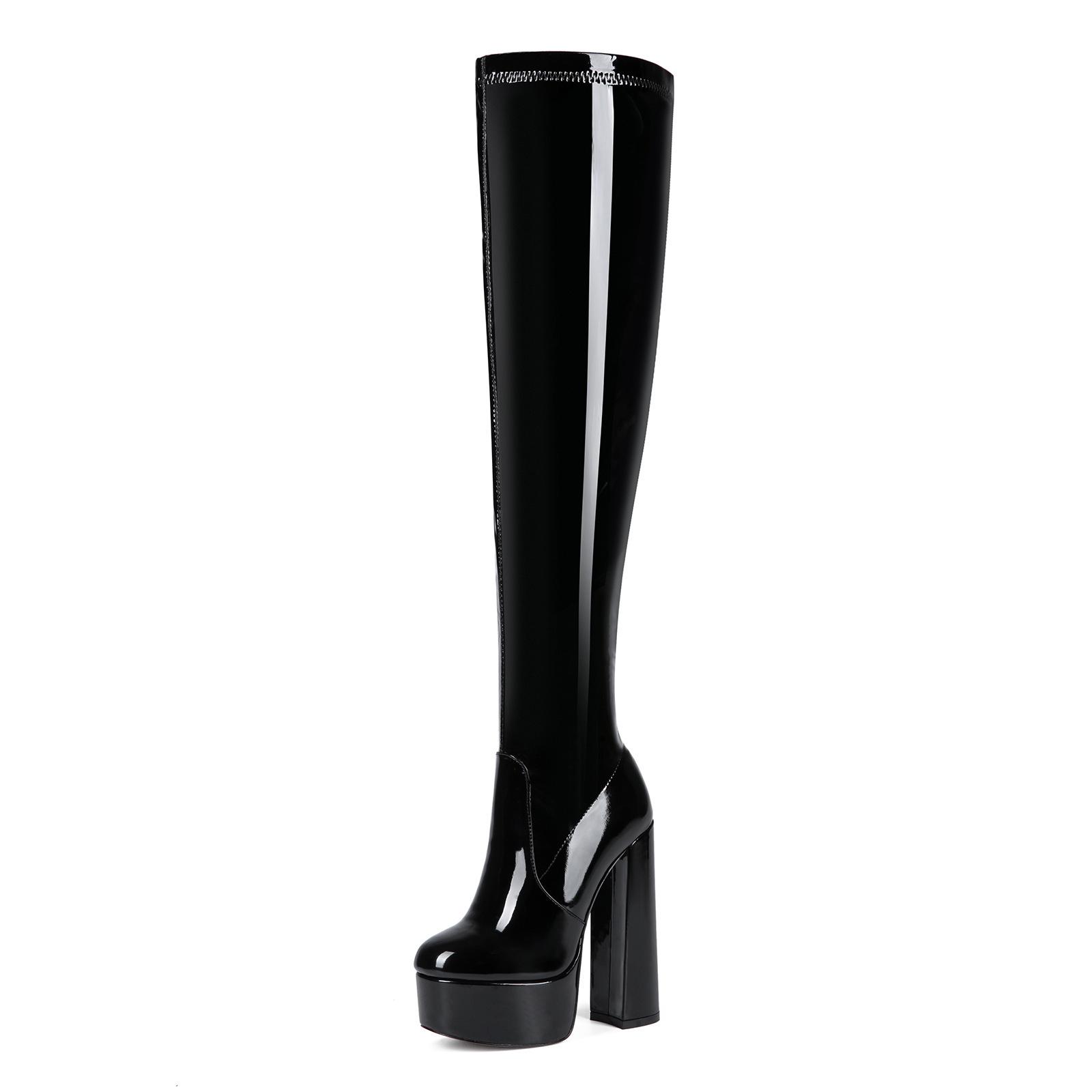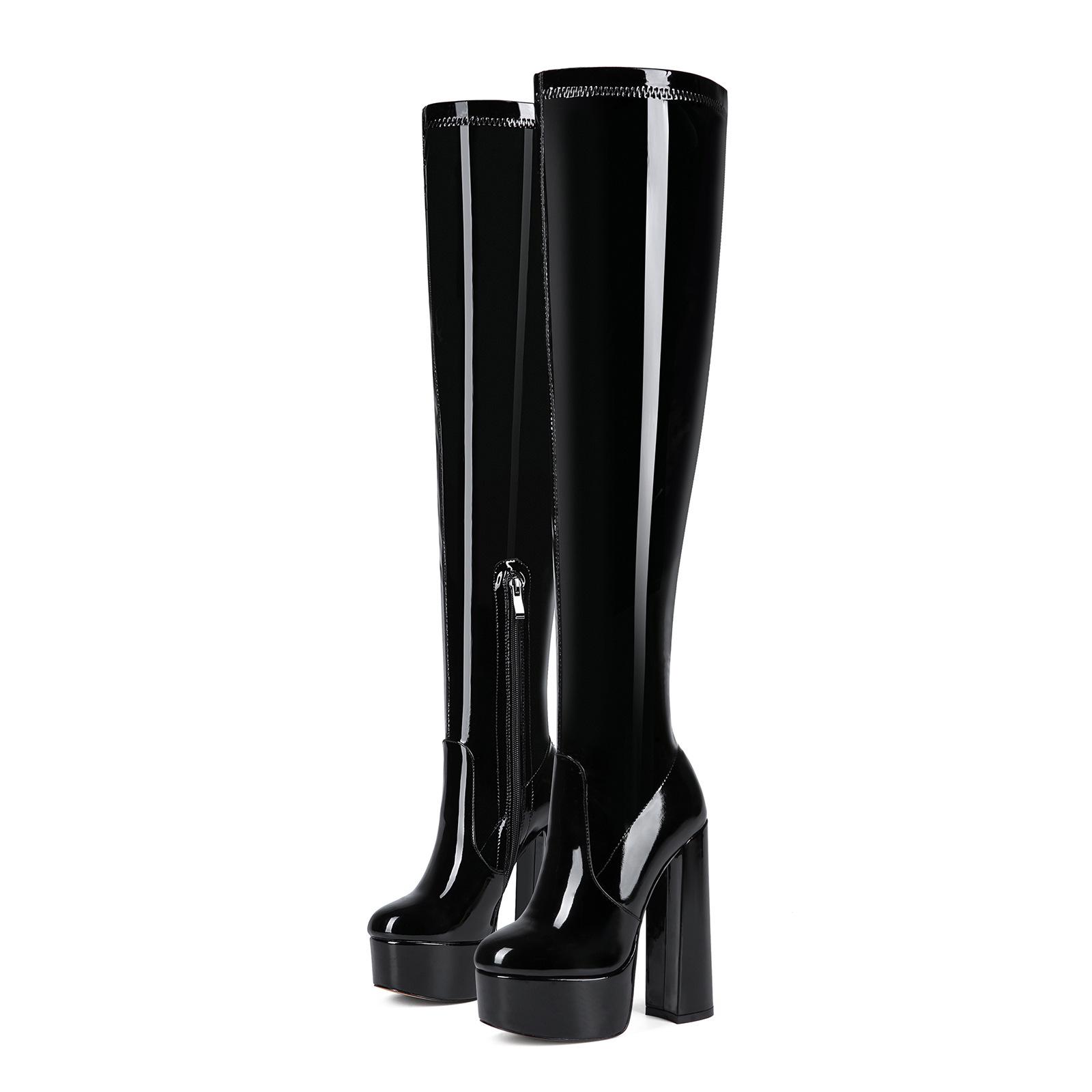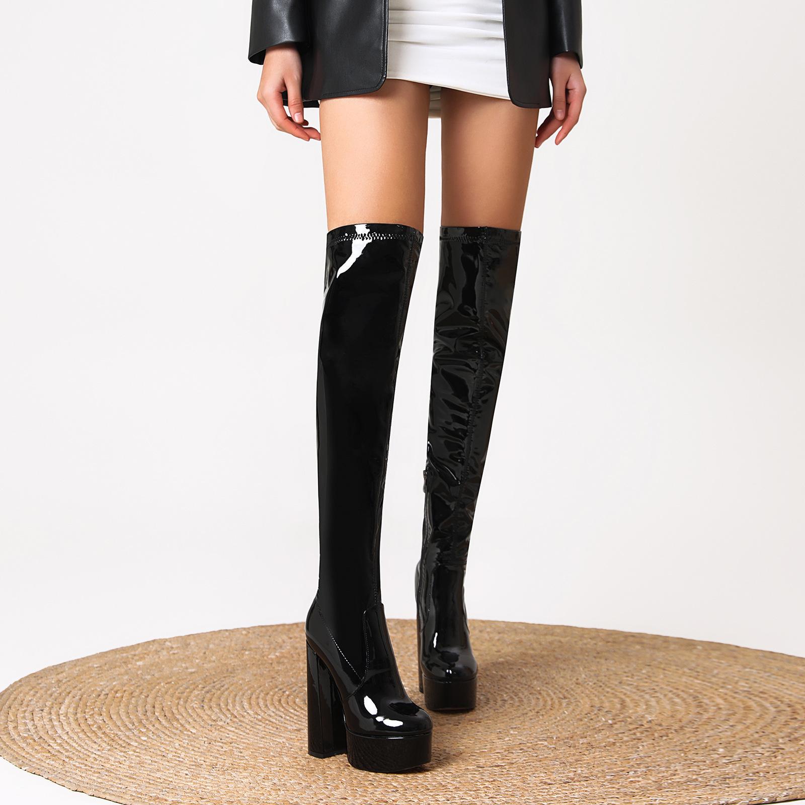 2025 Exportación Nuevas Botas Sexy de Pole Dance por Encima de la Rodilla Elásticas de Caballero Tacones Altos Gruesos Plataforma Impermeable Negras para Mujer Largas