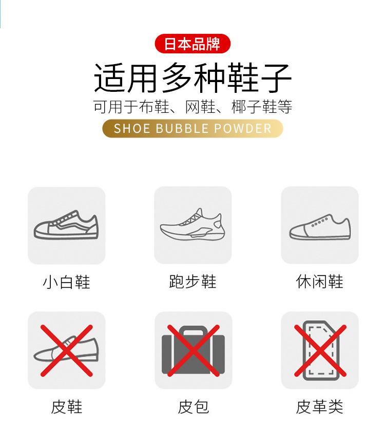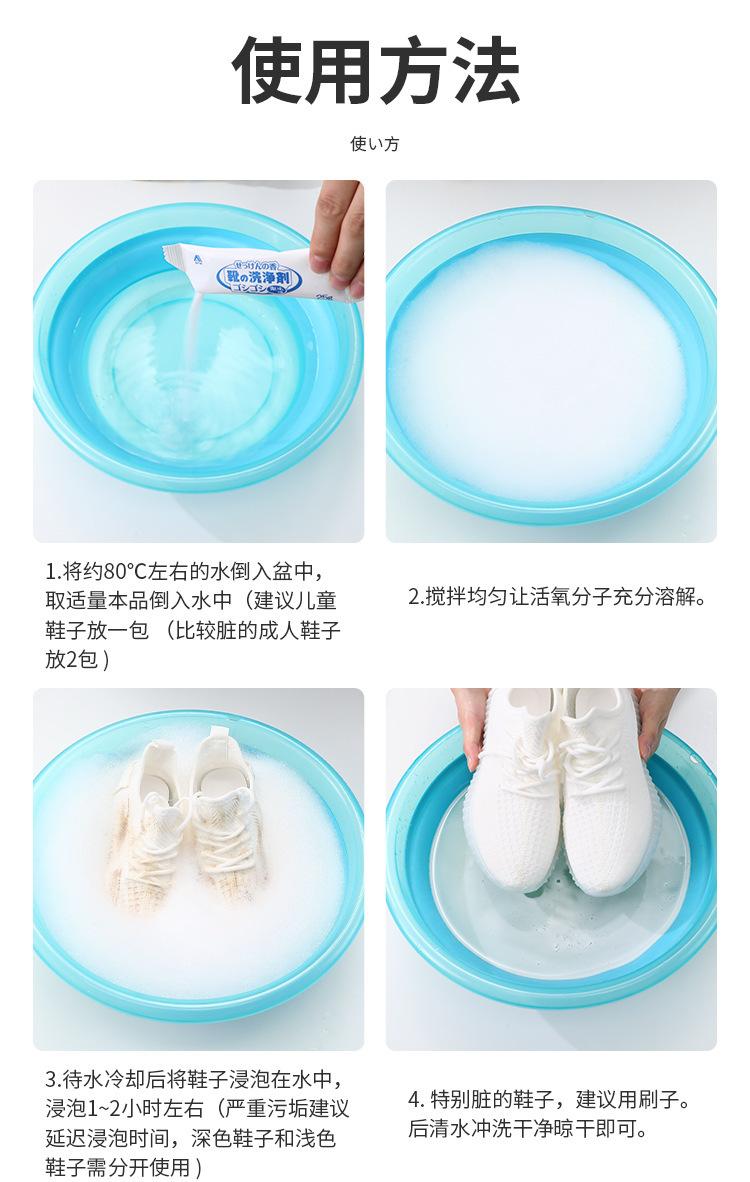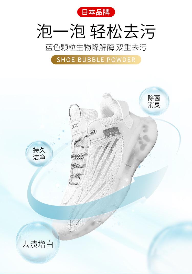 Zapatos japoneses polvo de burbujas zapatos blancos agente limpiador descontaminación amarillo desodorante ecológico cepillo de limpieza de oxígeno zapatos sal explosiva