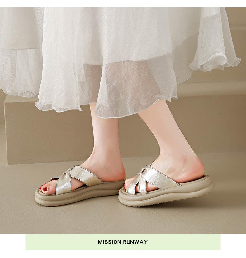 2025 Nuevas Pantuflas de Verano de Suela Gruesa para Aumentar la Altura para Mujer para Usar en Exteriores, Sandalias Versátiles de Estilo Hada para Playa Antideslizantes