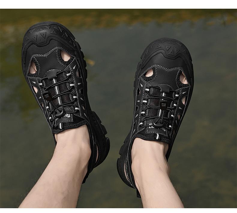 2025 Nuevas Sandalias Baotou de Verano para Hombre Transpirables Explosiones Transfronterizas Casual Talla Grande Zapatos de Playa Zapatos de Malla Hueca