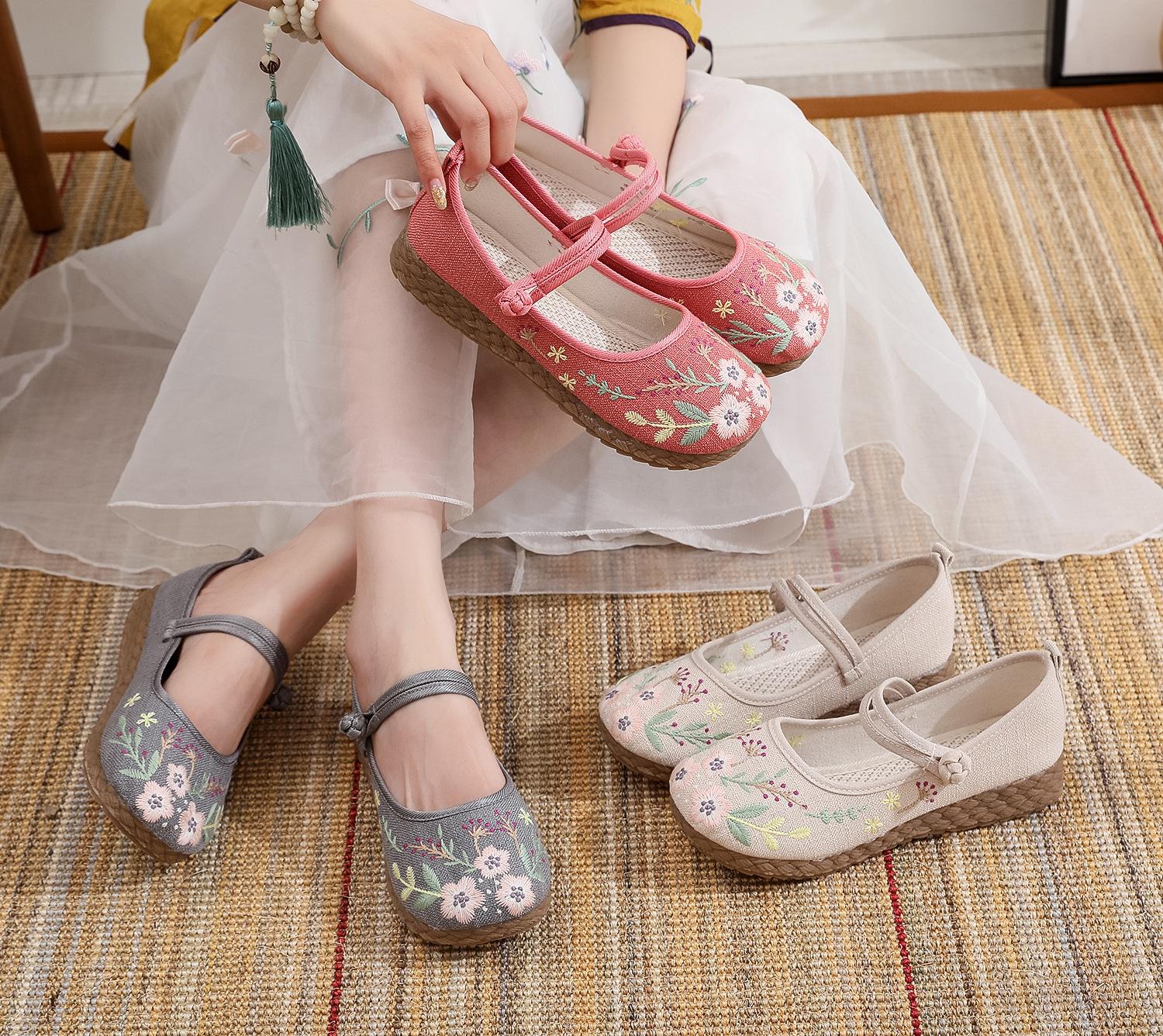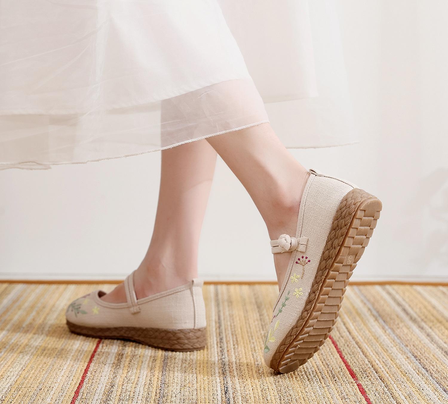 Zapatos de Tela Taiyi Viejo Beijing para Mujer, Zapatos de la Dinastía Han, Estilo Antiguo, Elegantes Zapatos Bordados de Estilo Étnico, Flats Cómodos, Zapatos de Madre