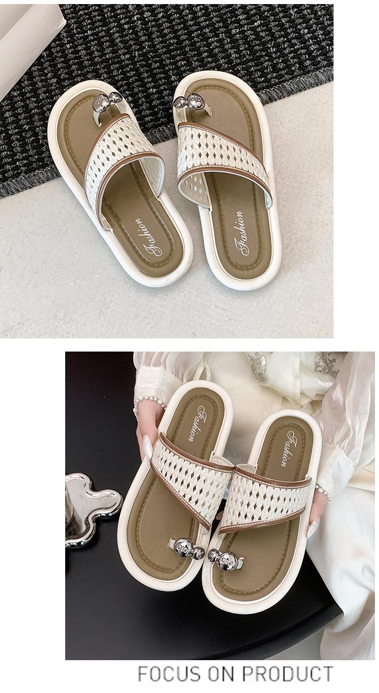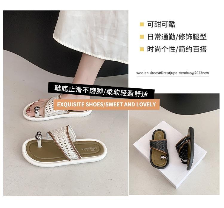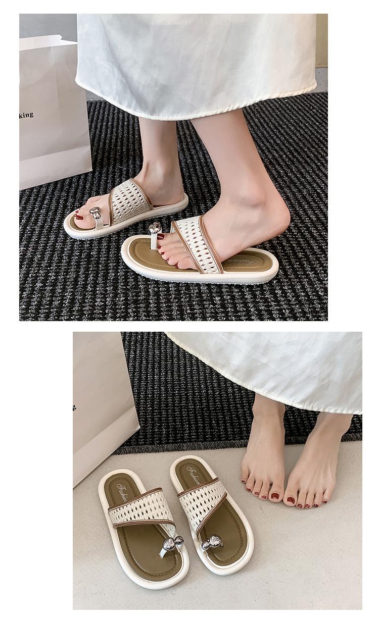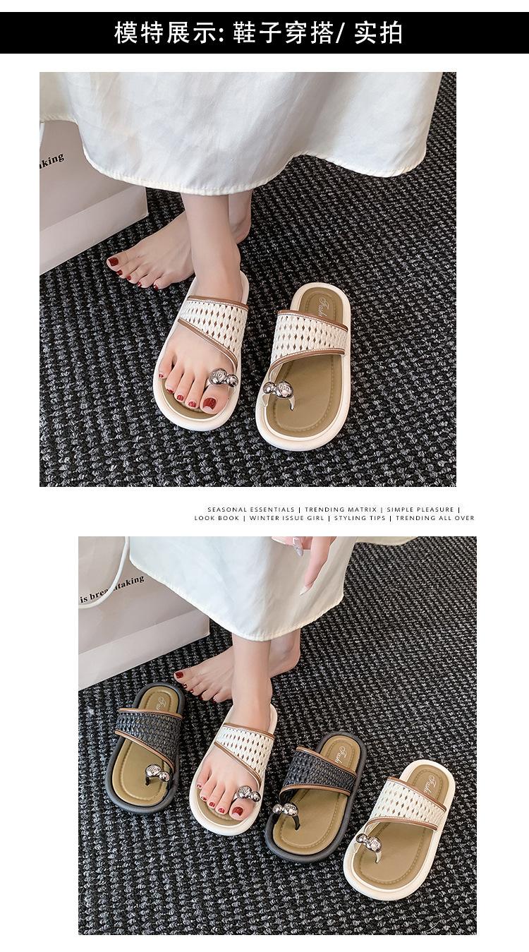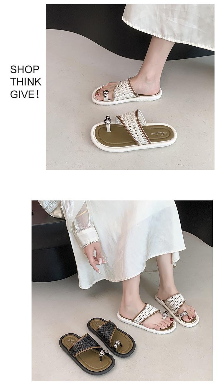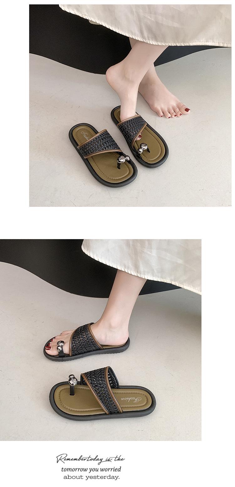 Hermosas Pantuflas de Estilo Francés para Mujer Verano para Exterior 2025 Nuevo Estilo Vacacional Pantuflas Planas Sandalias Tejidas para la Playa