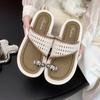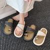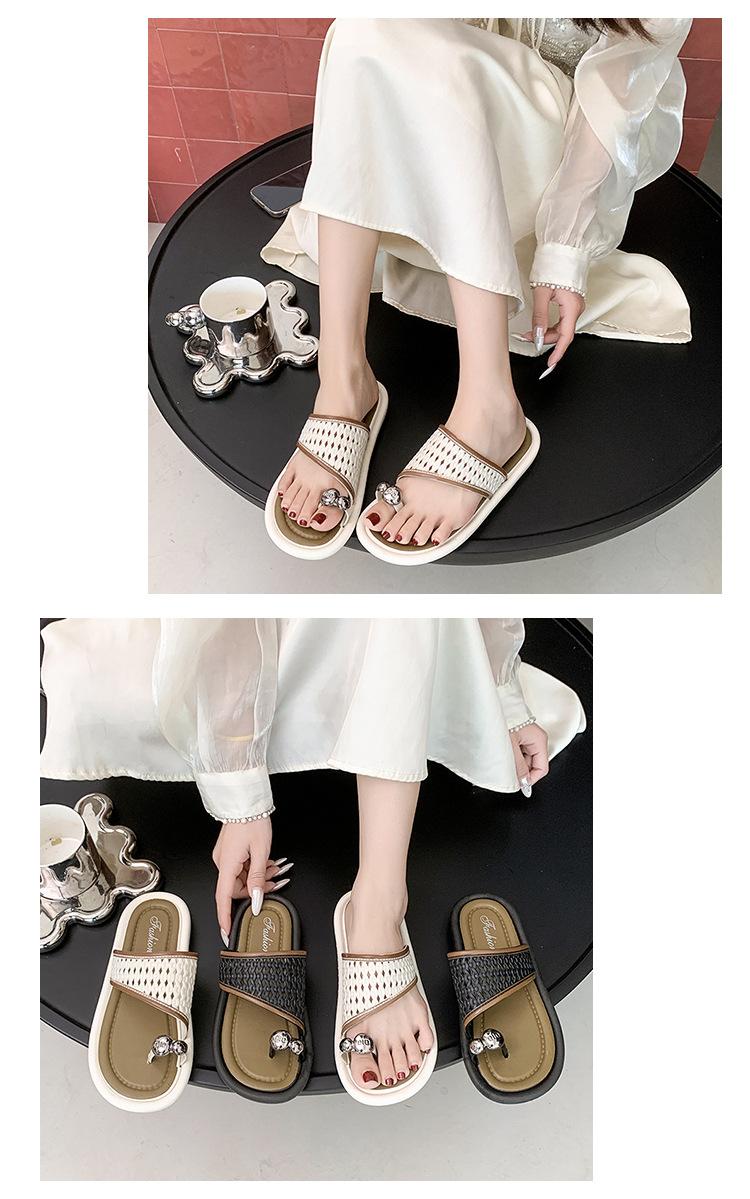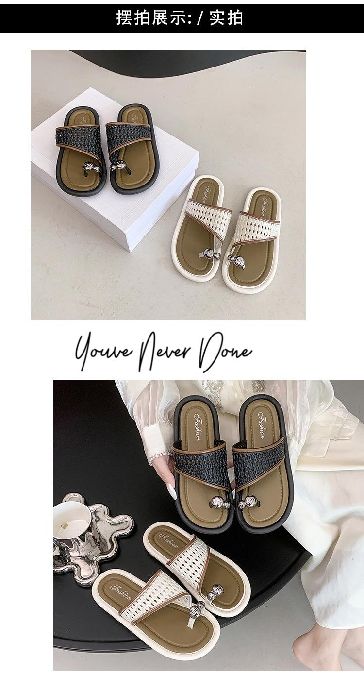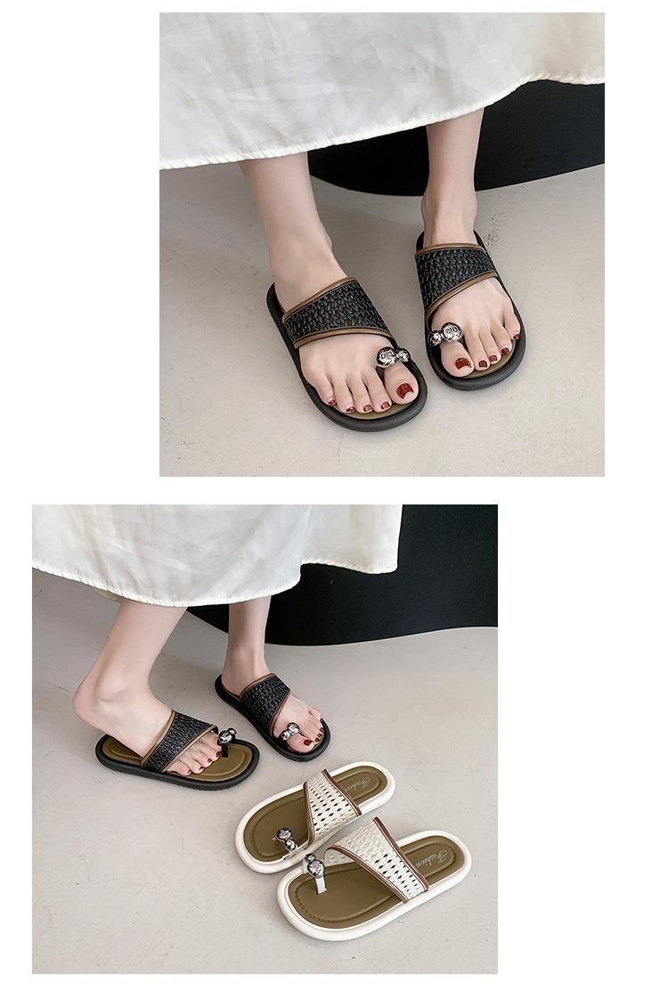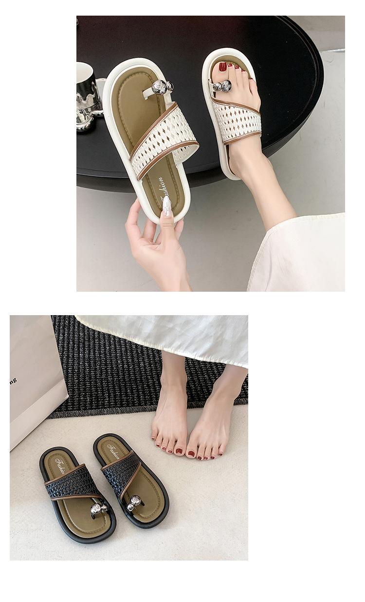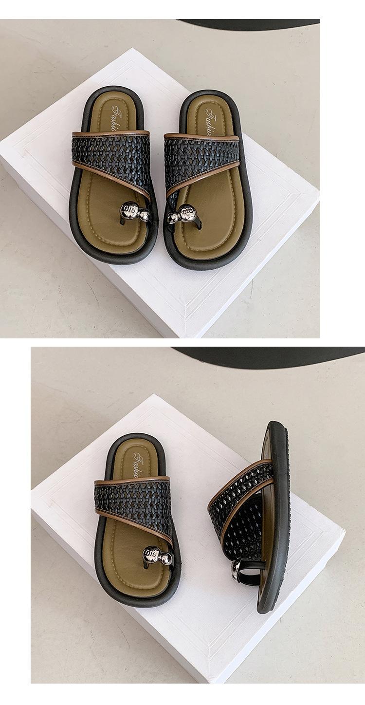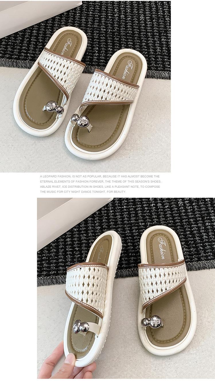 Hermosas Pantuflas de Estilo Francés para Mujer Verano para Exterior 2025 Nuevo Estilo Vacacional Pantuflas Planas Sandalias Tejidas para la Playa