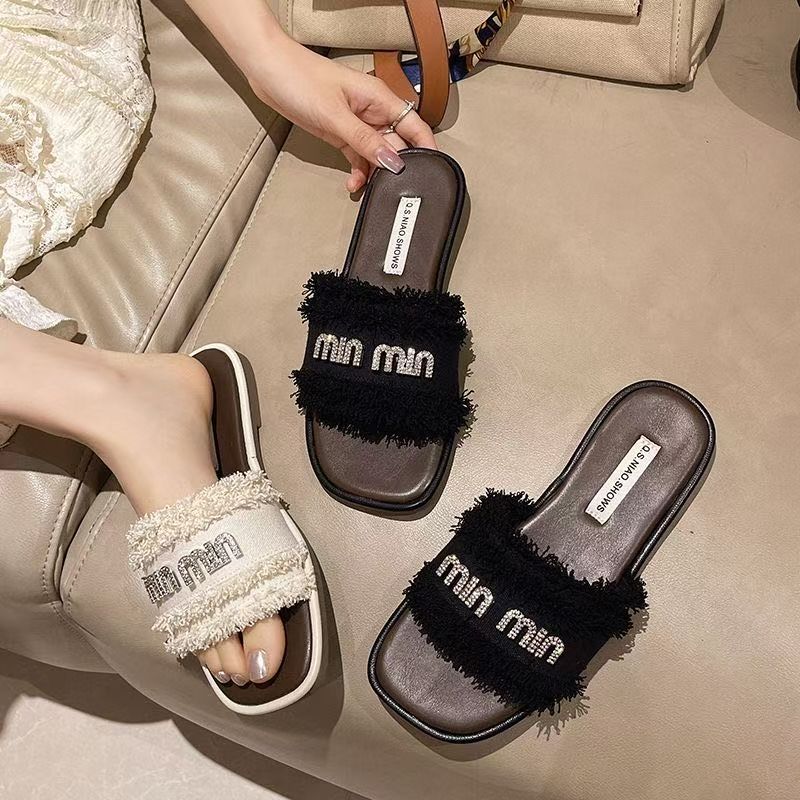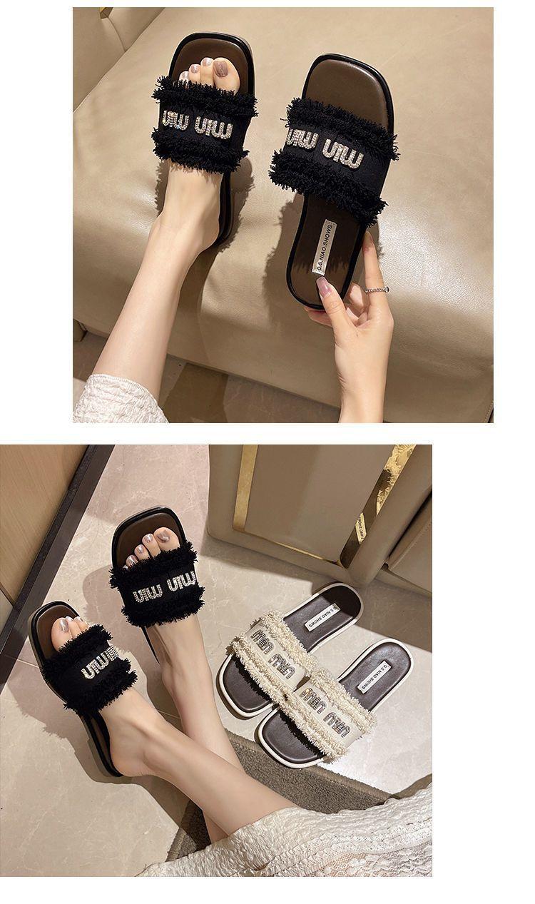 Zapatillas Versátiles de Moda Estilo Chanel para Mujer, Sandalias Planas de Playa con Pedrería de Tendencia Verano 2025