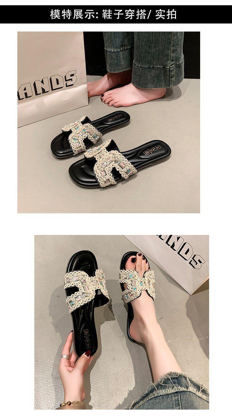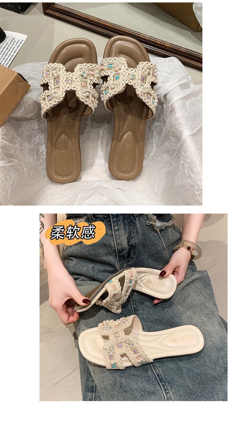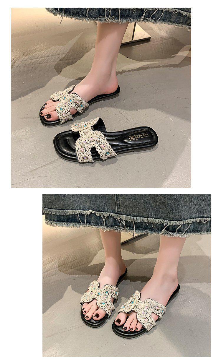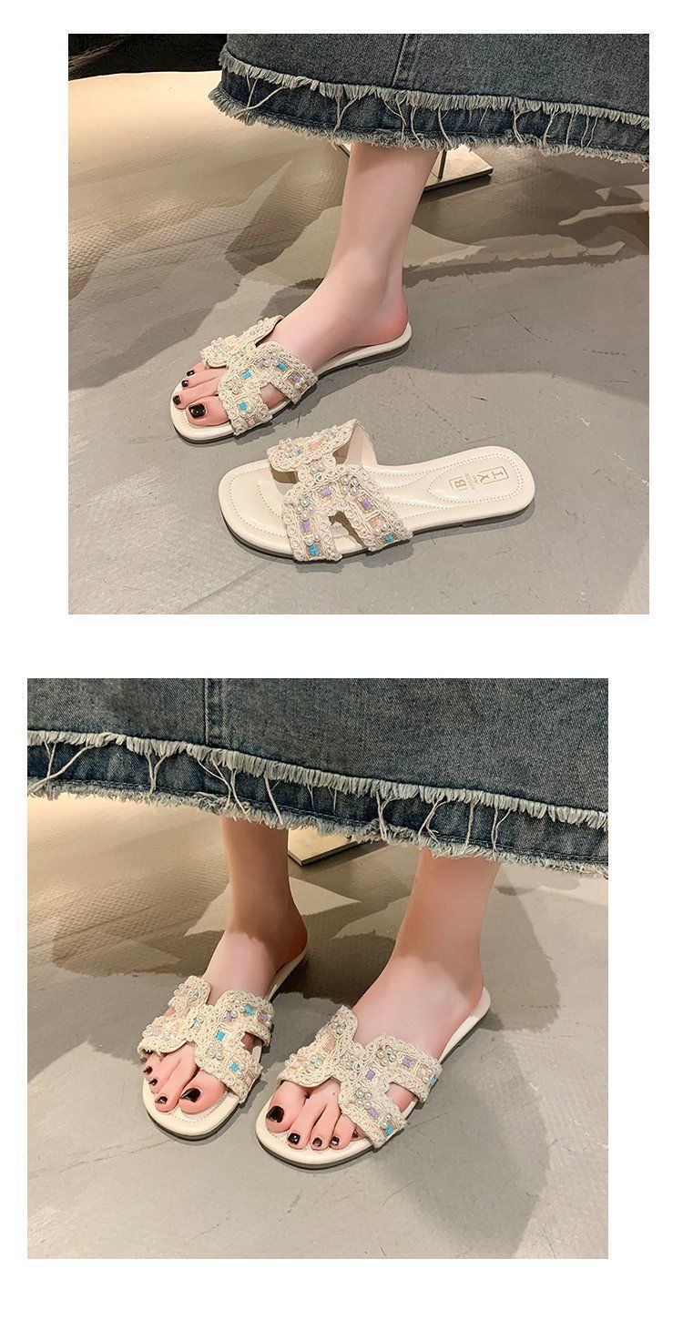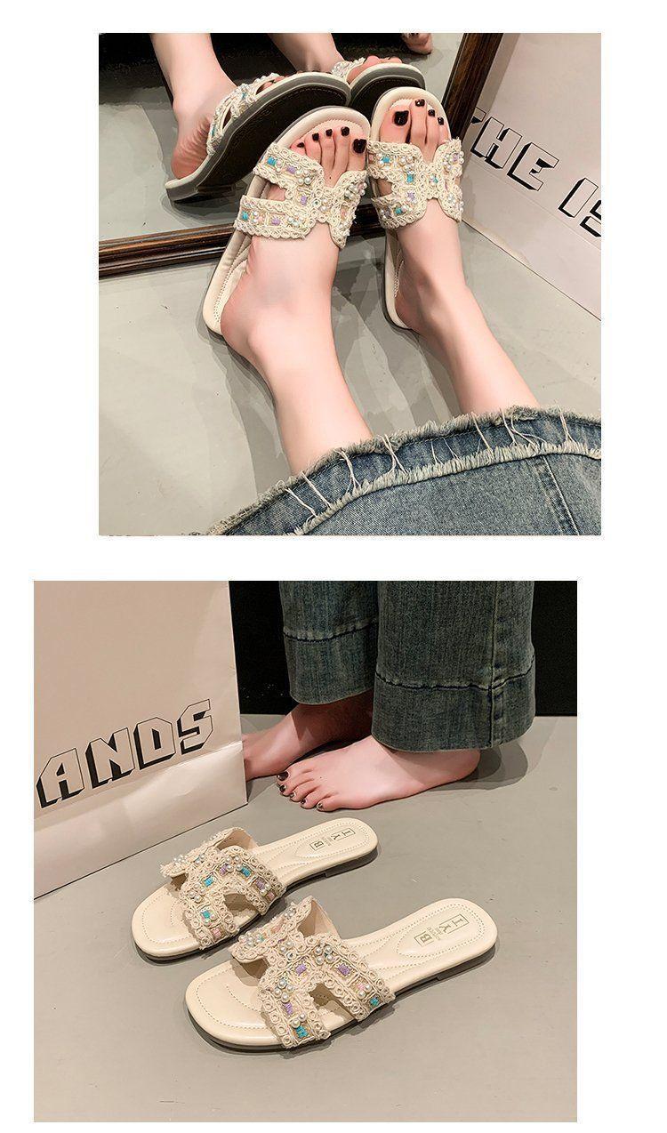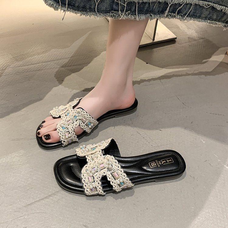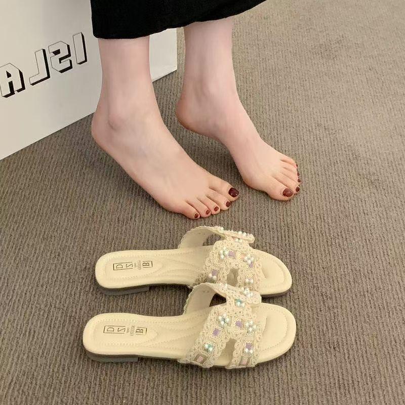 Perla Francesa Ropa Exterior de Verano para Mujer Sandalias de Playa 2025 Nuevo Estilo de Hada Moda Zapatillas Planas