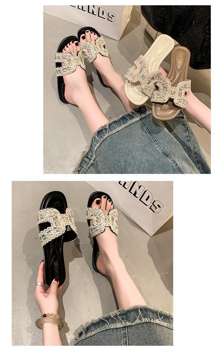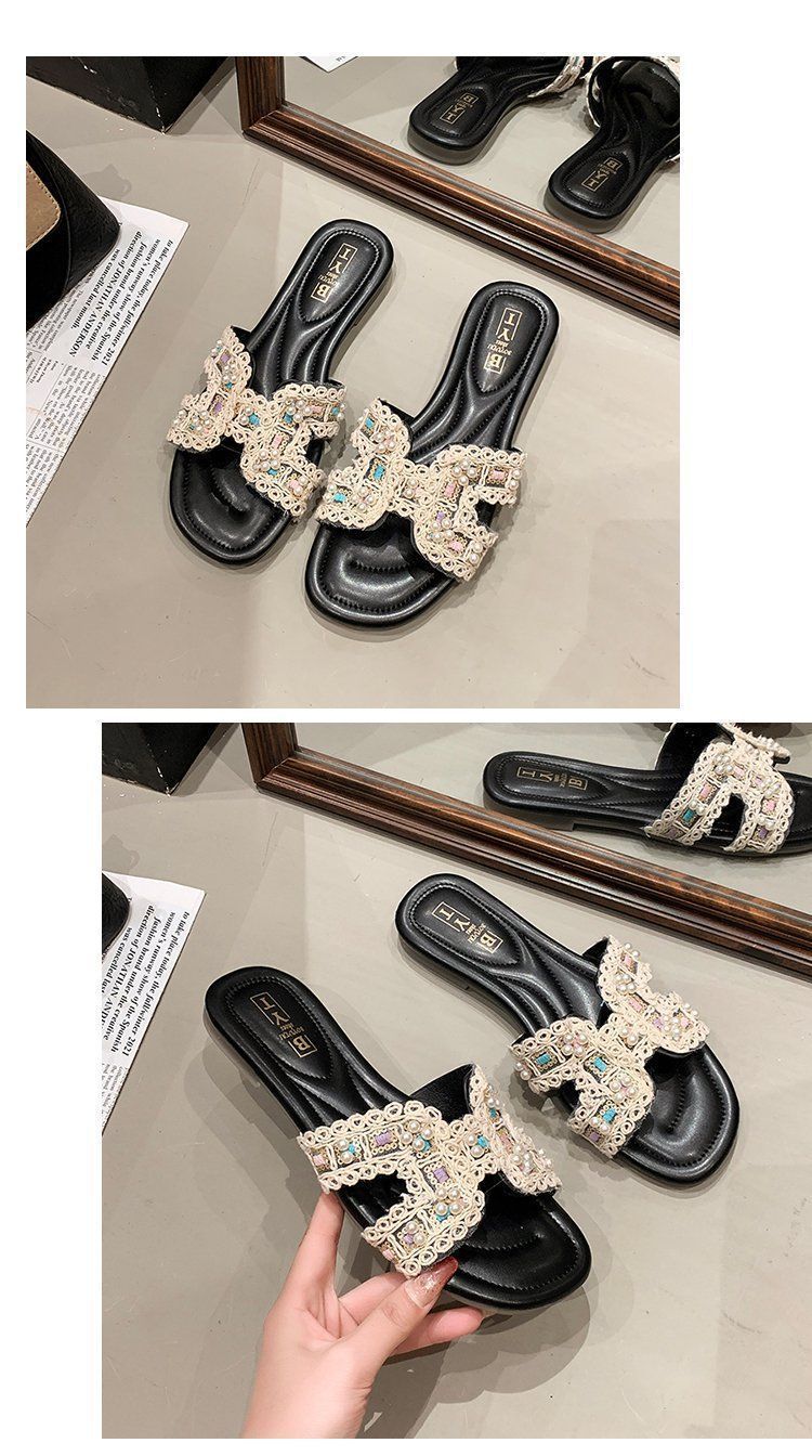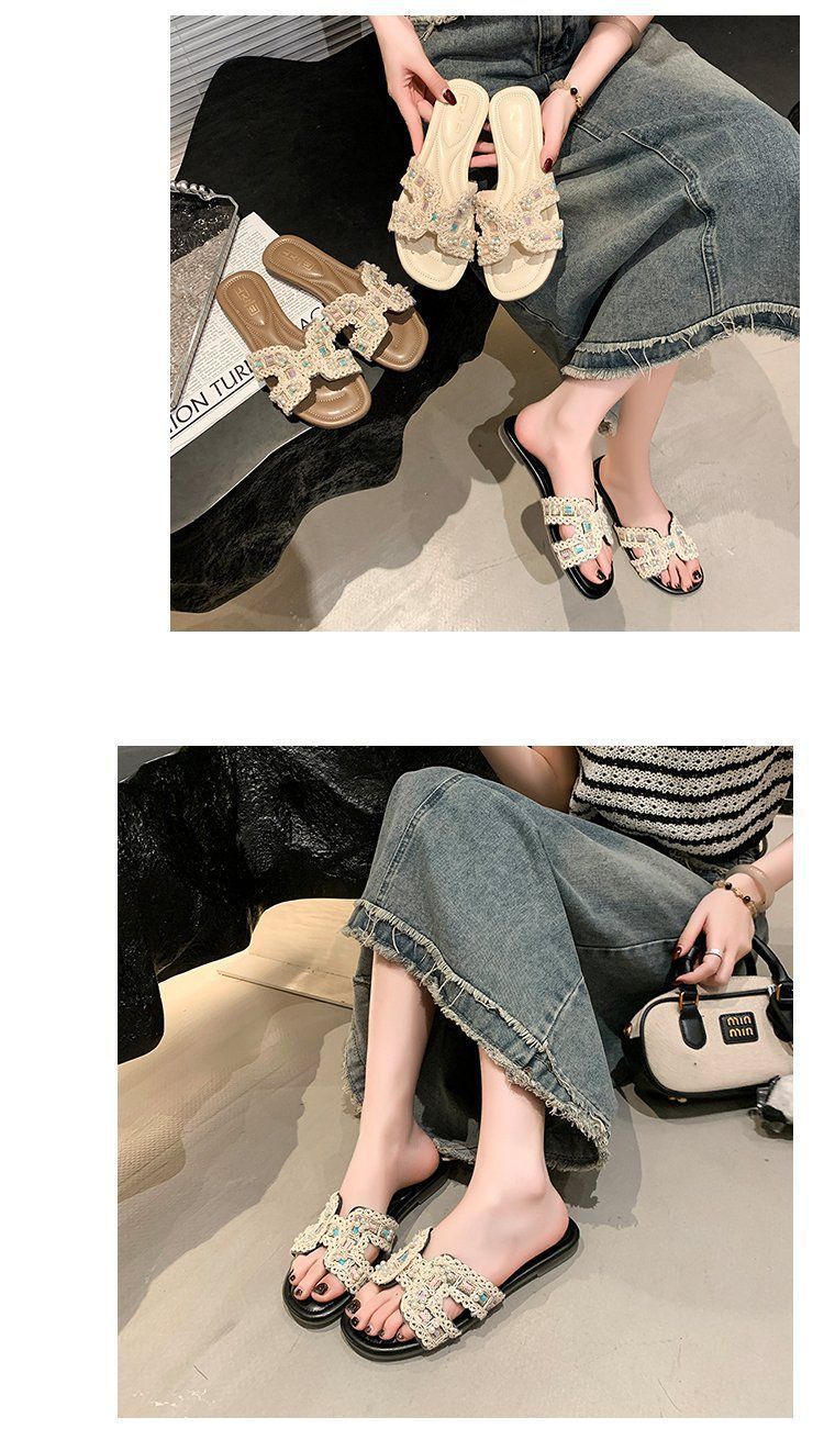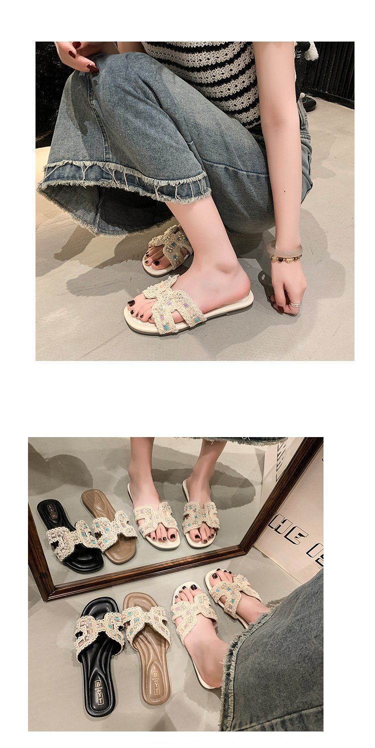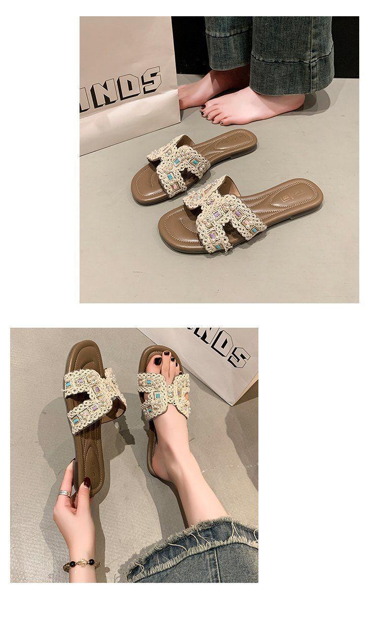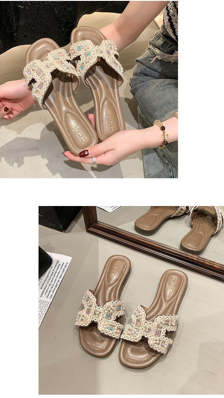 Perla Francesa Ropa Exterior de Verano para Mujer Sandalias de Playa 2025 Nuevo Estilo de Hada Moda Zapatillas Planas