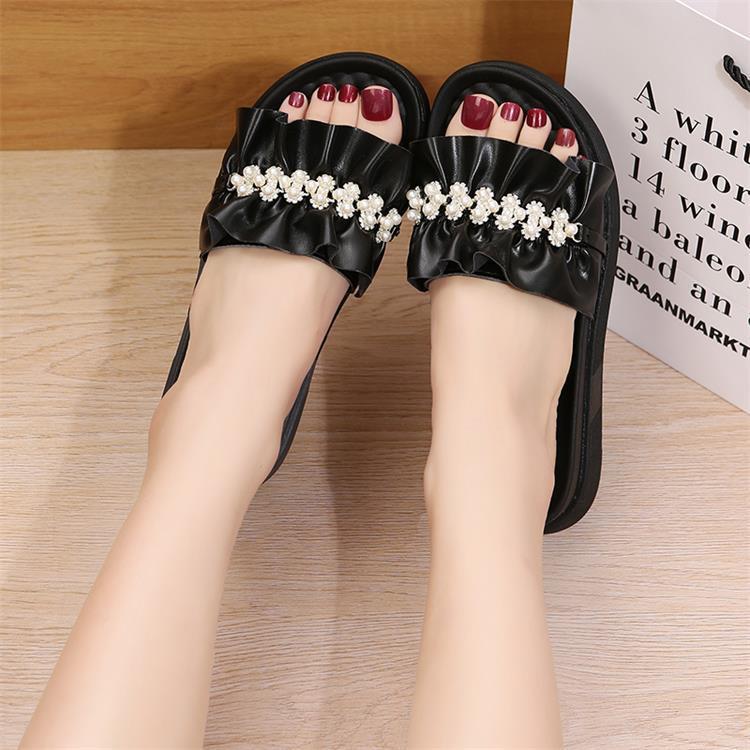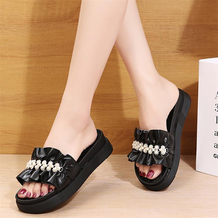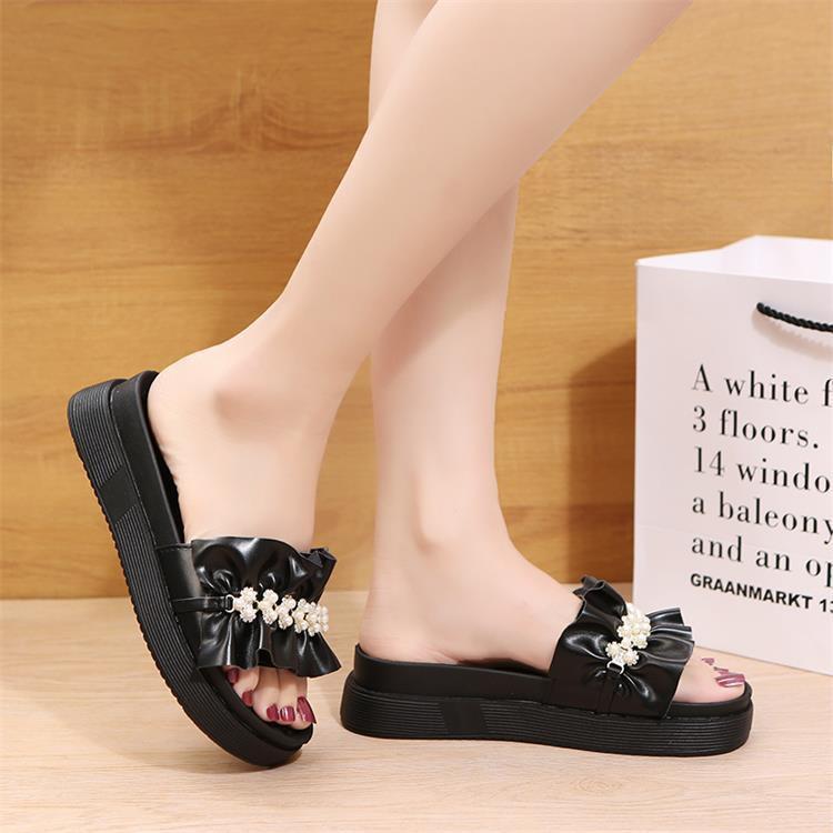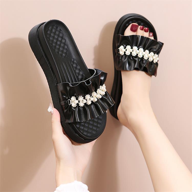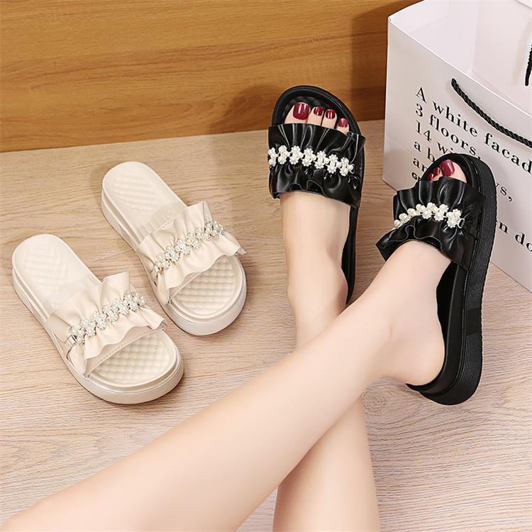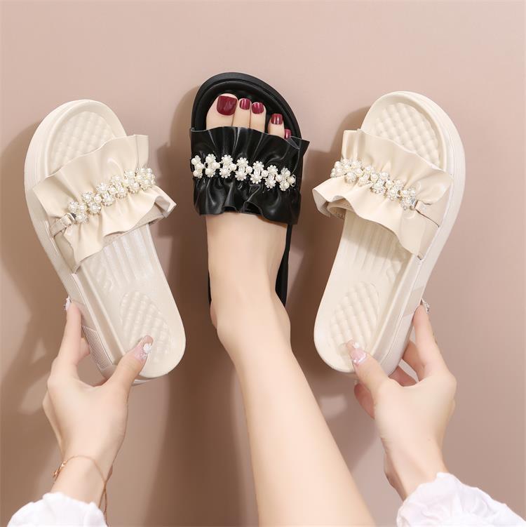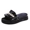 Pantuflas de Perlas para Mujer 2025 Verano Suela Gruesa para Exterior Celebridad de Internet Casual Ins Suela Gruesa Antideslizante Pantuflas de Playa