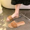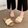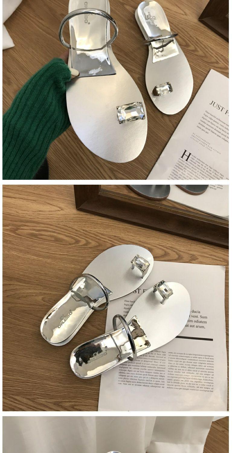 Zapatillas de Estrás con Huevo de Paloma para Mujer Verano para Exterior 2023 Verano Nuevo Estilo Plata Flats de una Línea Sandalias de Dedo