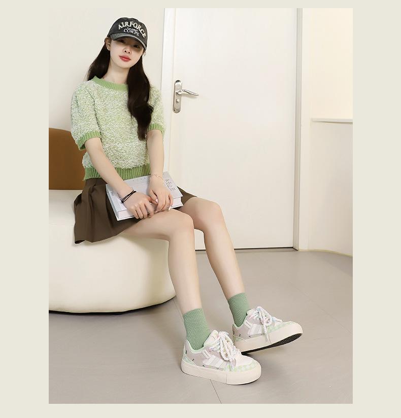 Zapatos Blancos Universales de Suela Gruesa para Mujer 2025 Verano Nuevo Estilo Fresco Estilo Ins Malla Transpirable Nicho Tenis Casuales