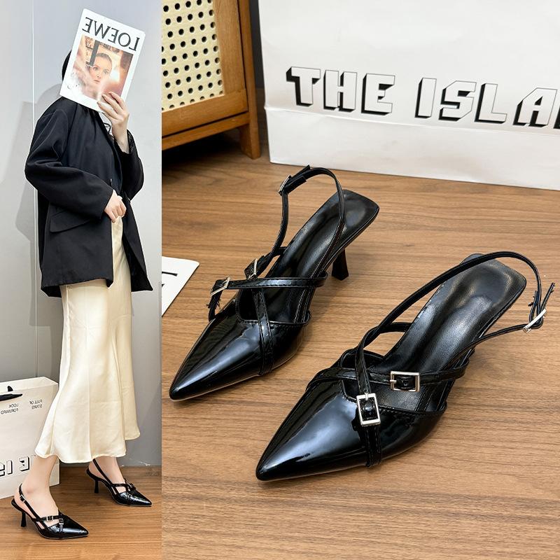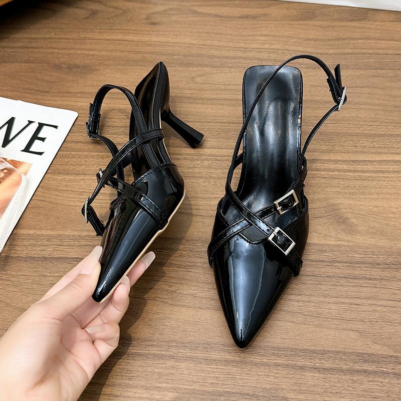 Tacones Altos de Aguja Estilo Francés de Punta para Mujer 2025 Verano Nuevo Diseño Nicho Sandalias de Punta Zapatos Planos