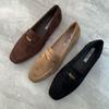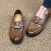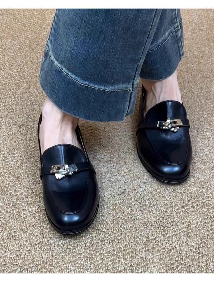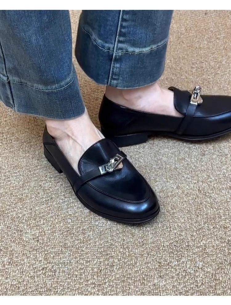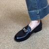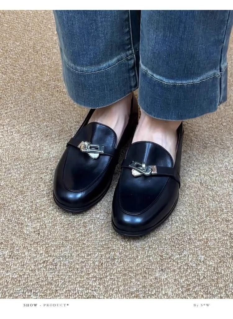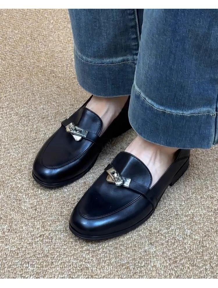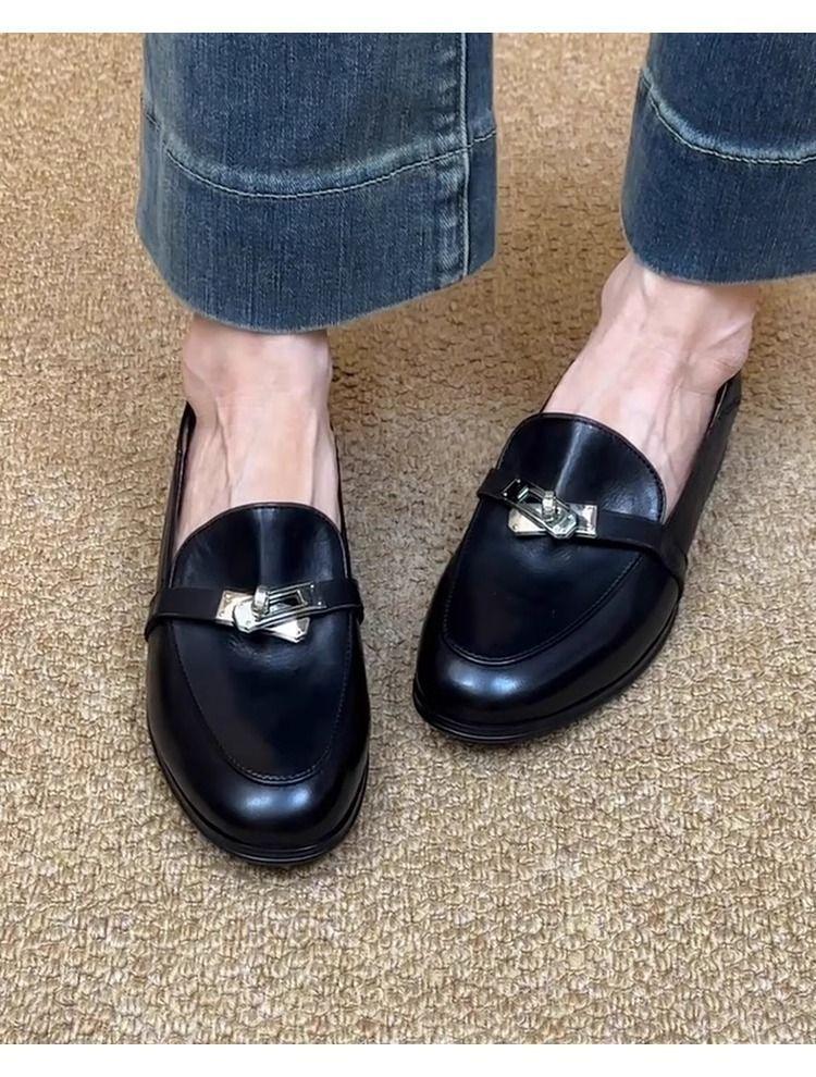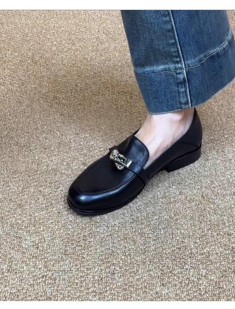 Mocasines Vintage de Metal con Hebilla para Mujer 2025 Otoño e Invierno Nuevos Punta Redonda Color Slip-on Planos Zapatos de Cuero