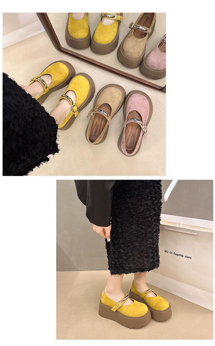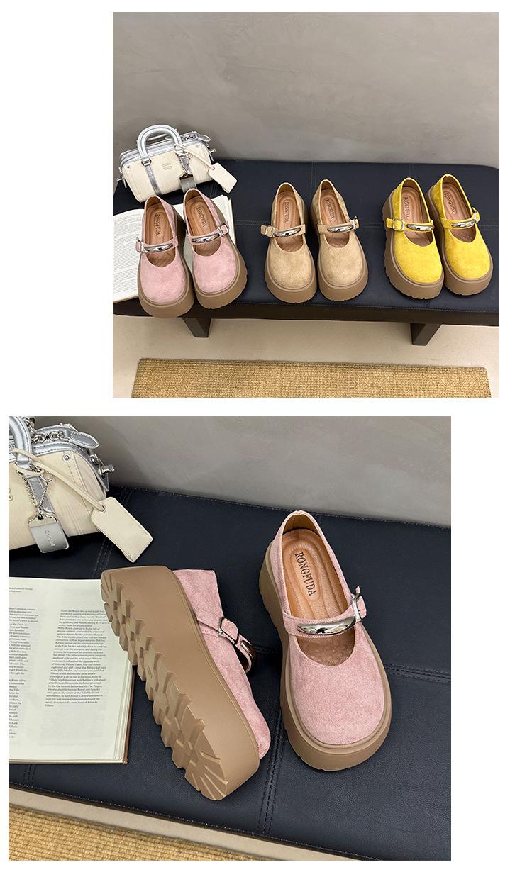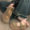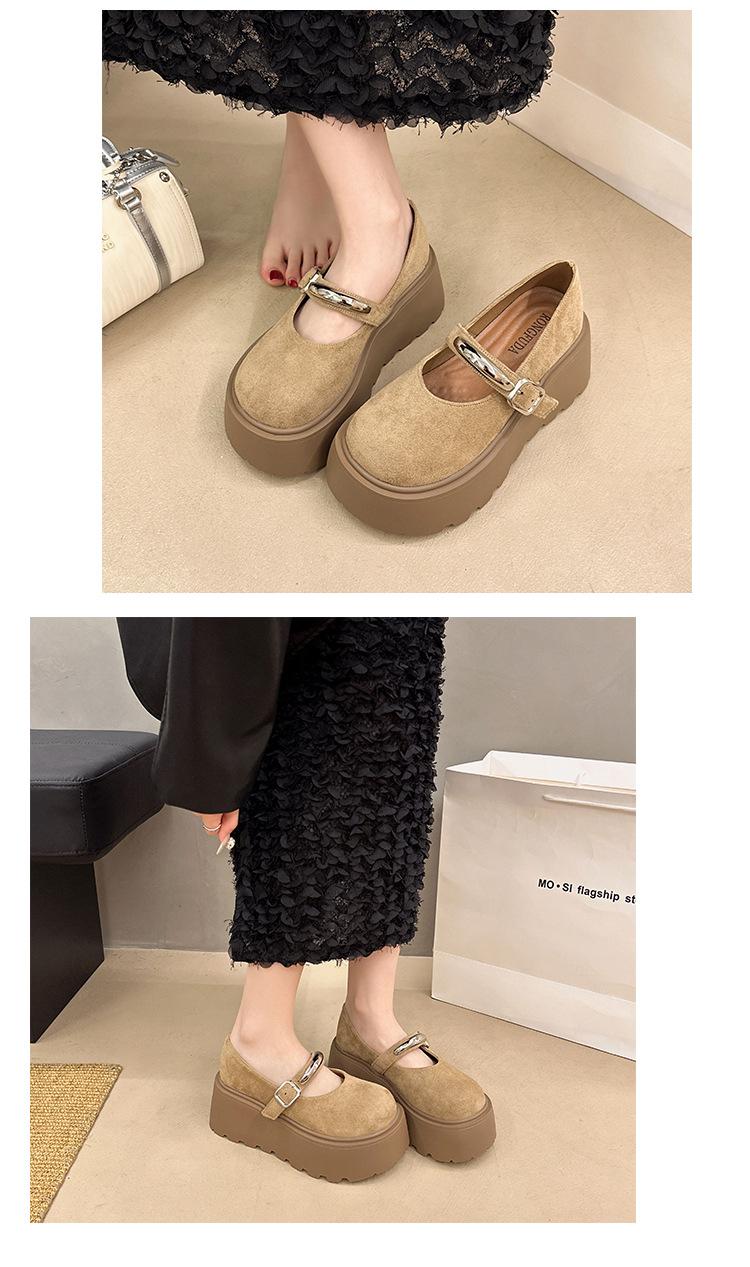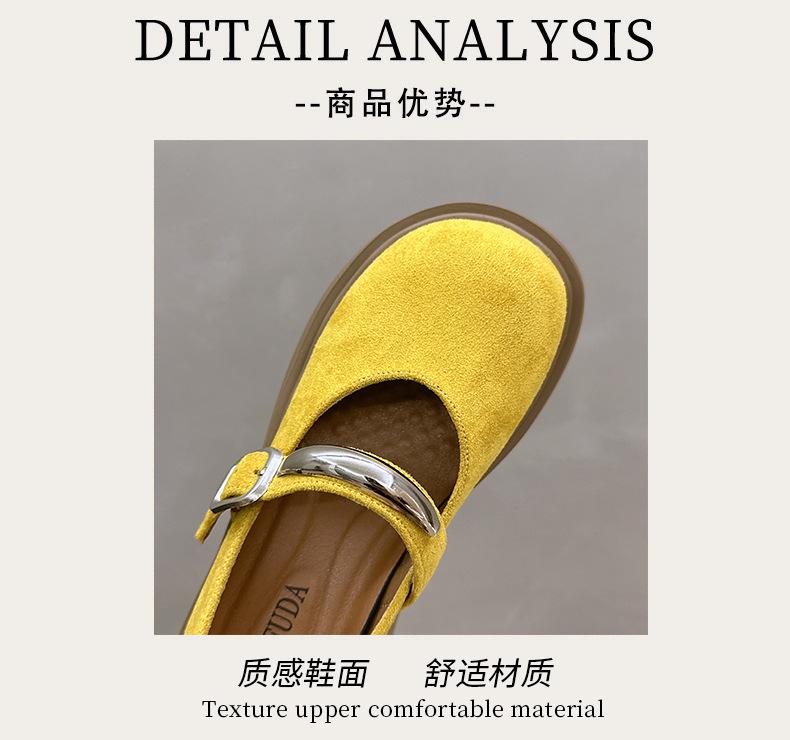 Zapatos Mary Jane Casuales de Primavera Temprana 2025 para Mujer, Cuero Suave, Hebilla de una Línea, Parte Superior Baja, Suela Gruesa con Altura, Zapatos Birkenstock