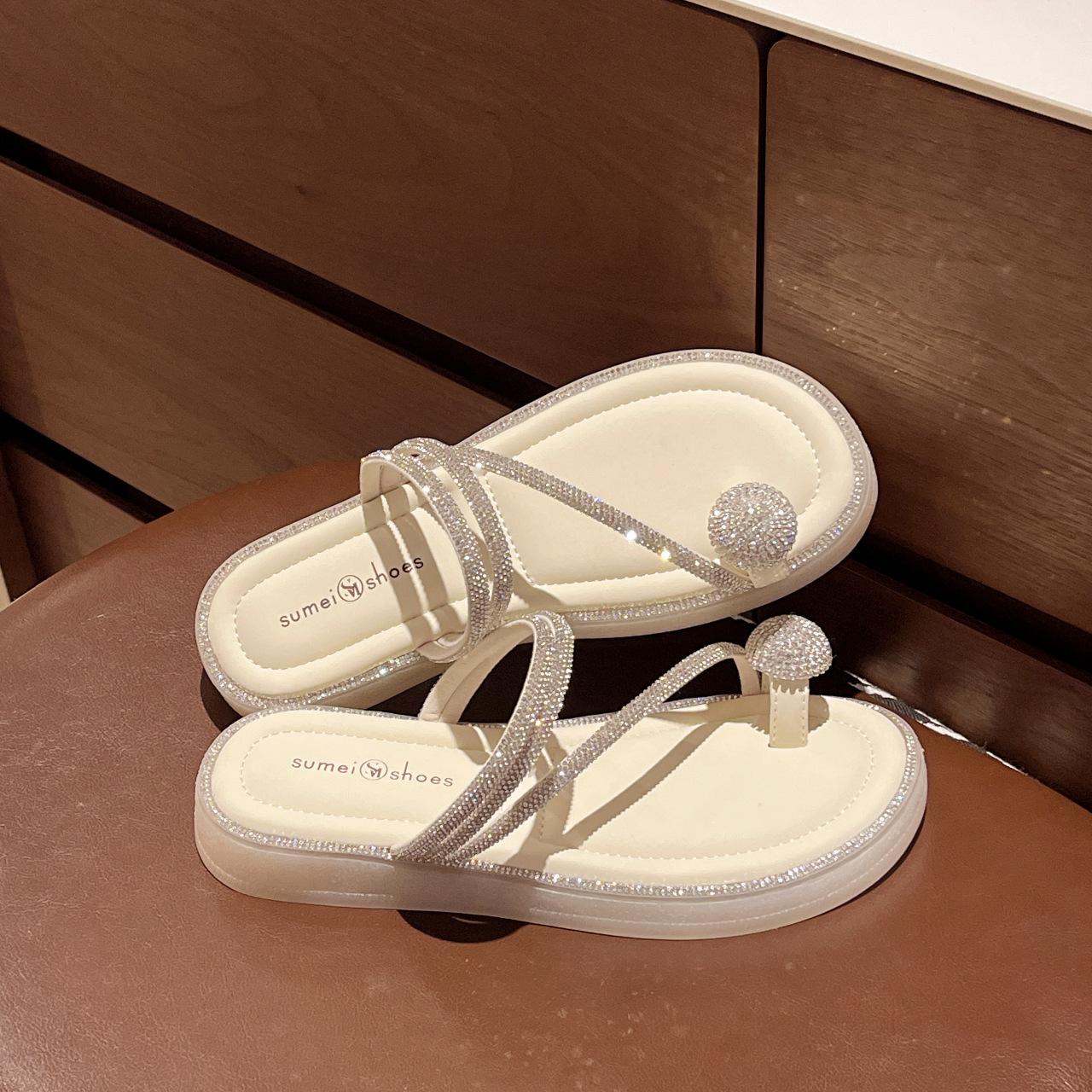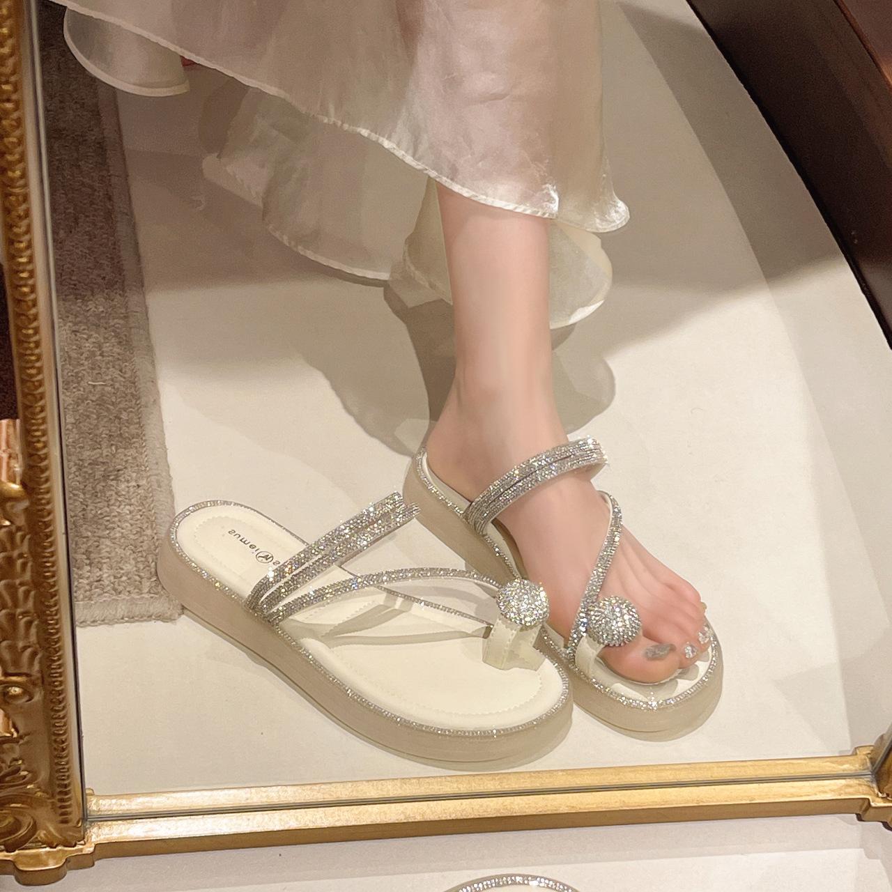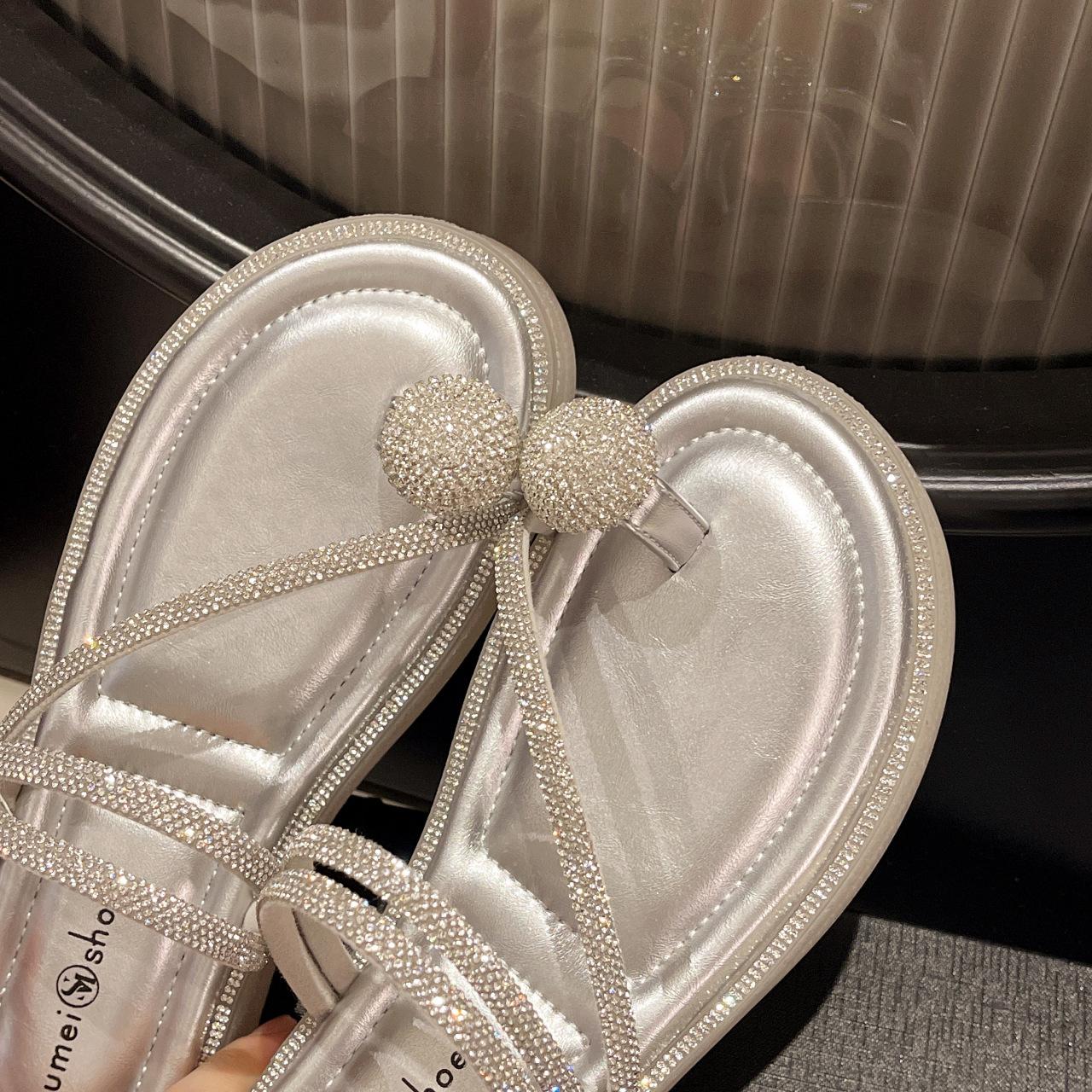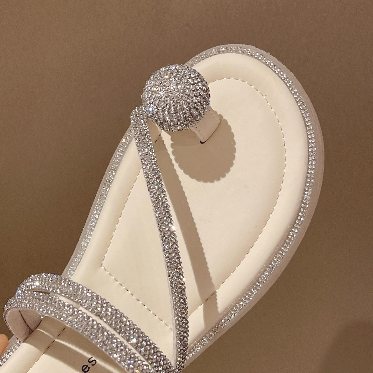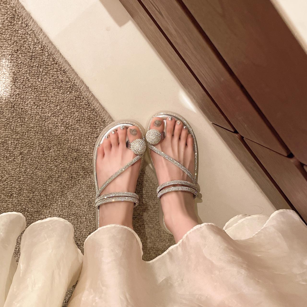 Sandalias Planas de Dedo Chanclas de Perlas para Mujer Verano para Exterior 2025 Nueva Moda Estilo Hada Sandalias de Vacaciones de Playa
