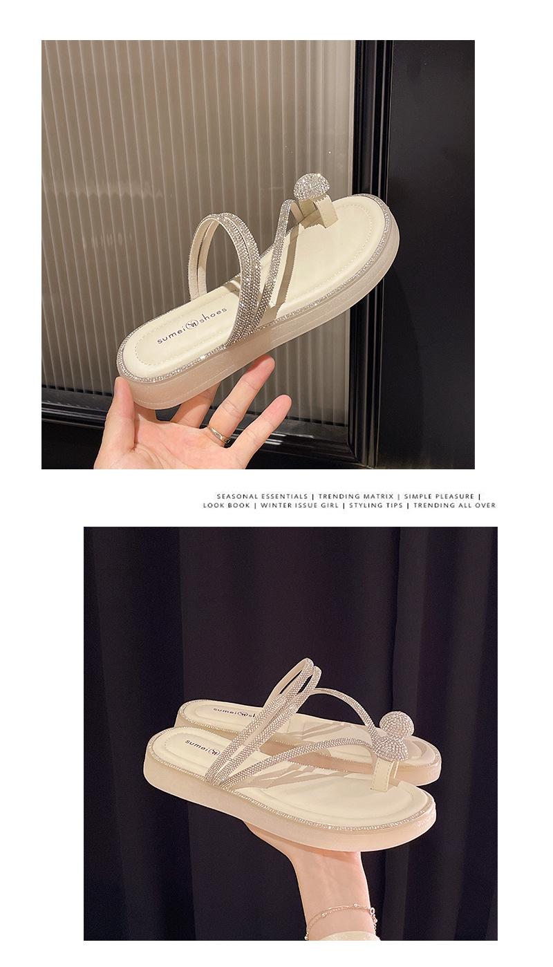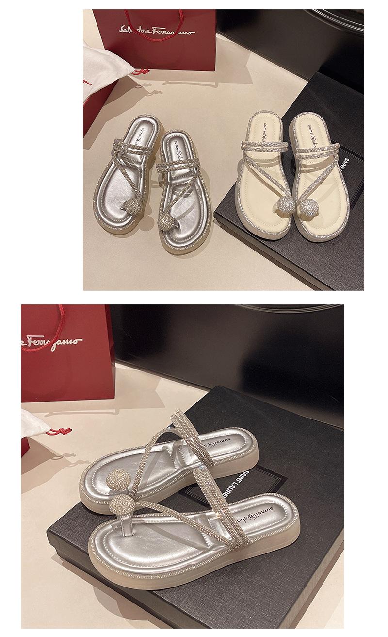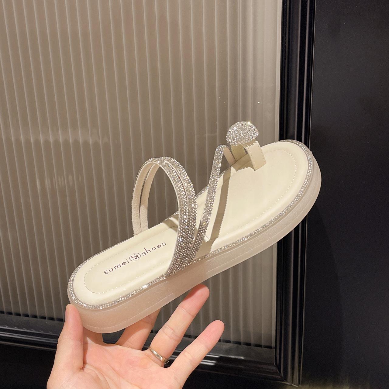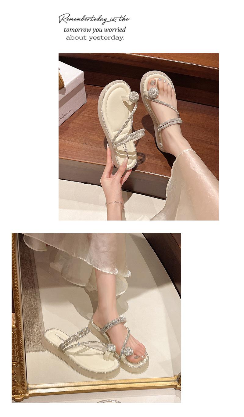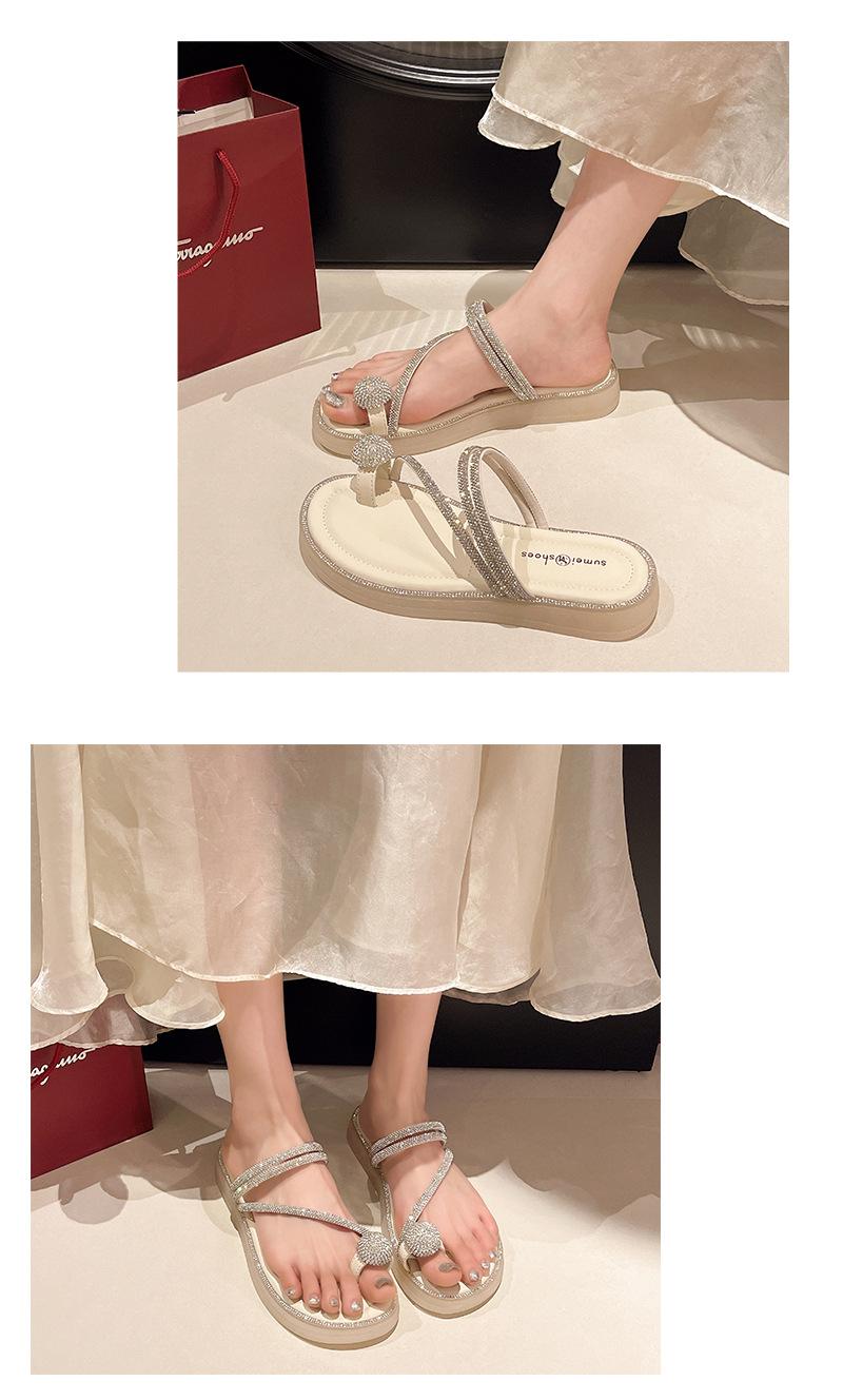 Sandalias Planas de Dedo Chanclas de Perlas para Mujer Verano para Exterior 2025 Nueva Moda Estilo Hada Sandalias de Vacaciones de Playa